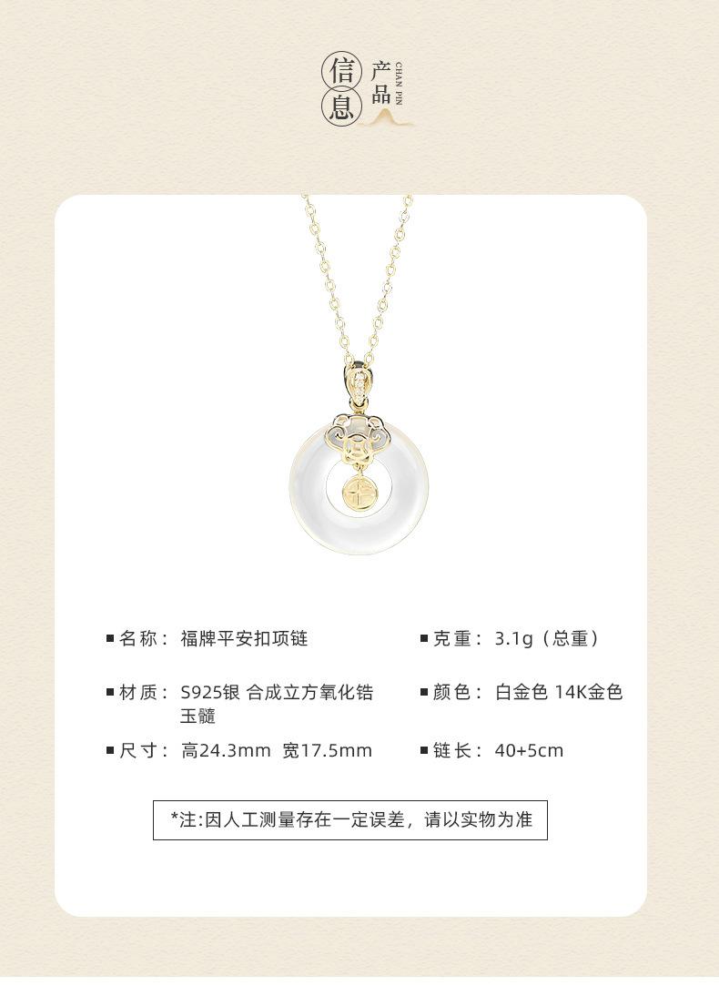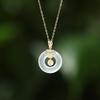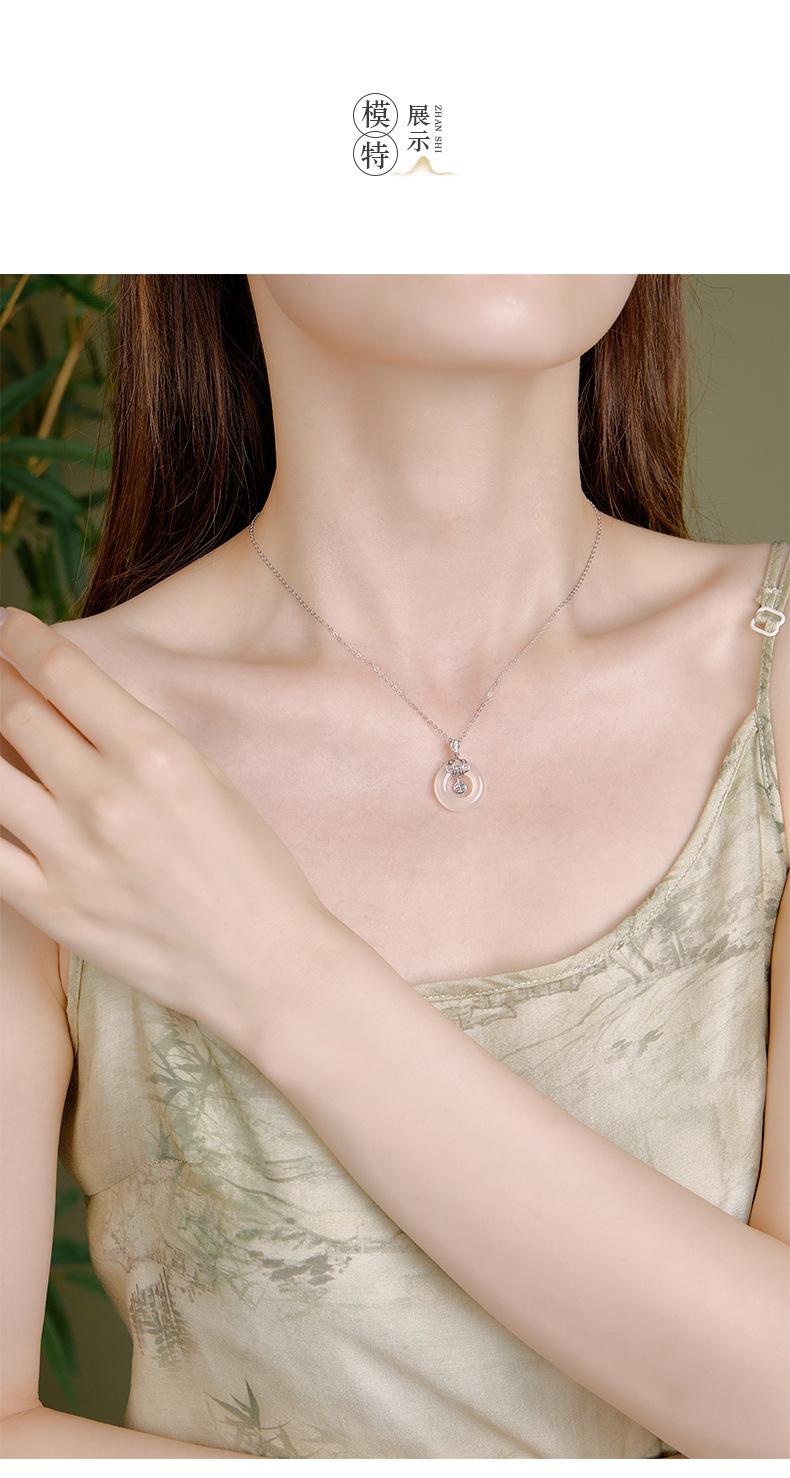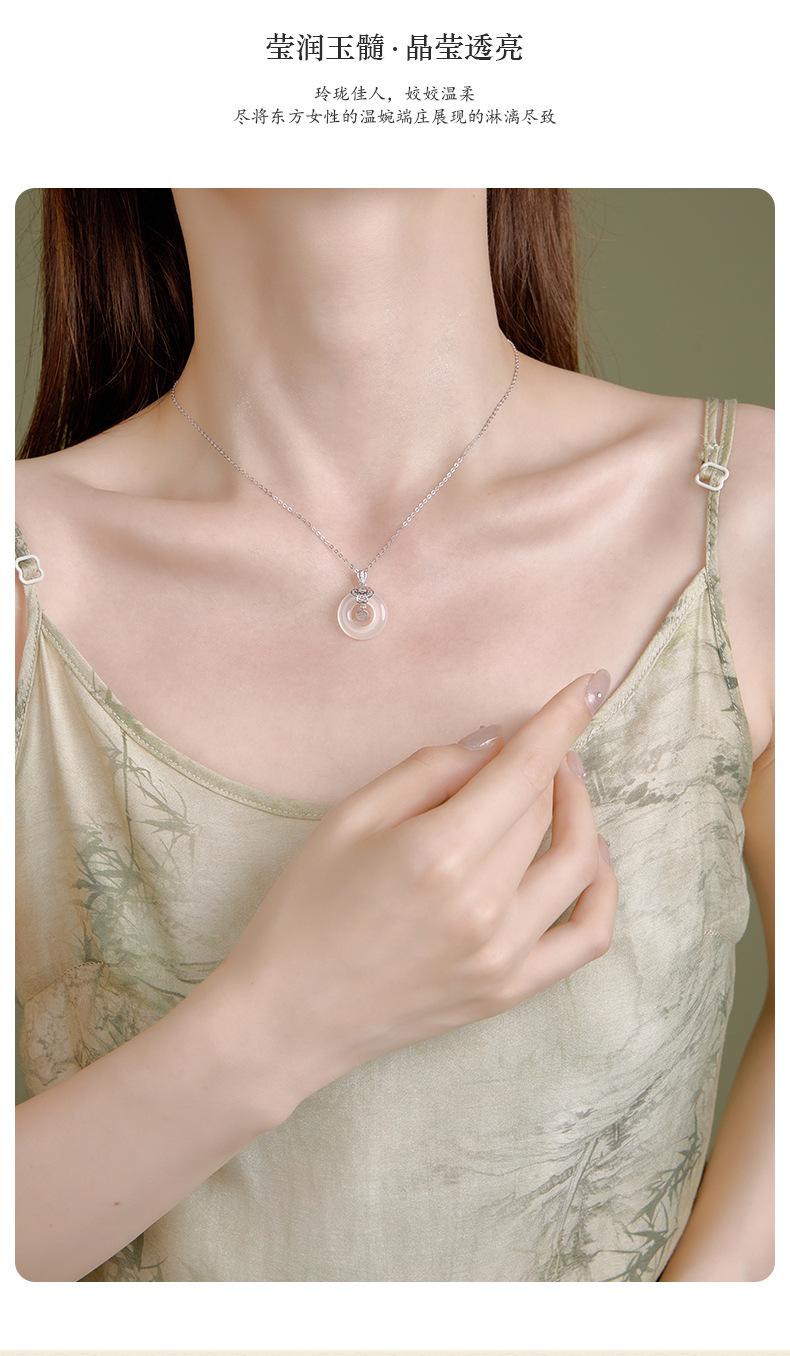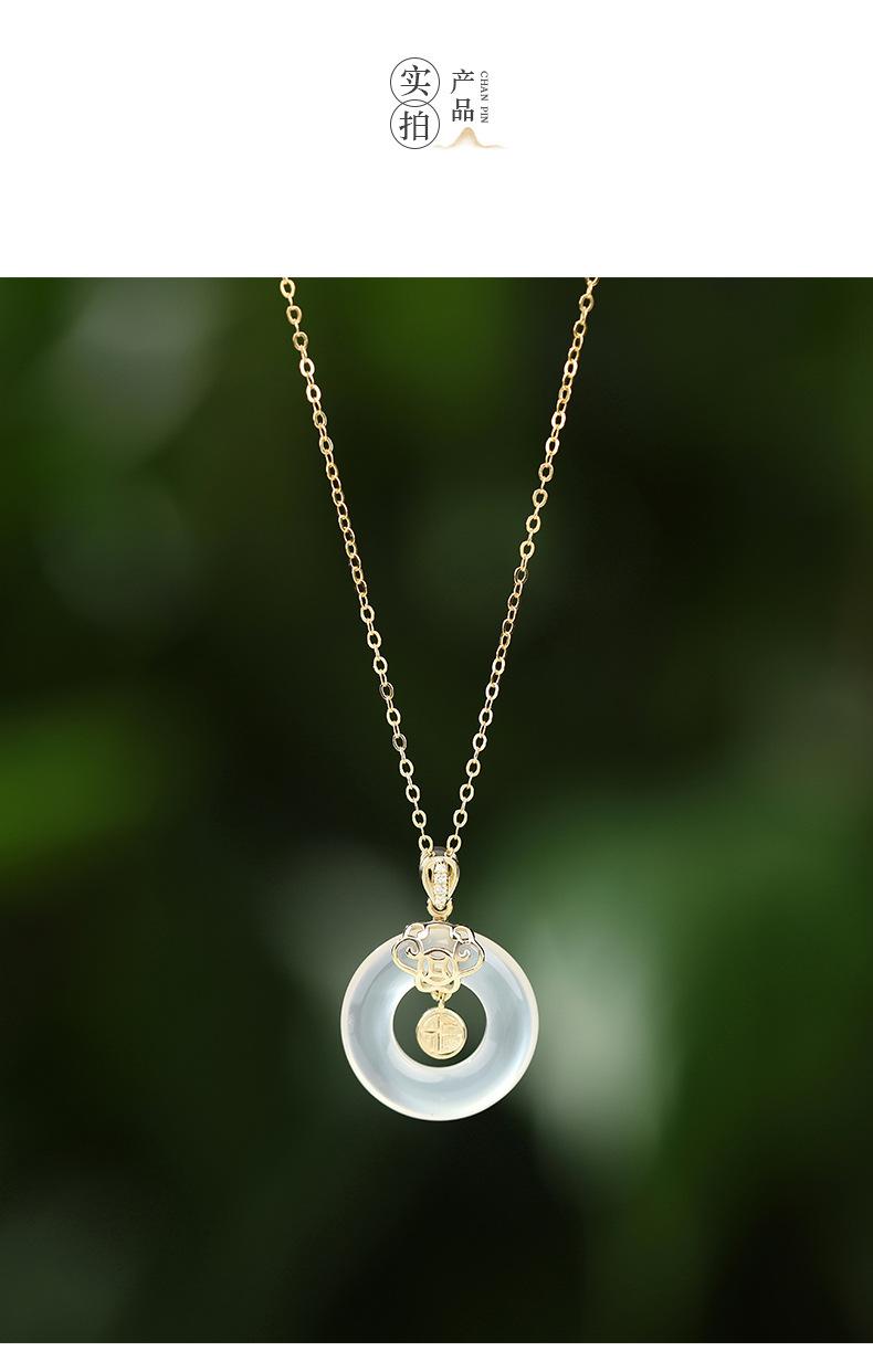 Collar con hebilla Ping An de la marca Jin Hongyu Fu, colgante de candado Ruyi de plata esterlina para mujer, collar de calcedonia blanca china retro de moda nacional