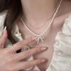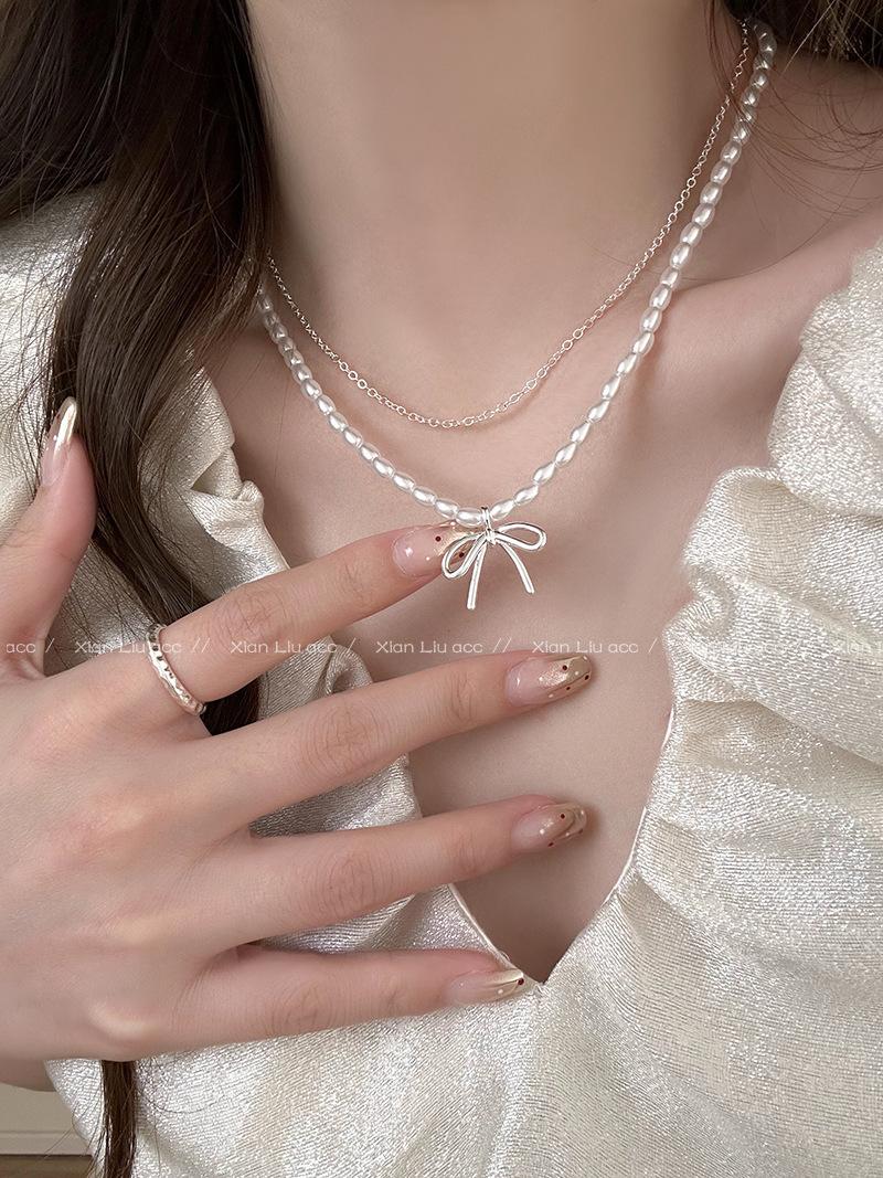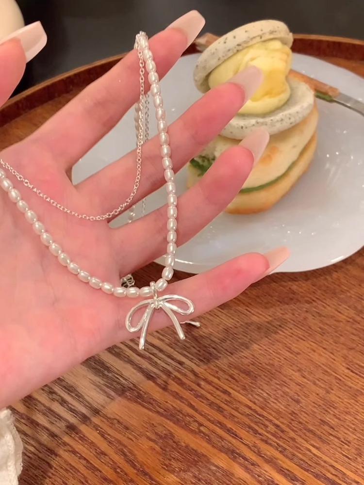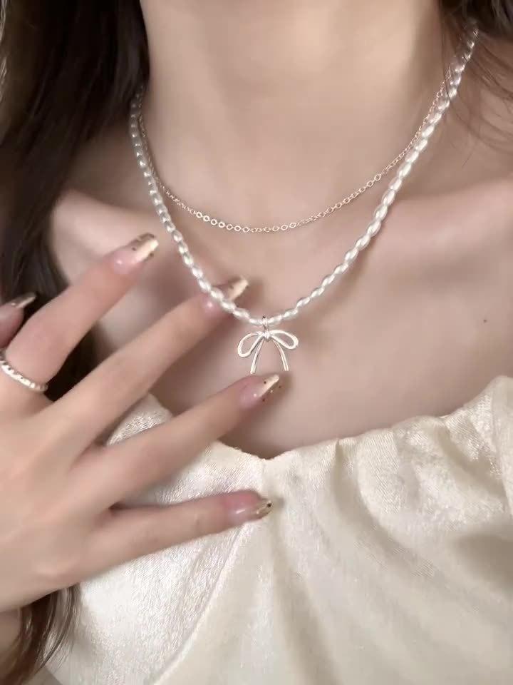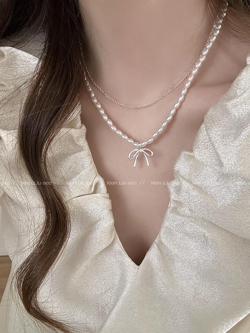 Collar de Perlas de Mijo de Doble Capa con Lazo 2024 Nuevo Estilo Caliente Cadena para Clavícula Collar para Mujer con Alto Sentido del Diseño Accesorios