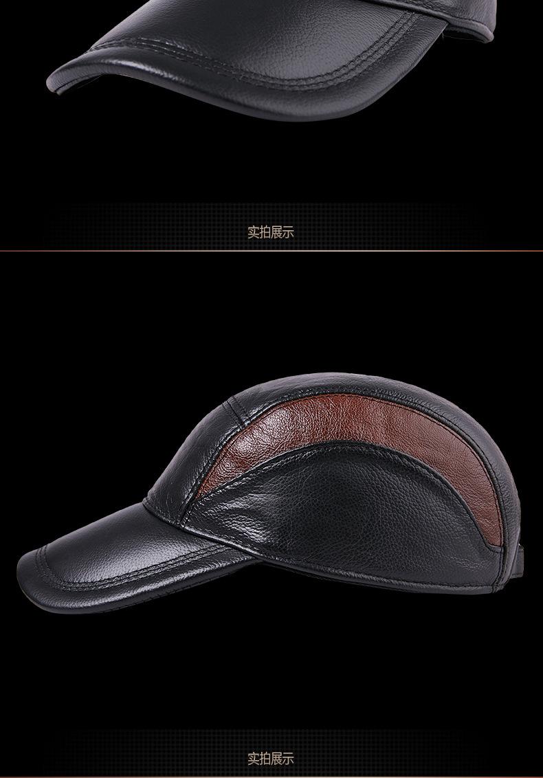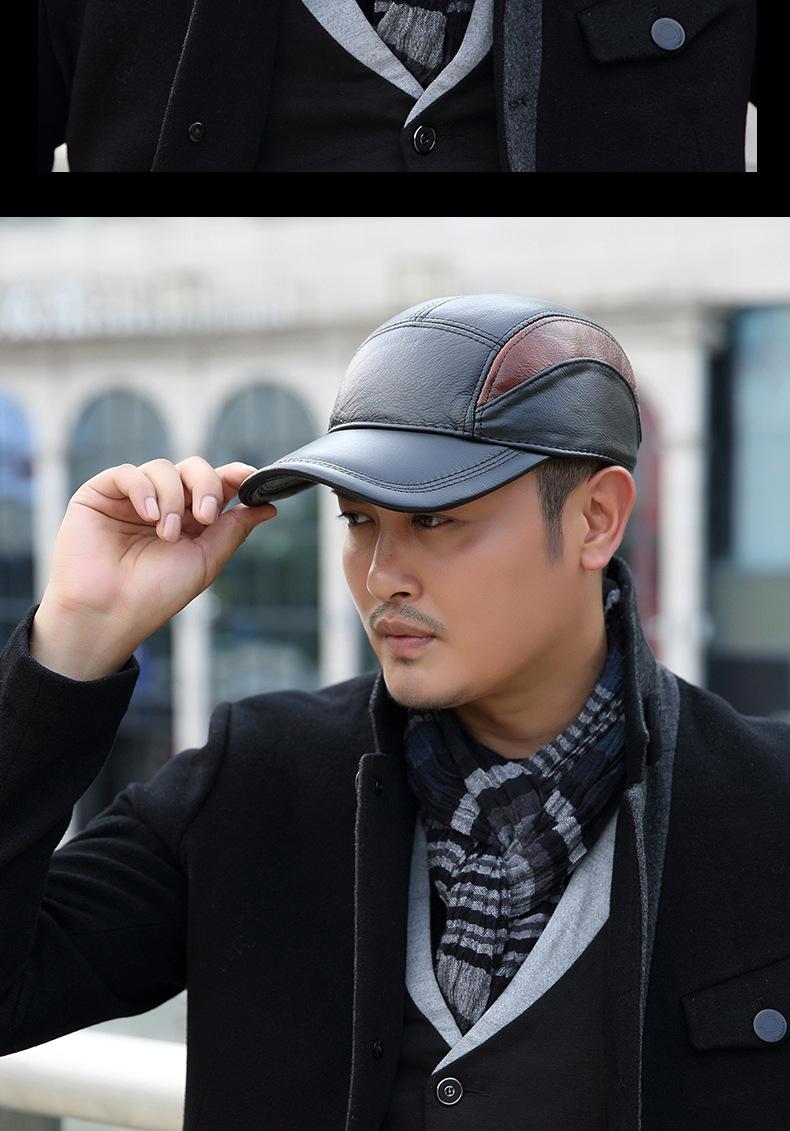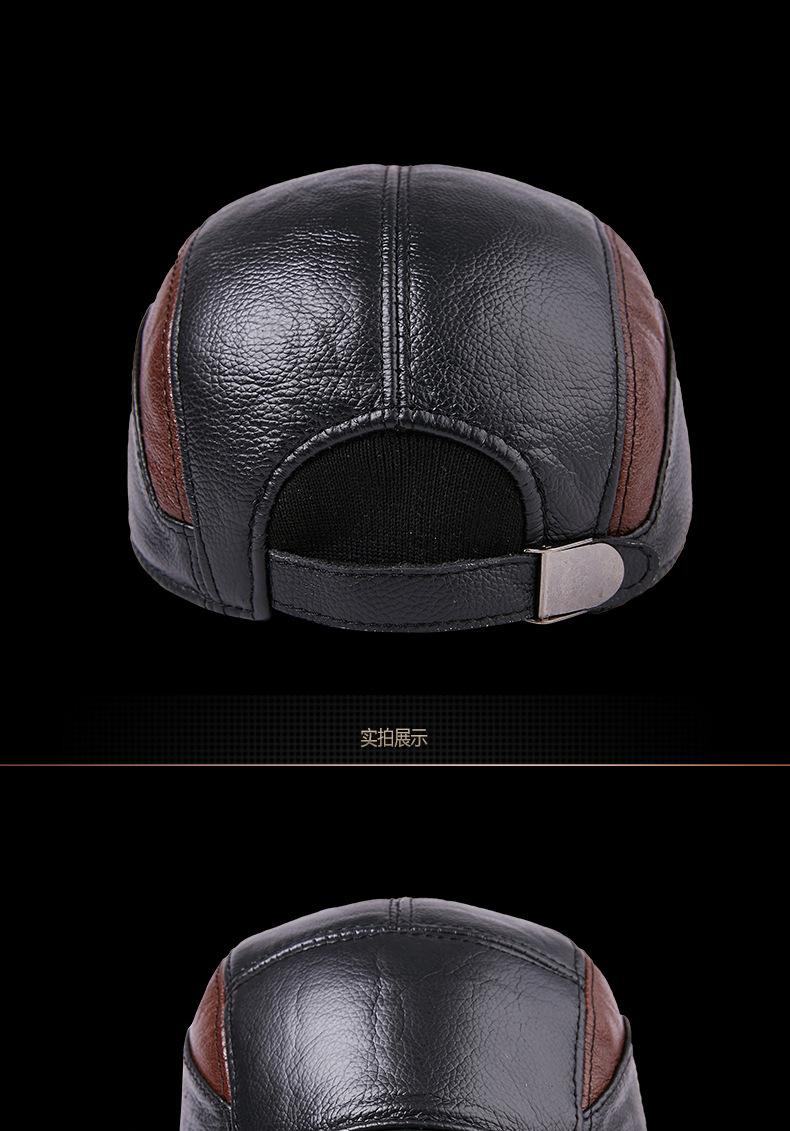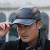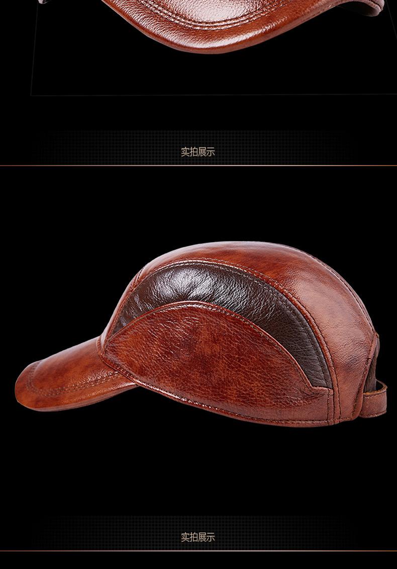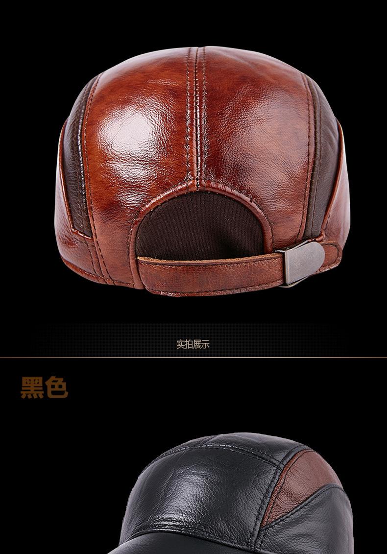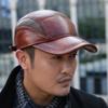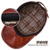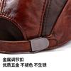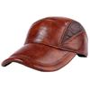 Sombrero de otoño e invierno de cuero genuino para hombre, gorra plana de piel de vaca para personas de mediana edad y mayores, gorra de pico de pato, gorra militar, sombrero cálido para exteriores con protección para las orejas