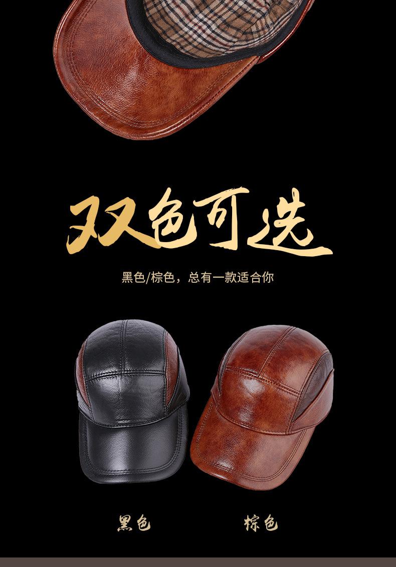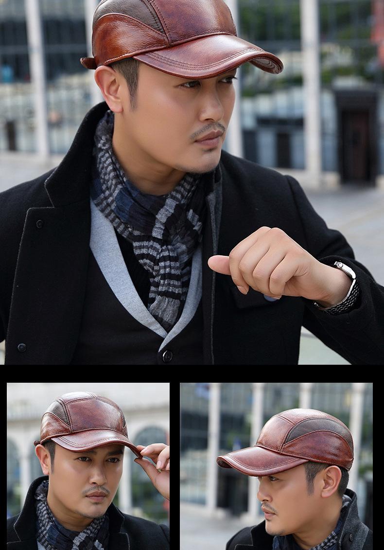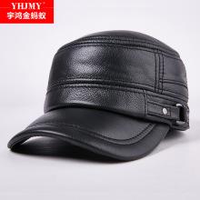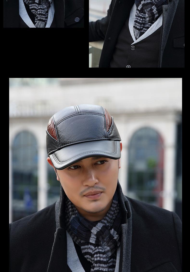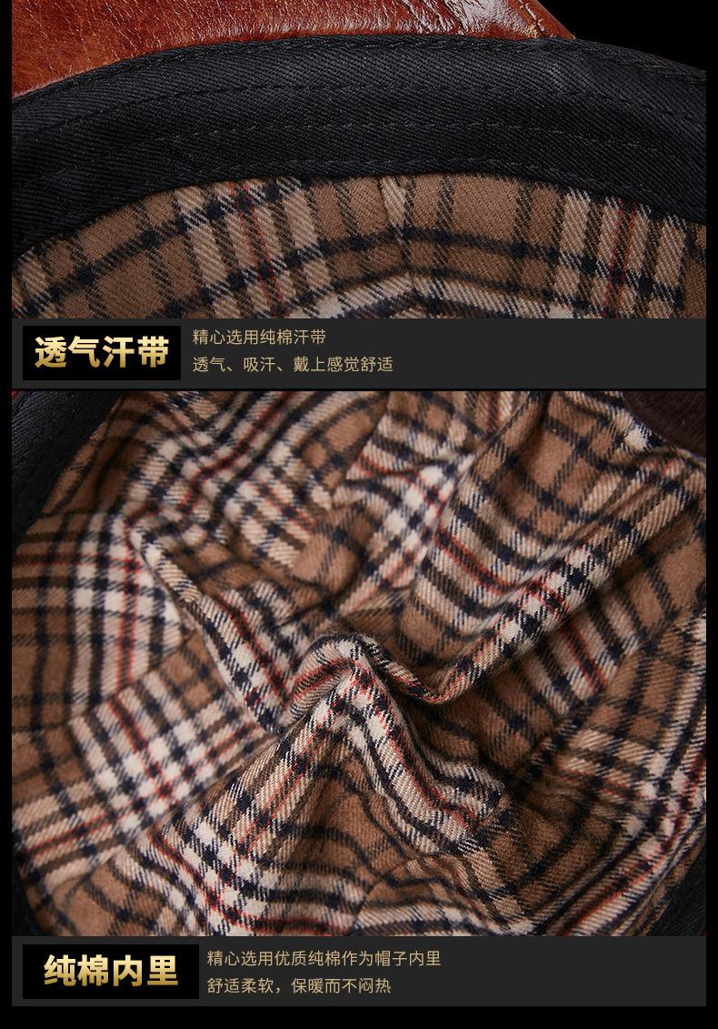 Sombrero de otoño e invierno de cuero genuino para hombre, gorra plana de piel de vaca para personas de mediana edad y mayores, gorra de pico de pato, gorra militar, sombrero cálido para exteriores con protección para las orejas