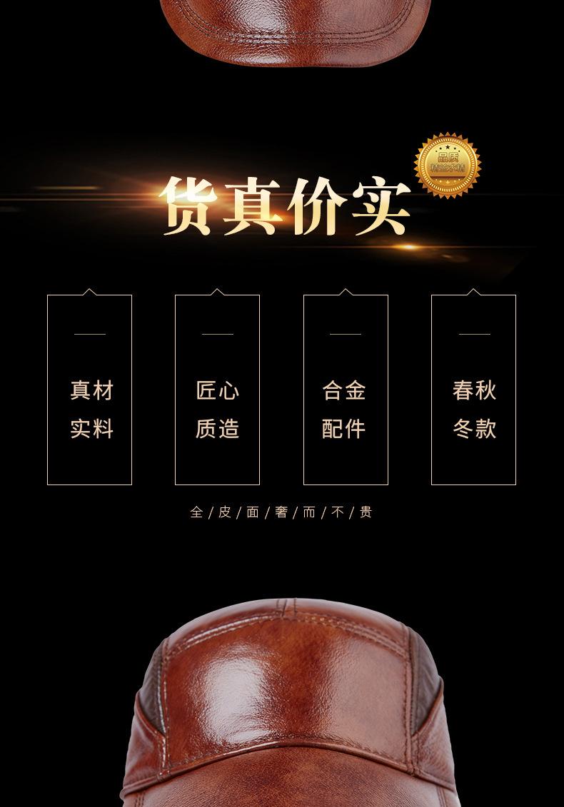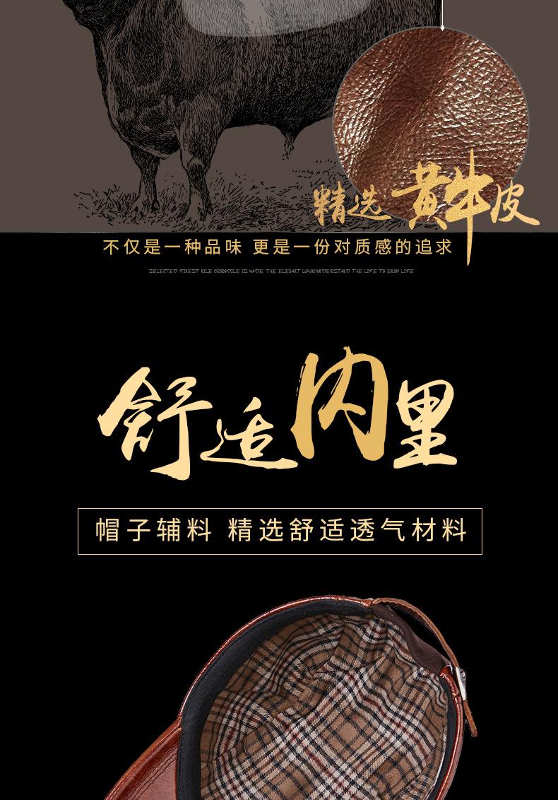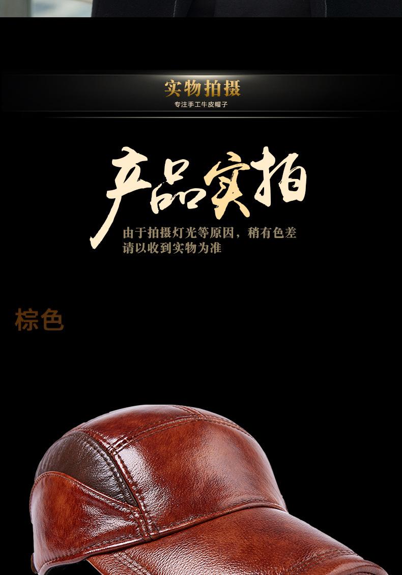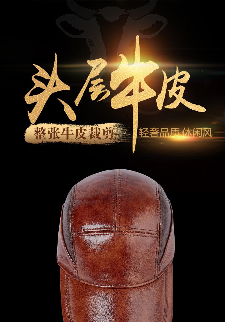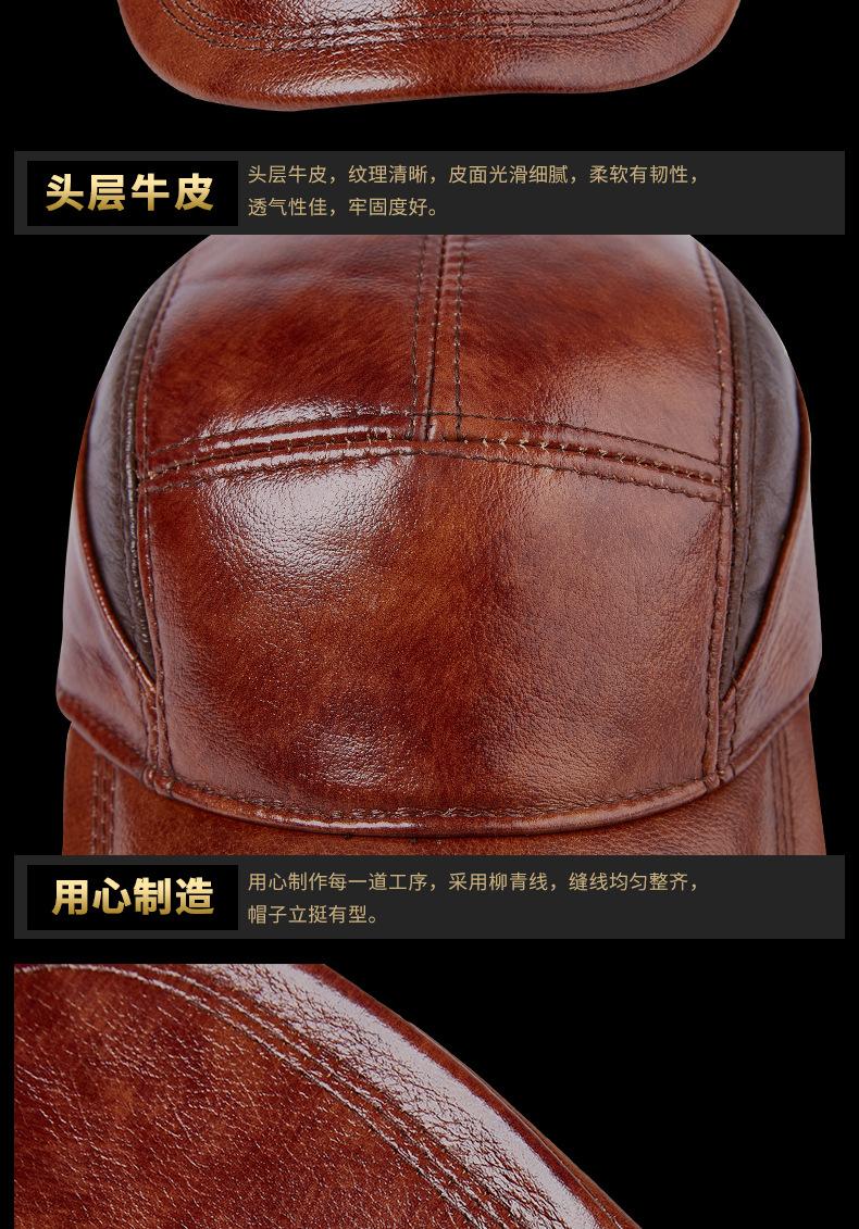 Sombrero de otoño e invierno de cuero genuino para hombre, gorra plana de piel de vaca para personas de mediana edad y mayores, gorra de pico de pato, gorra militar, sombrero cálido para exteriores con protección para las orejas