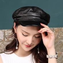 Boina sombrero de cuero genuino mujer primavera otoño invierno moda callejera casual piel de oveja versión coreana sombrero de pintor británico sombrero de jazz