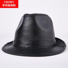 Sombrero Yuhong de piel de vaca genuina para hombre, otoño e invierno, retro, caballero, piel de oveja, sombrero de jazz, primera capa de piel de vaca, sombrero de copa plana