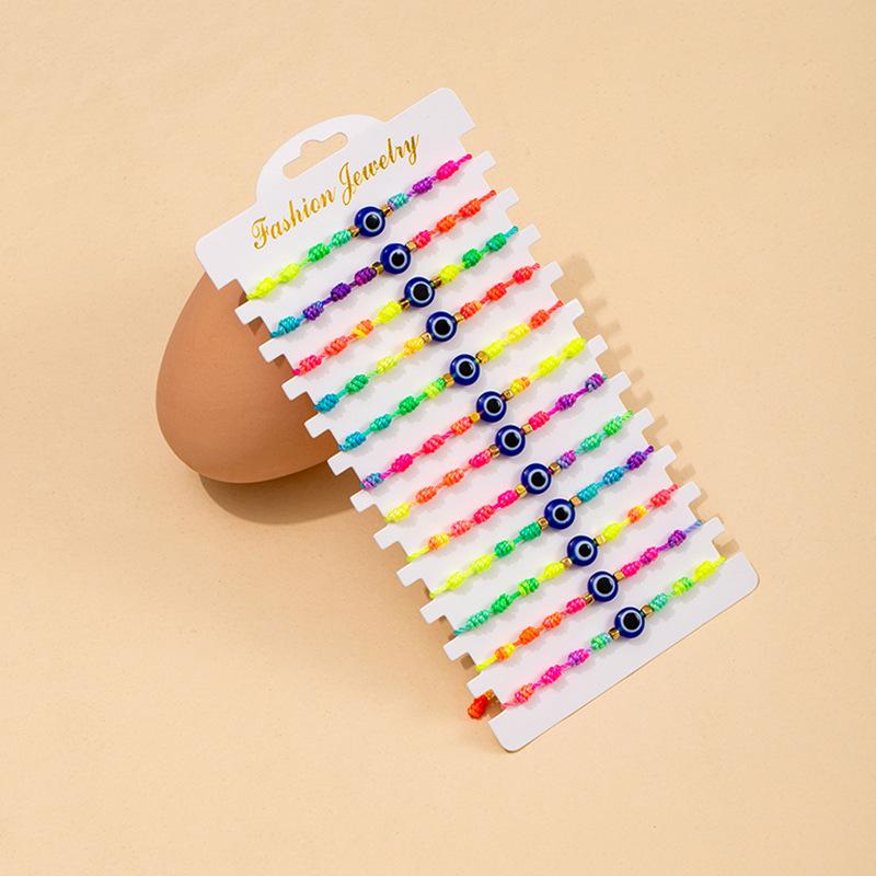 Pulsera tejida ojo del diablo transfronteriza europea y americana nuevo producto ojo azul cuerda de mano de la suerte colorida tejida a mano joyería de mano moderna hip-hop fuente al por mayor