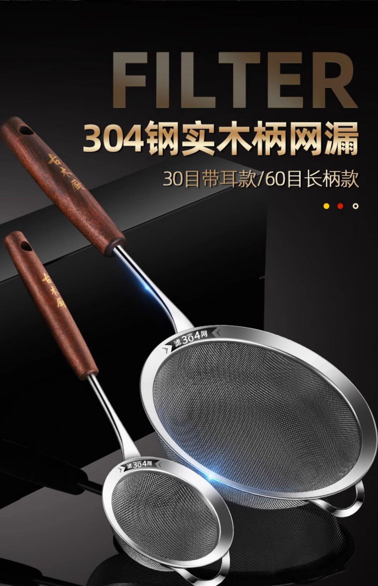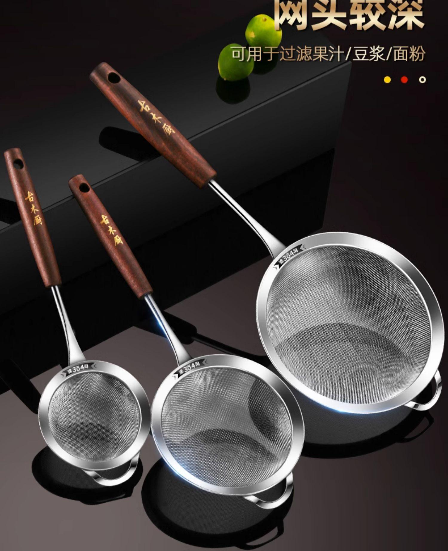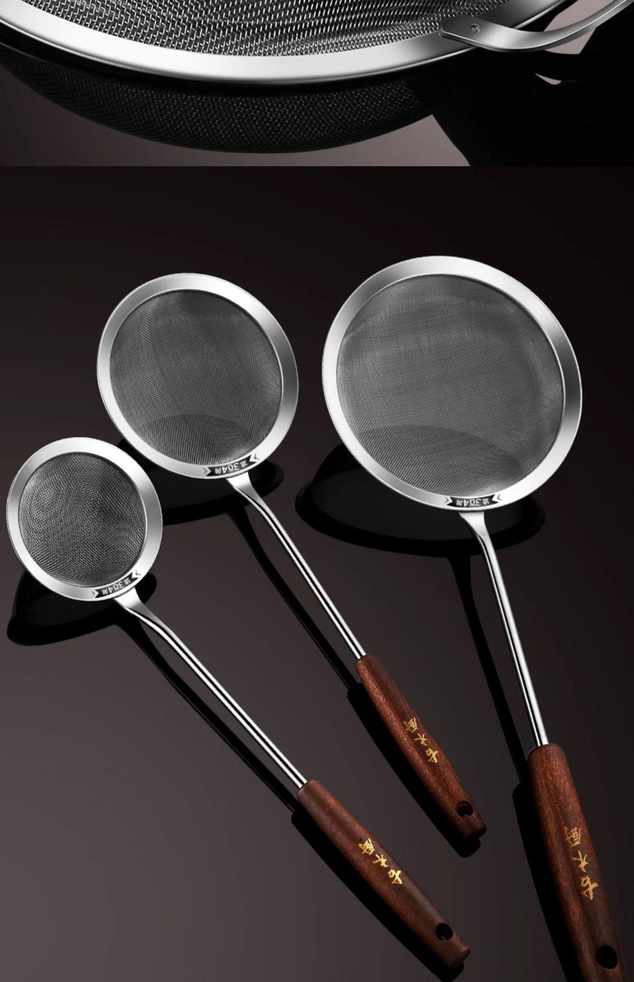 Colador Doméstico de Acero Inoxidable 304, Cuchara para Fideos, Mango de Madera para Cocina, Valla, Cuchara para Freír, Cuchara Coladora para Olla Caliente, Producto Nuevo