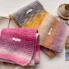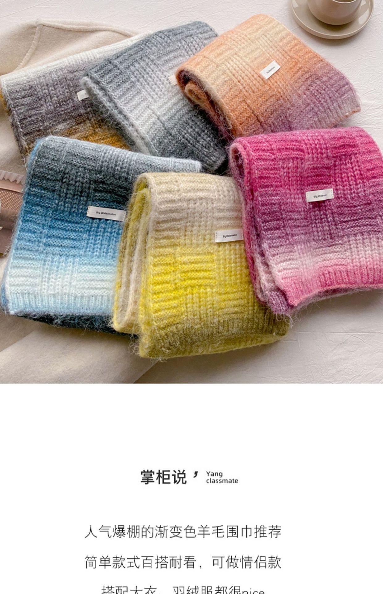 Bufanda de lana tejida para mujer, color blanco, de alta gama, estilo coreano, con degradado, cálida, resistente al frío, elegante, para invierno.