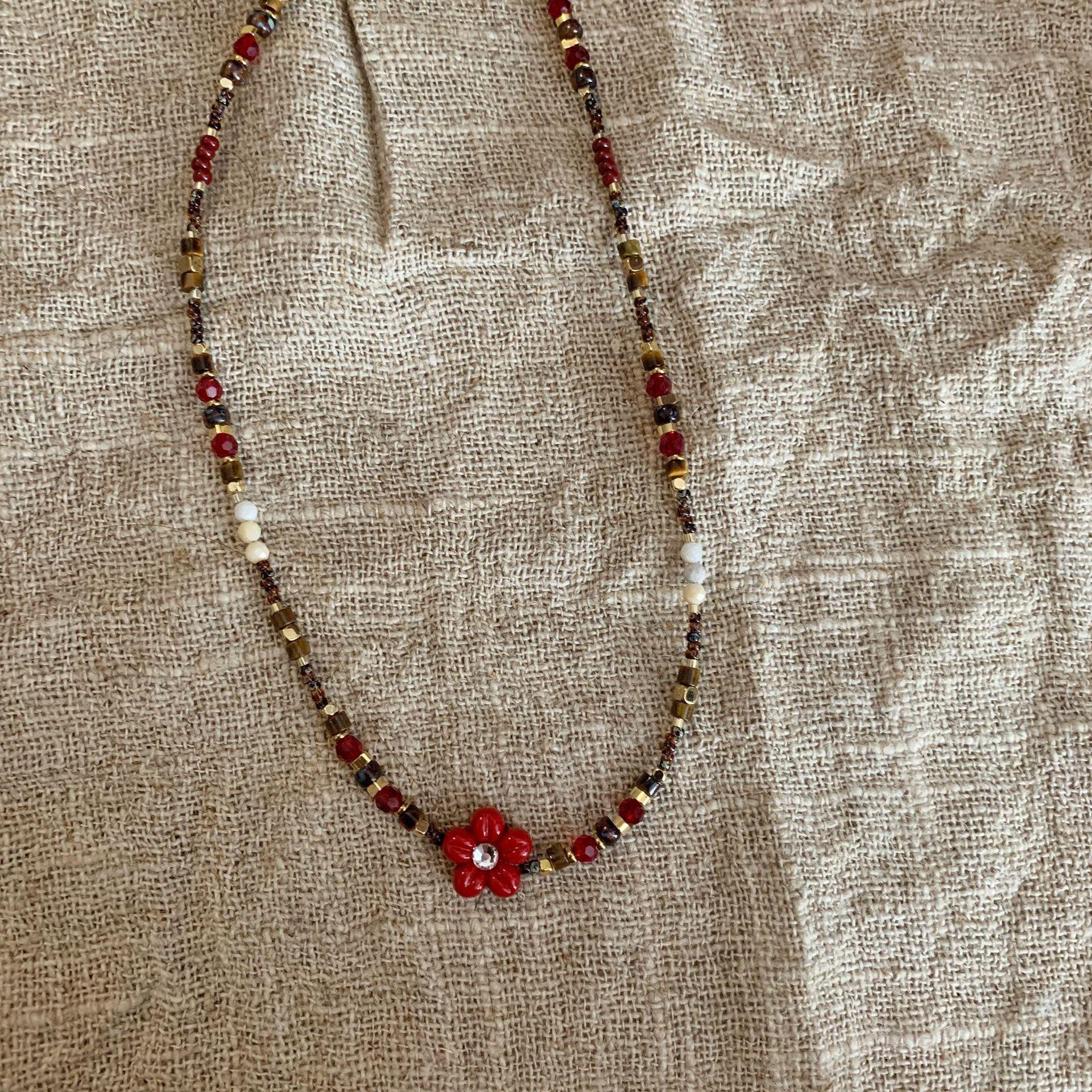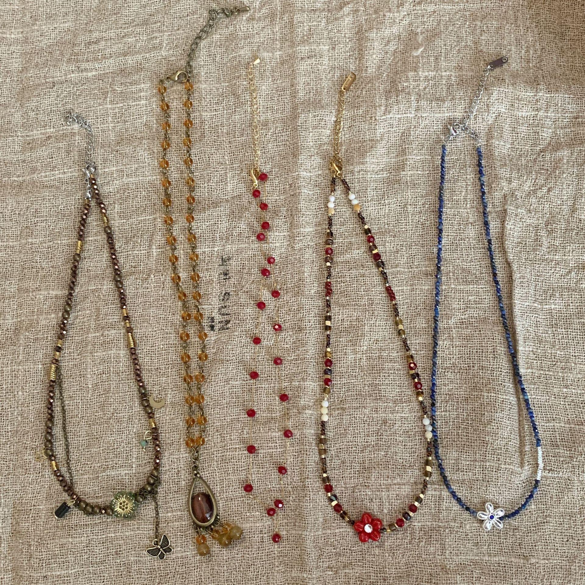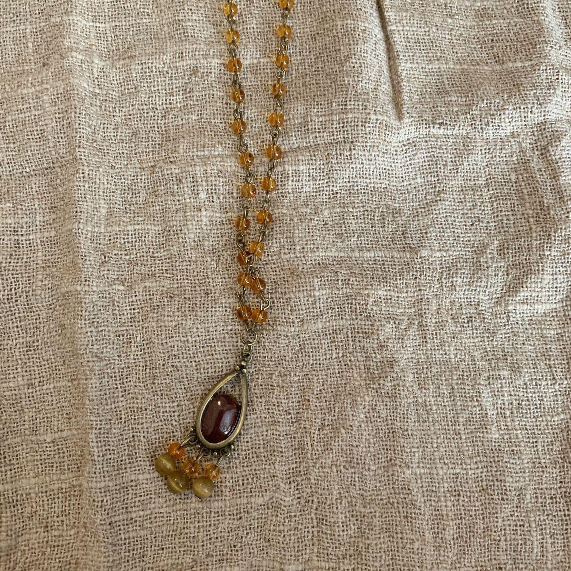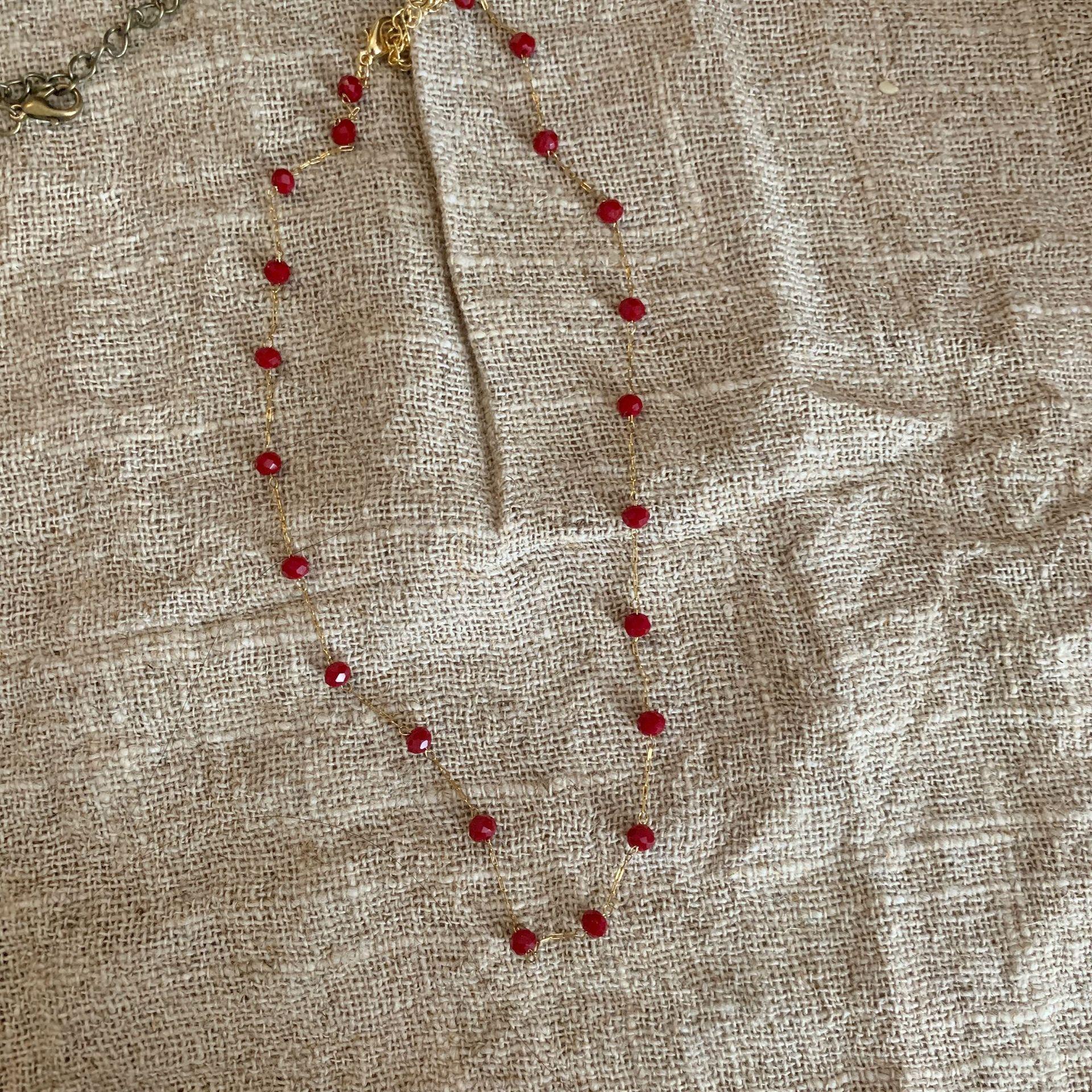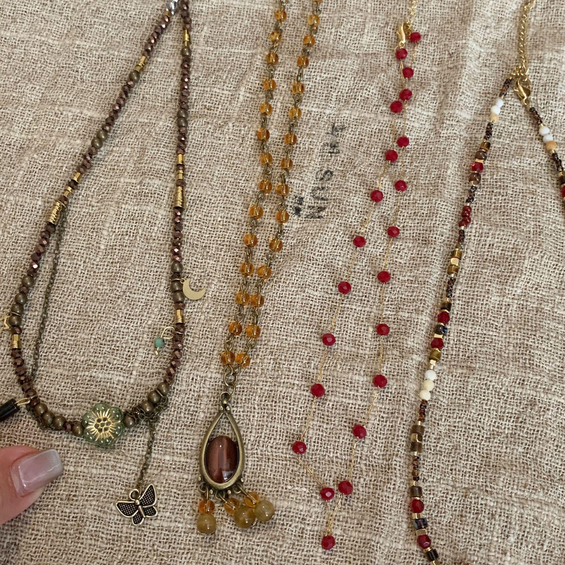 Multi-element butterfly pendant ry, Red bead thin chain yx