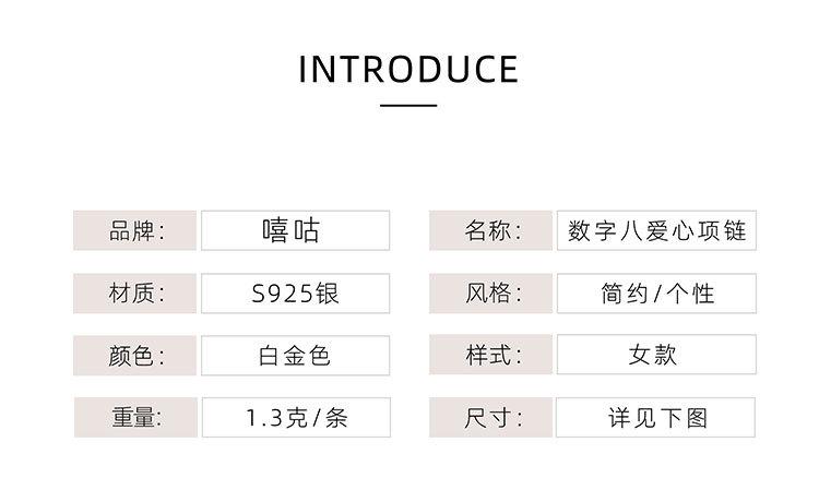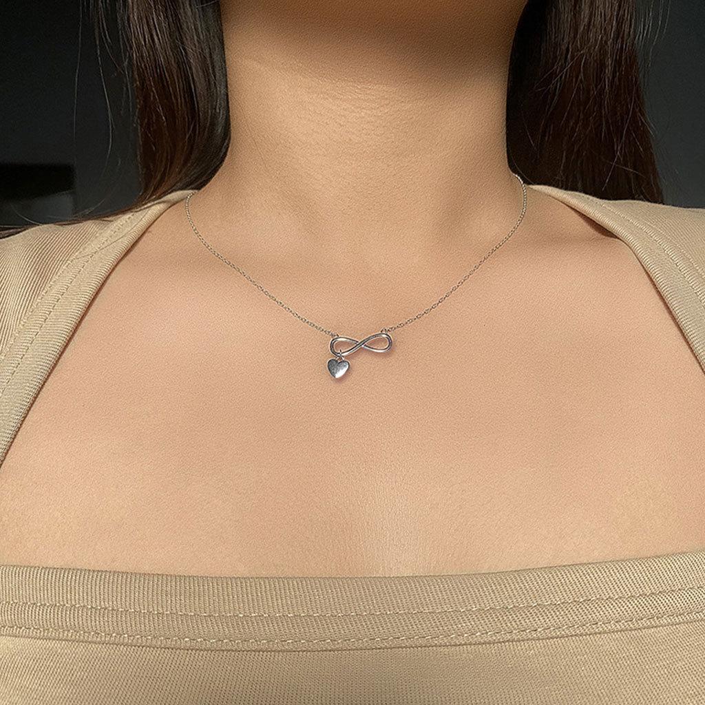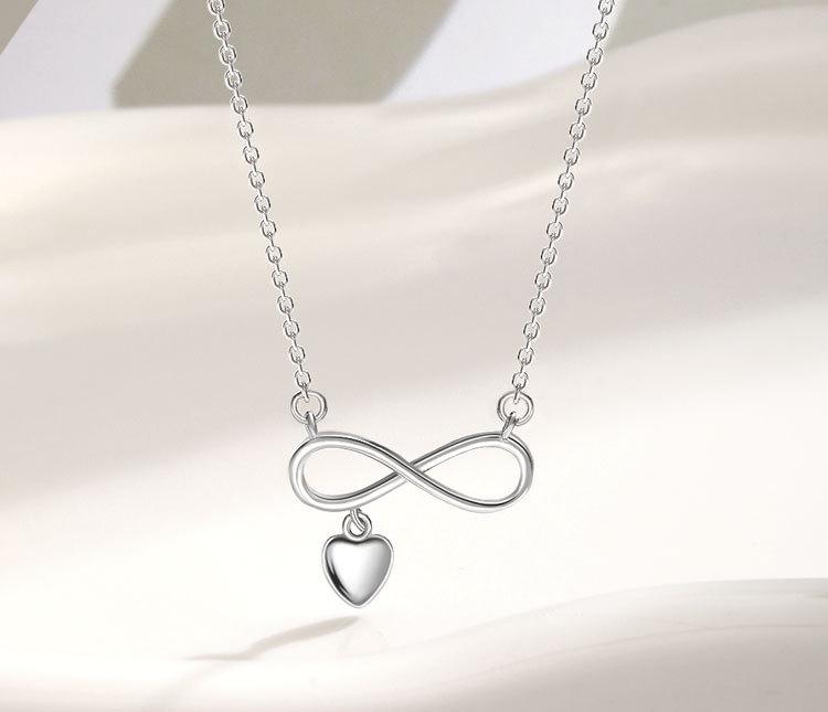 Xi Gu D608 S925 Collar de plata con personalidad simple Mobius Digital Eight Love, cadena de clavícula elegante y ligera de lujo