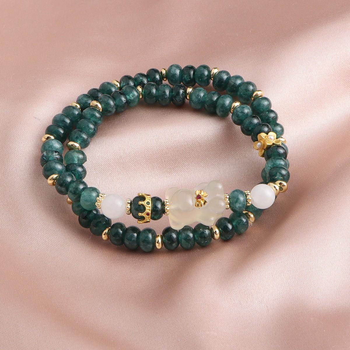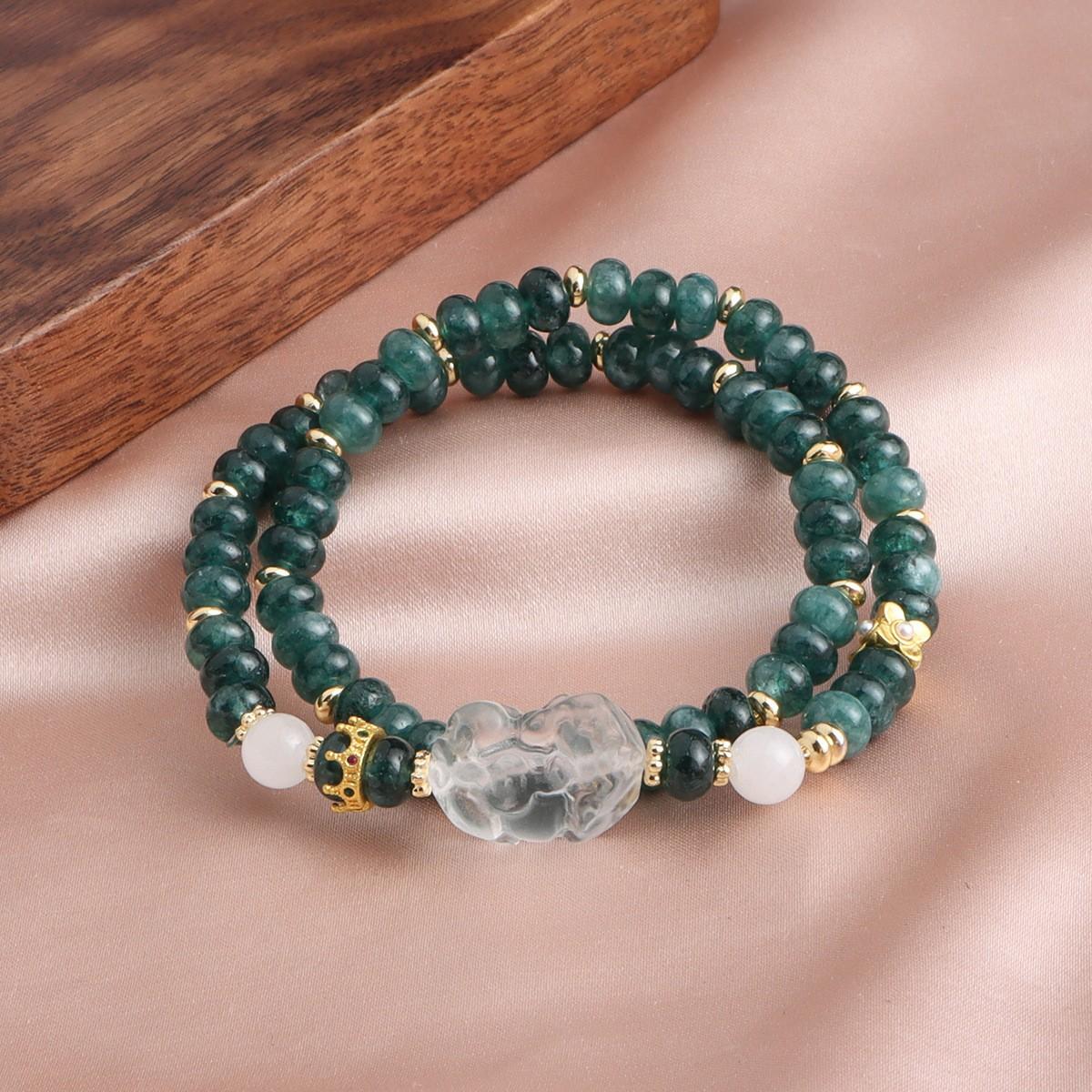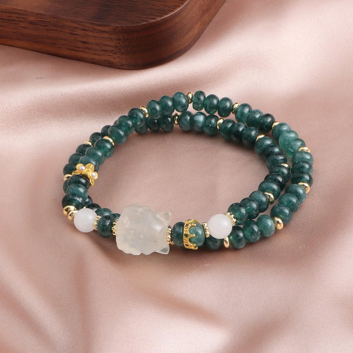 Pulsera de cristal de doble círculo con cuentas de ábaco de piedra natural para mujer, lujosa y ligera, exquisita pulsera de calcedonia Phoenix Nine, nueva pulsera de estilo chino.