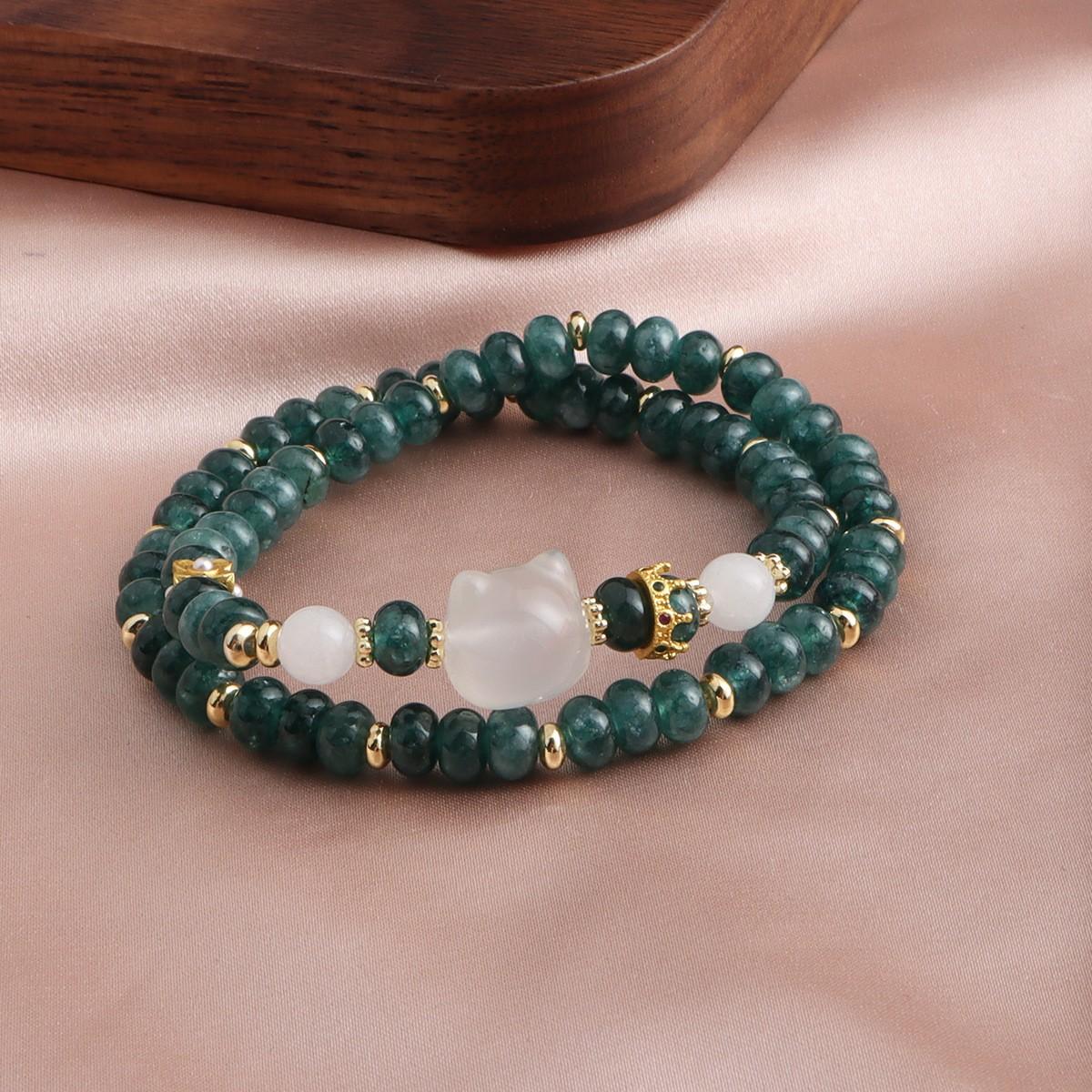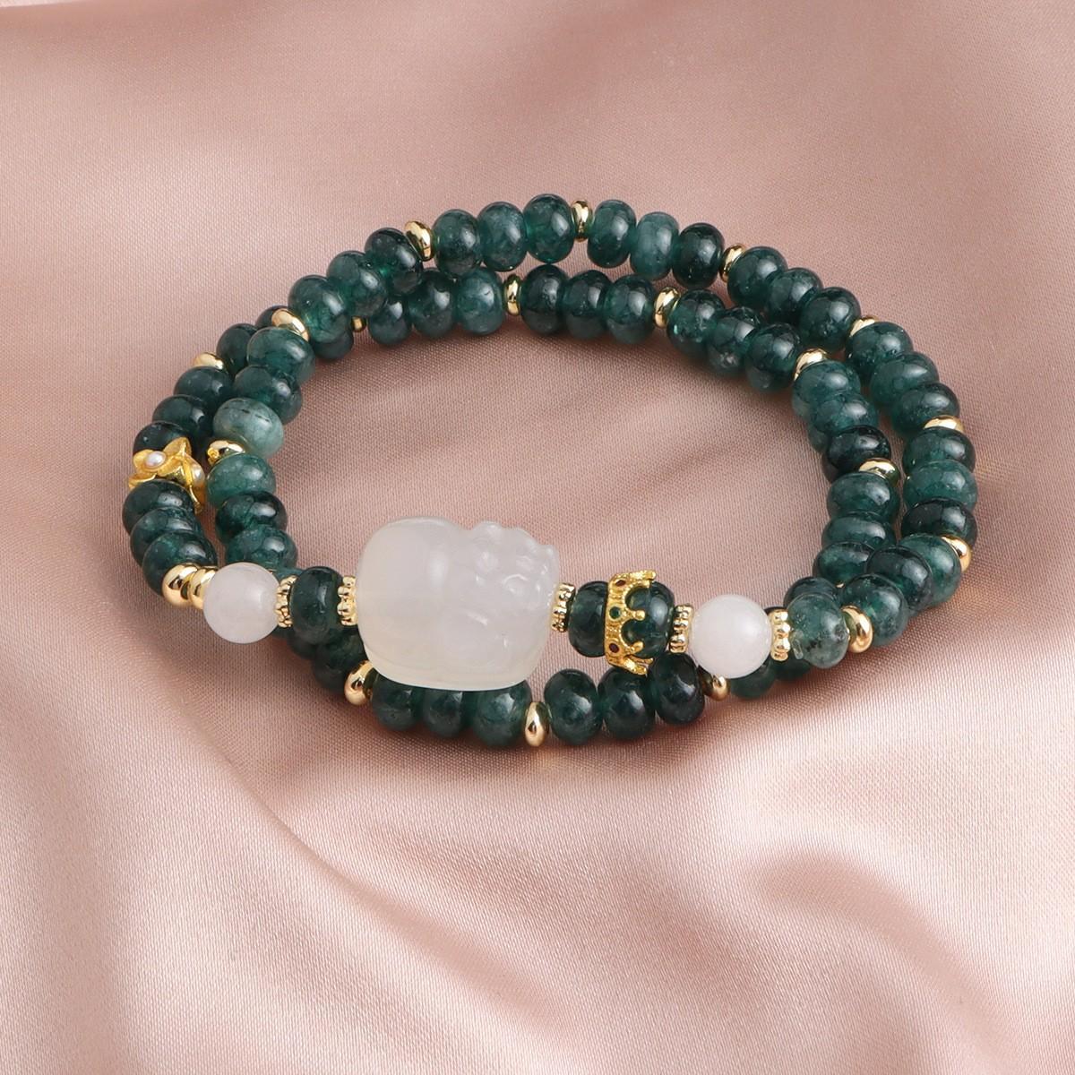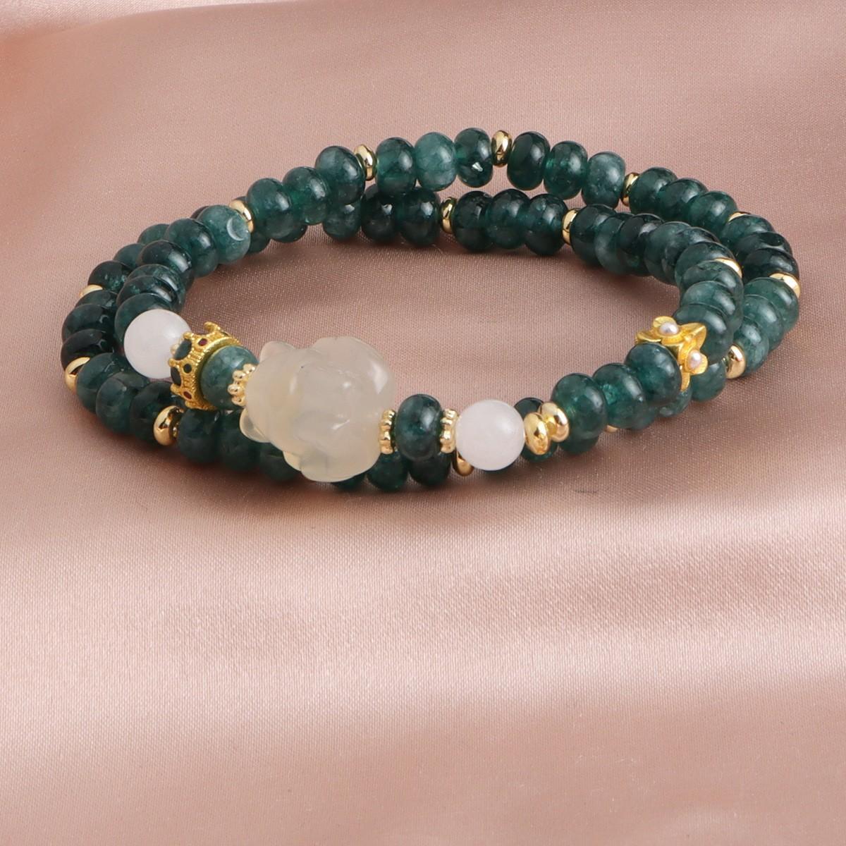 Pulsera de cristal de doble círculo con cuentas de ábaco de piedra natural para mujer, lujosa y ligera, exquisita pulsera de calcedonia Phoenix Nine, nueva pulsera de estilo chino.