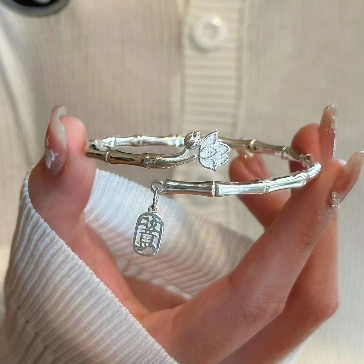 Pulsera Ping An bambú Loto femenina lujo ligero alta gama ajustable regalo para novia regalo de cumpleaños diseño nicho