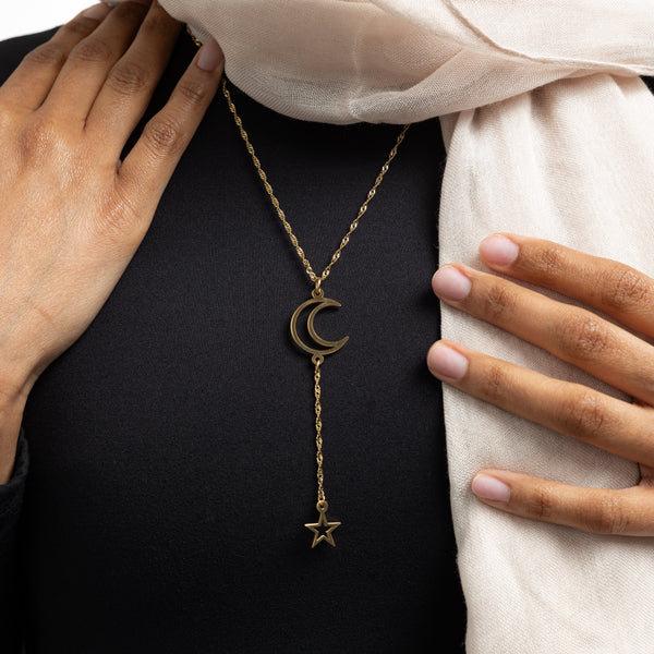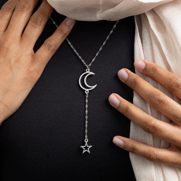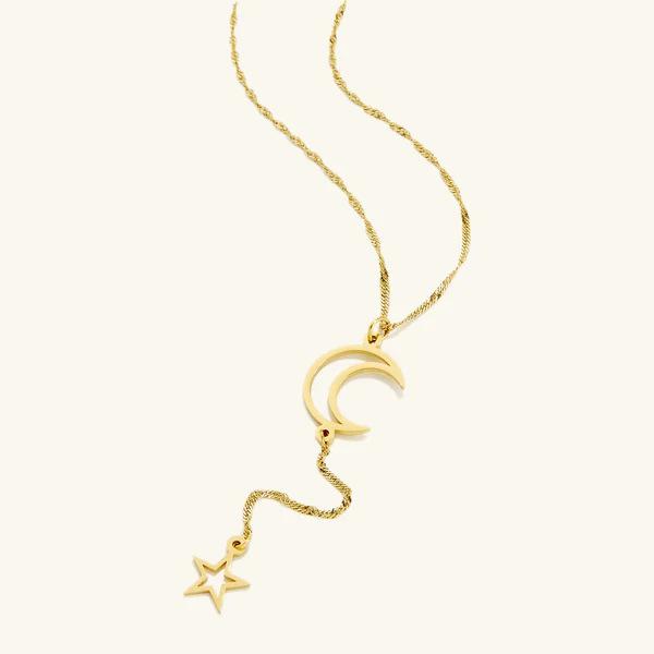 Collar Transfronterizo de Acero de Titanio Moda de Lujo Ligero Simple Estrella Hueca Luna Cadena Clavicular Collar No Se Desvanece Cadena para Suéter para Mujer