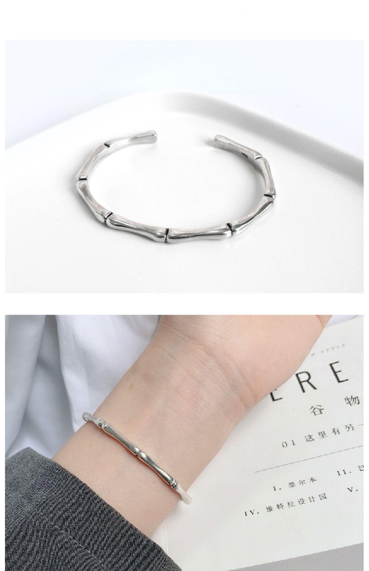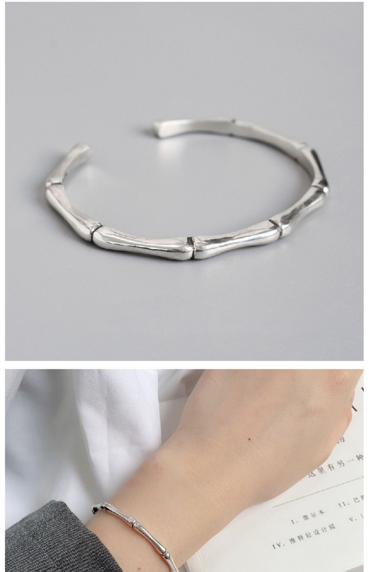 Pulsera de Bambú Retro Personalizada de Nuevo Estilo Pulsera Versátil Chic Coreano Plateado Pulsera Abierta de Bambú para Mujer Joyería
