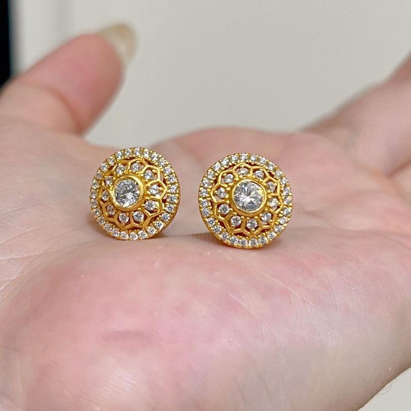 Pendientes de girasol de lujo vintage con diamantes, estilo nicho de moda, estilo antiguo, diseño de alta gama para mujer.