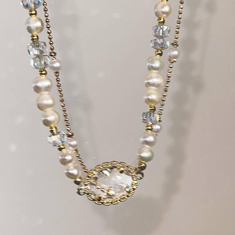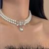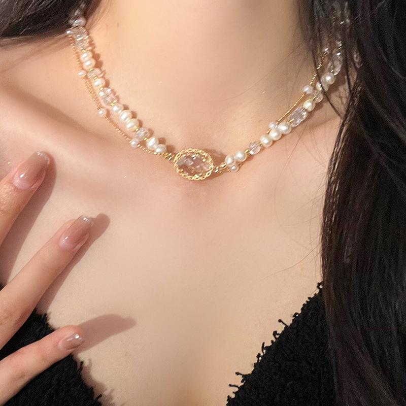 Collar de perlas ovaladas de cristal artificial, temperamento de lujo ligero francés, cadena para clavícula retro que combina con todo, joyería de alta gama al por mayor