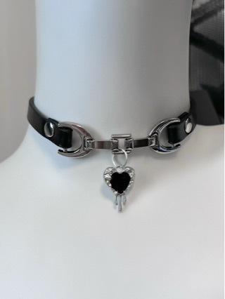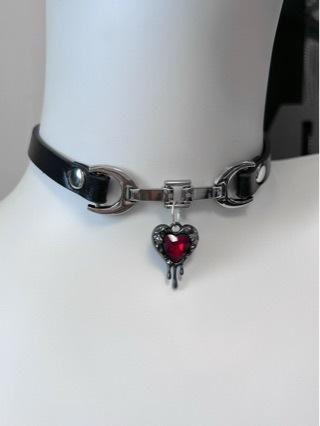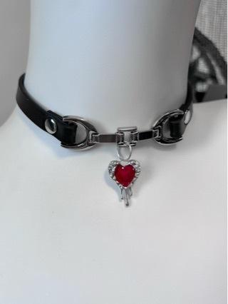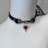 Gargantilla de cadena de cuero sintético con colgante de corazón rojo oscuro, collar negro ajustable de subcultura oscura