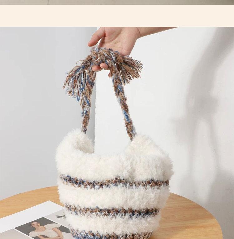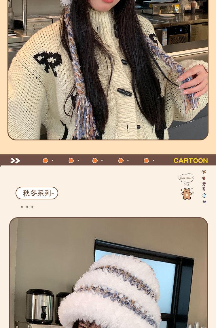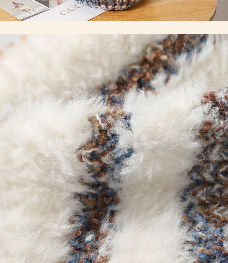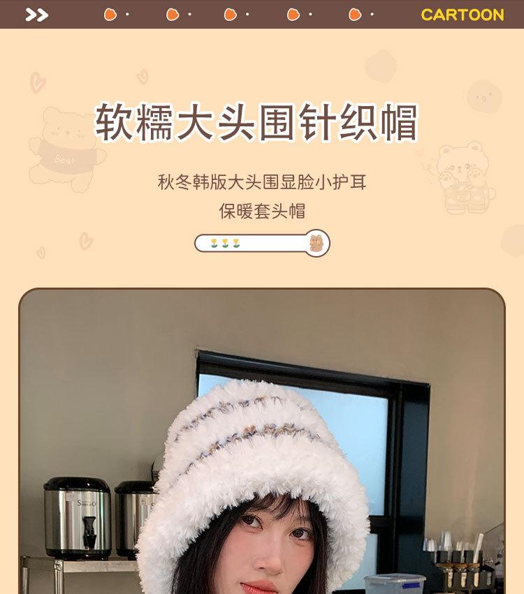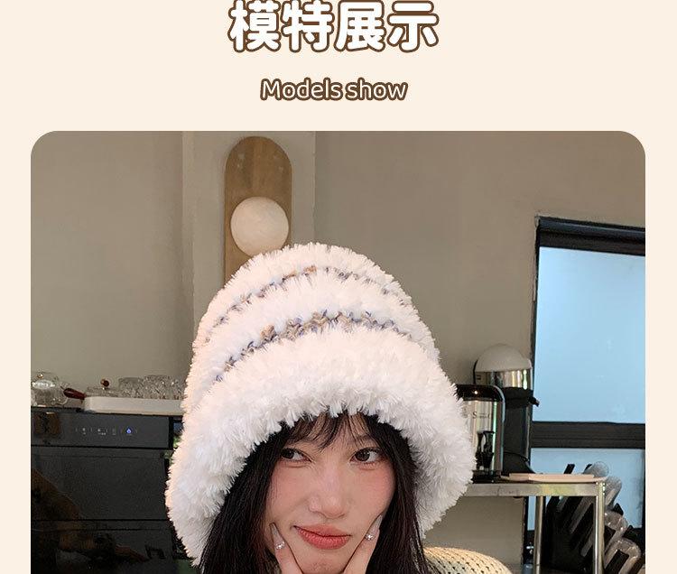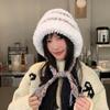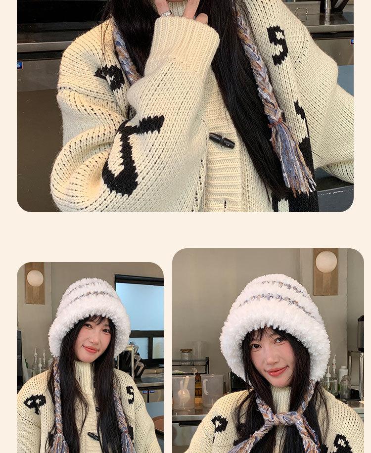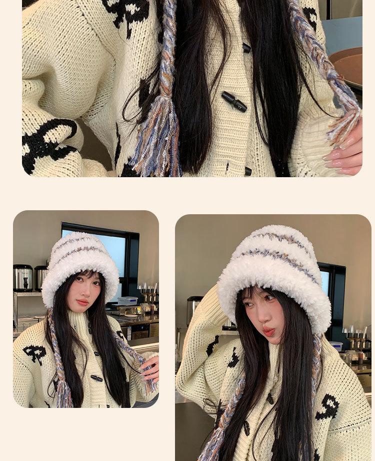 Gorro de felpa para otoño e invierno, gorro con protección para los oídos, gorro de punto a rayas de colores a juego, gorro cálido con correa pequeña que combina con todo.