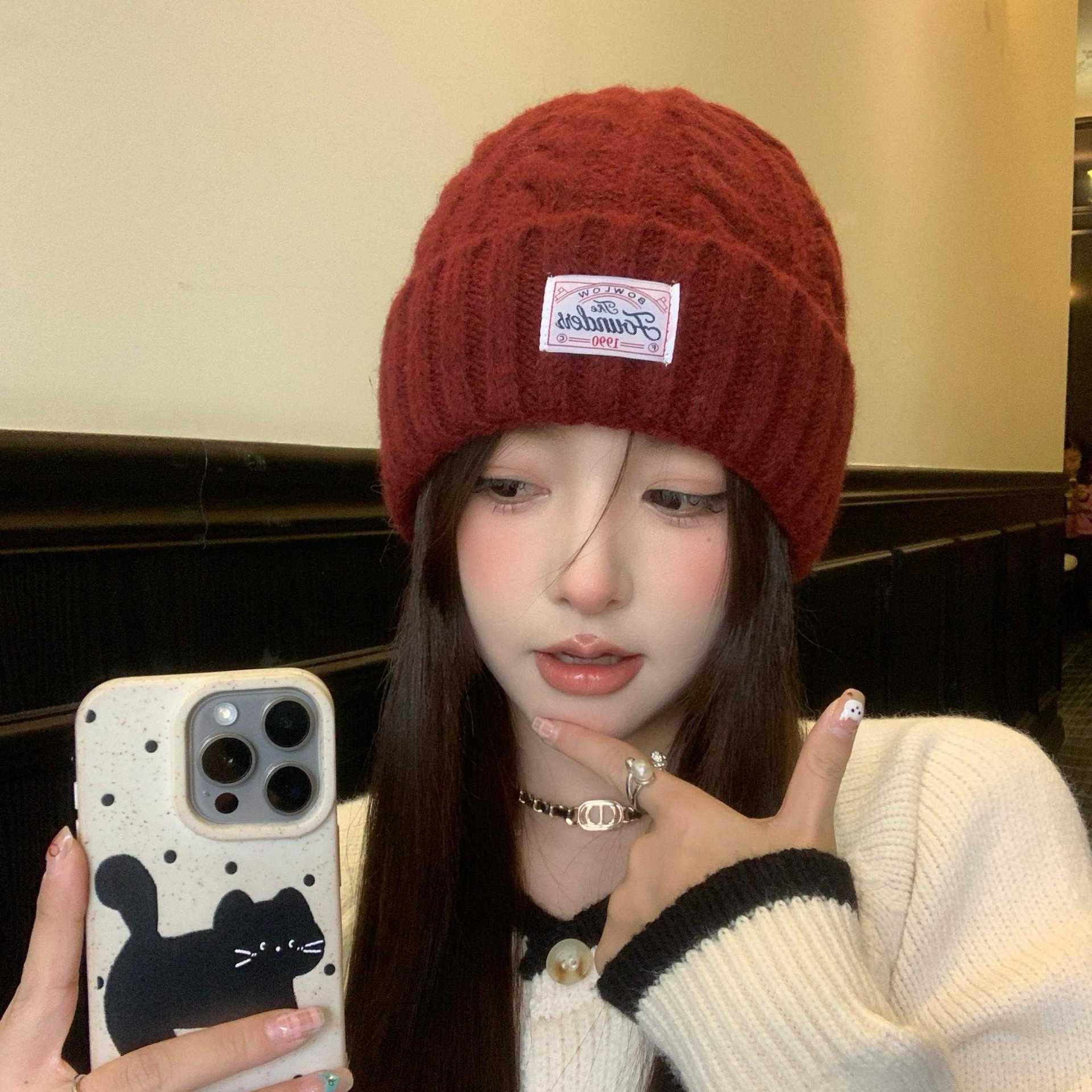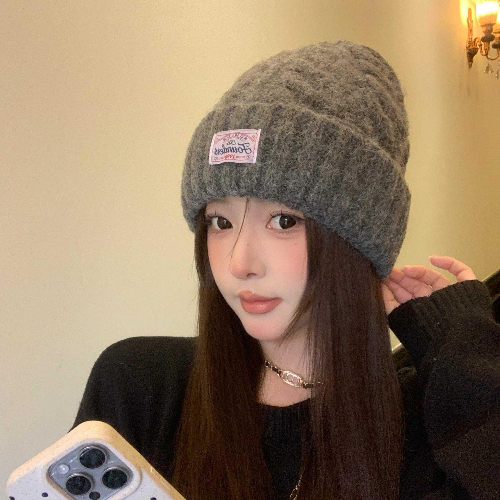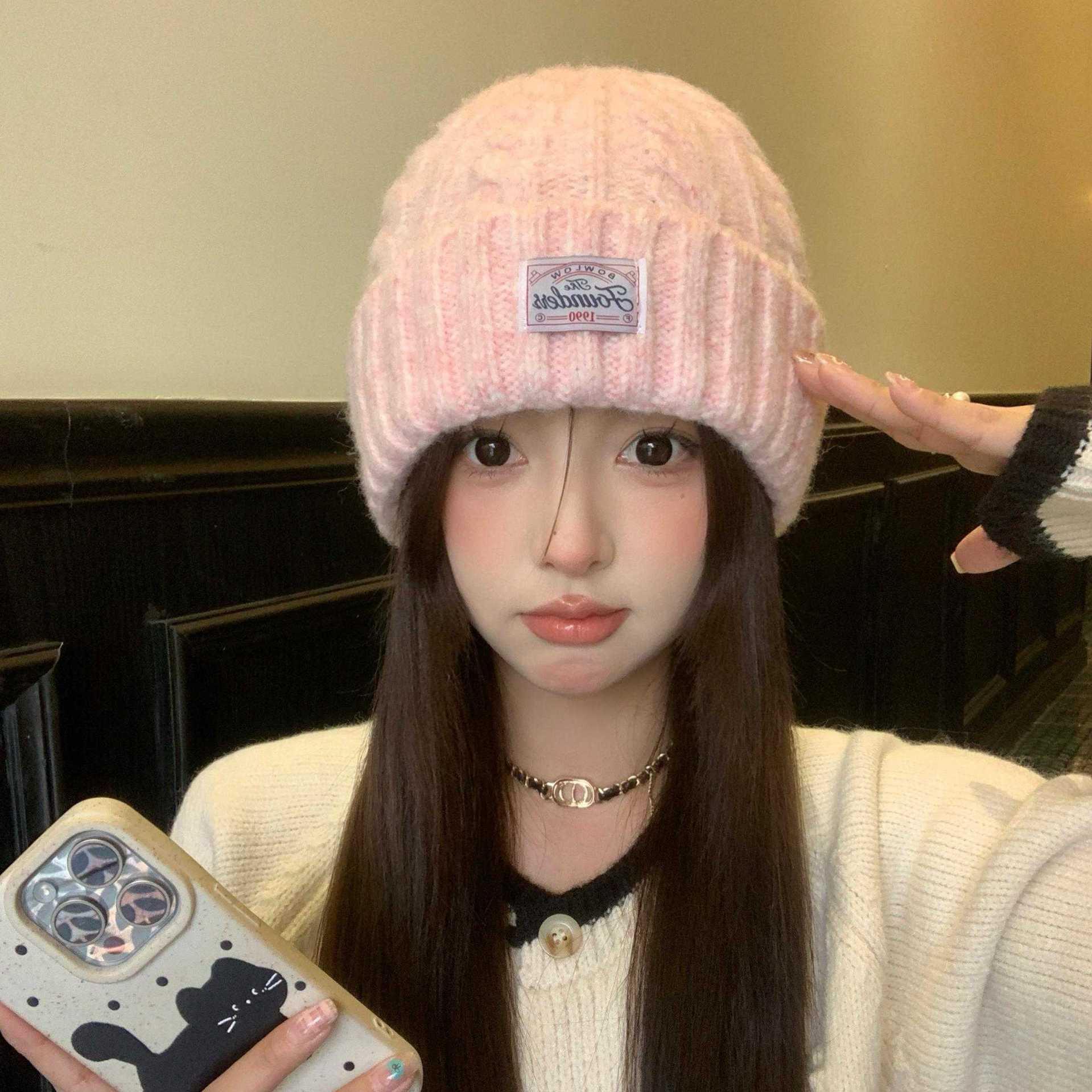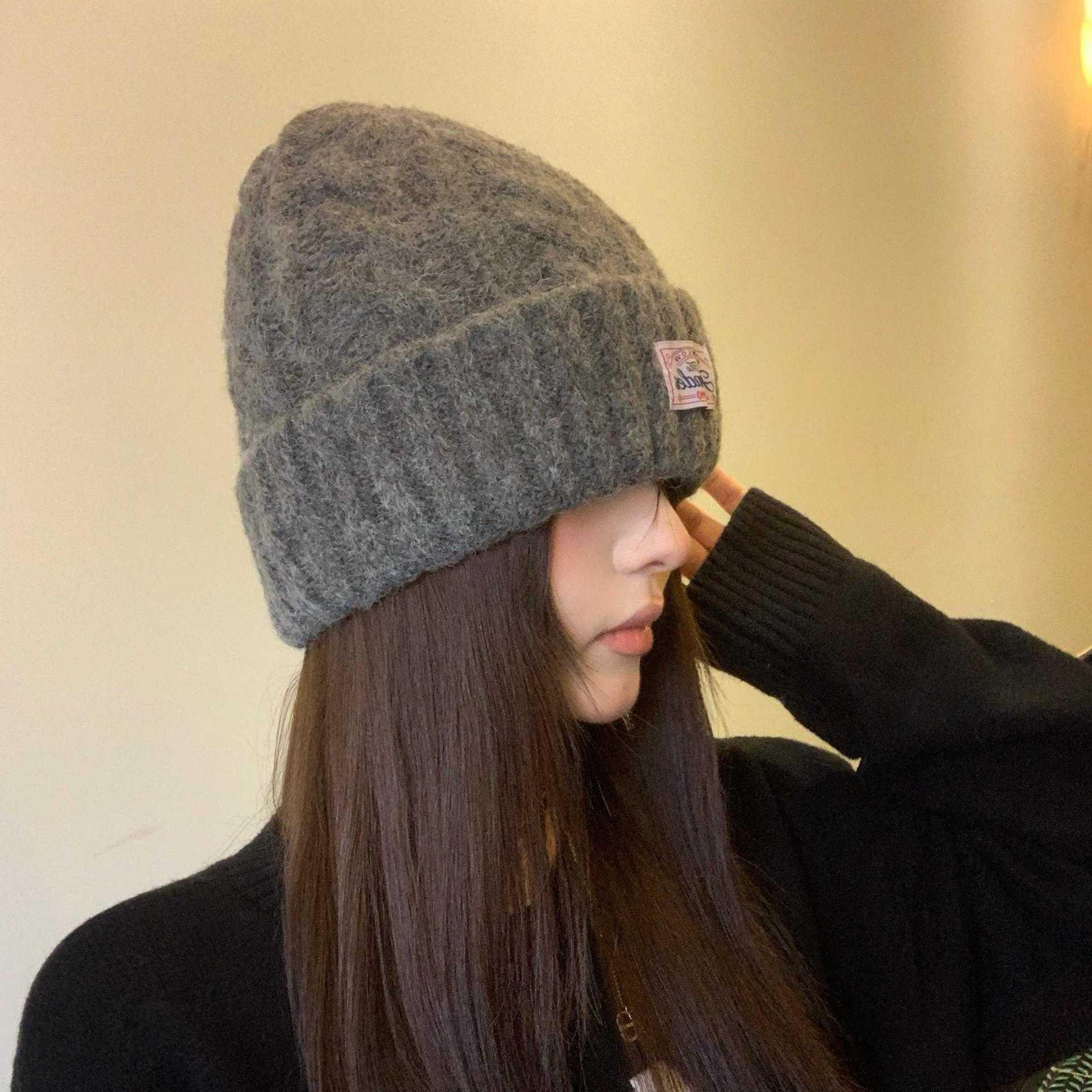 Otoño e invierno nuevo estilo coreano lana rociada sombrero individual de ocho caracteres etiqueta de tela grande exterior elegante combinable cálido tendencia sombrero de punto