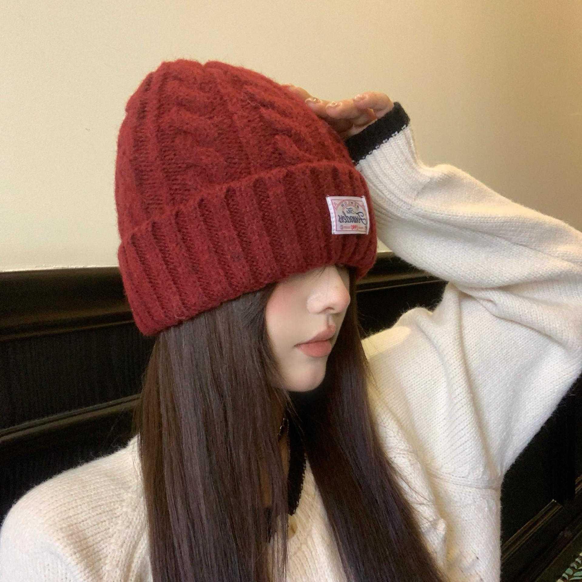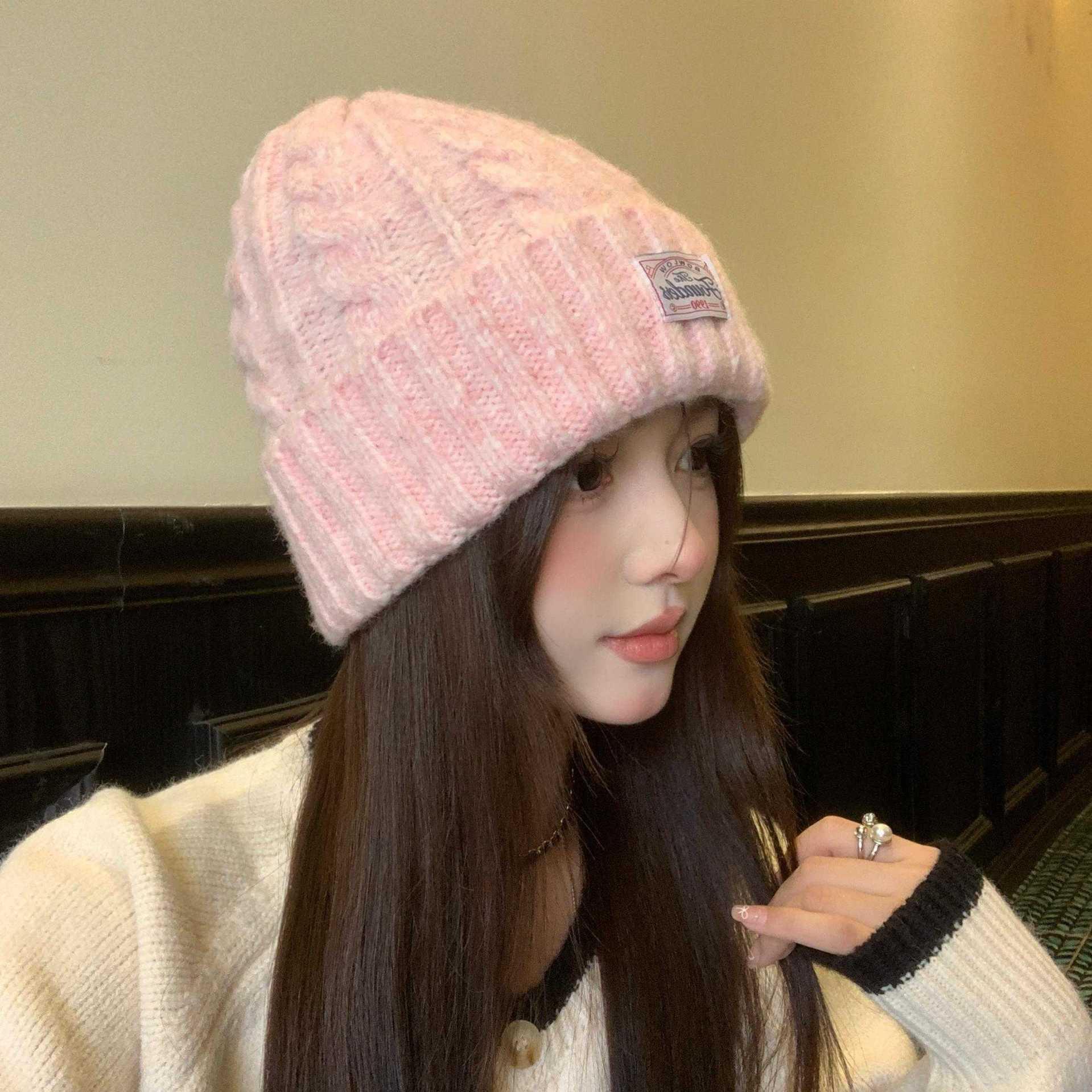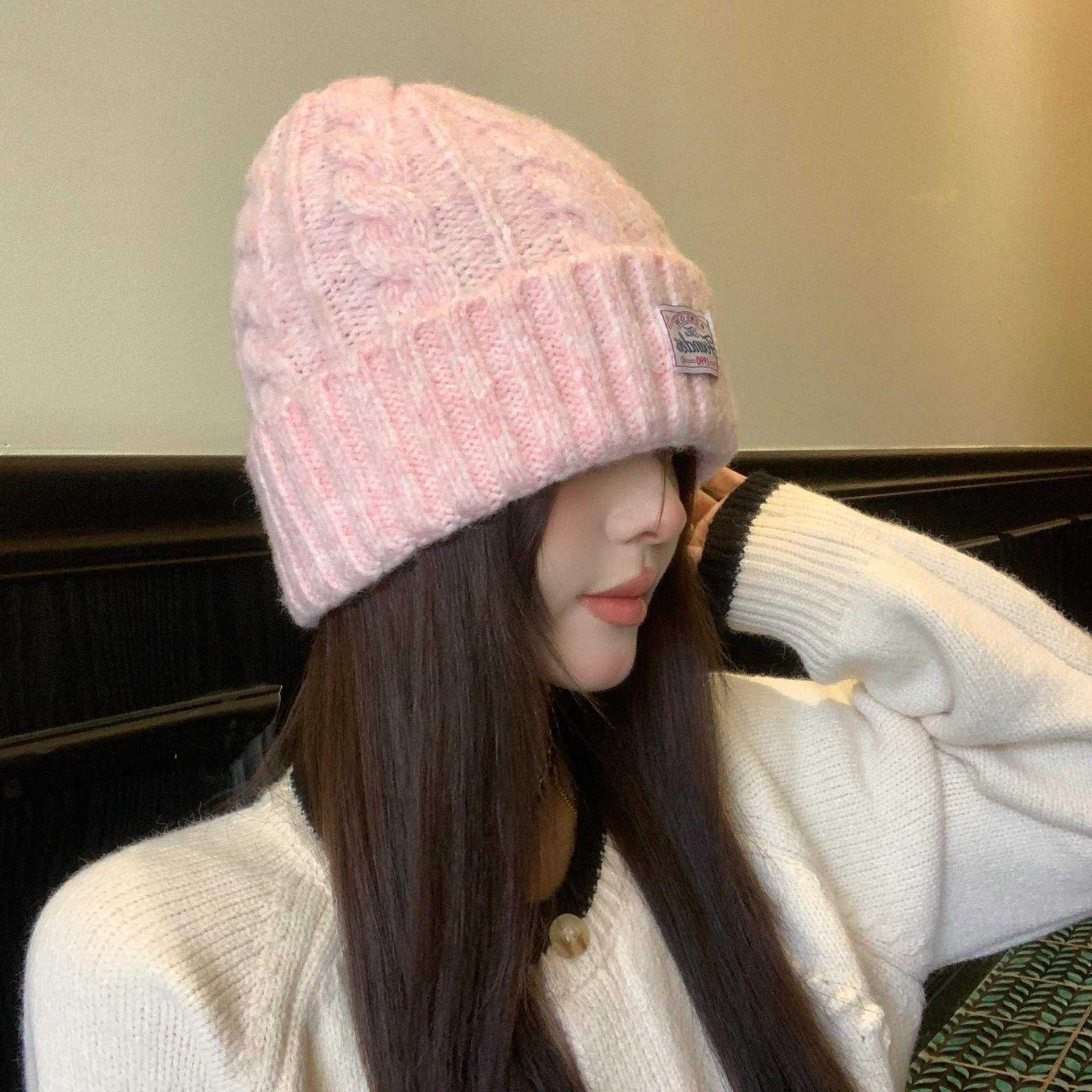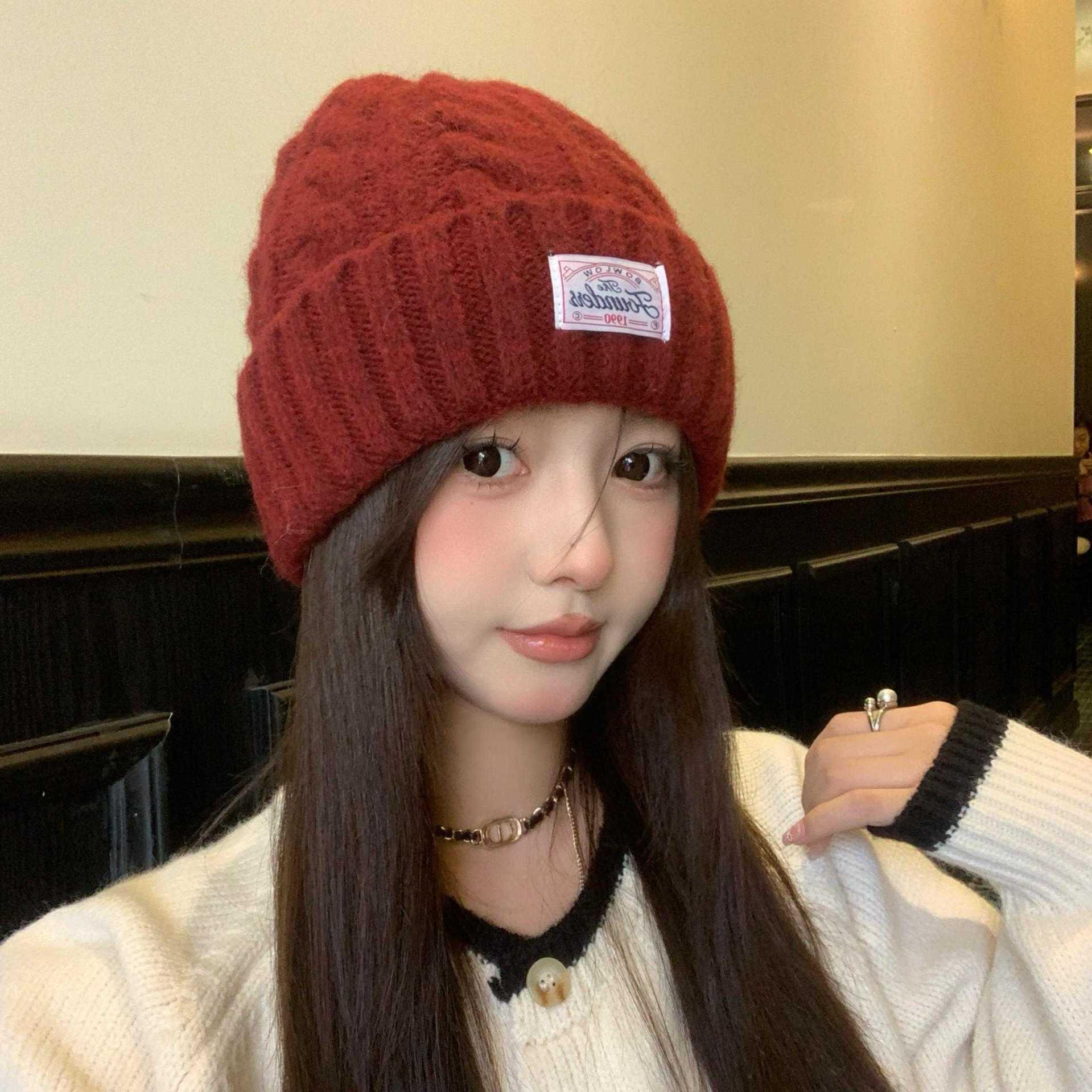 Otoño e invierno nuevo estilo coreano lana rociada sombrero individual de ocho caracteres etiqueta de tela grande exterior elegante combinable cálido tendencia sombrero de punto