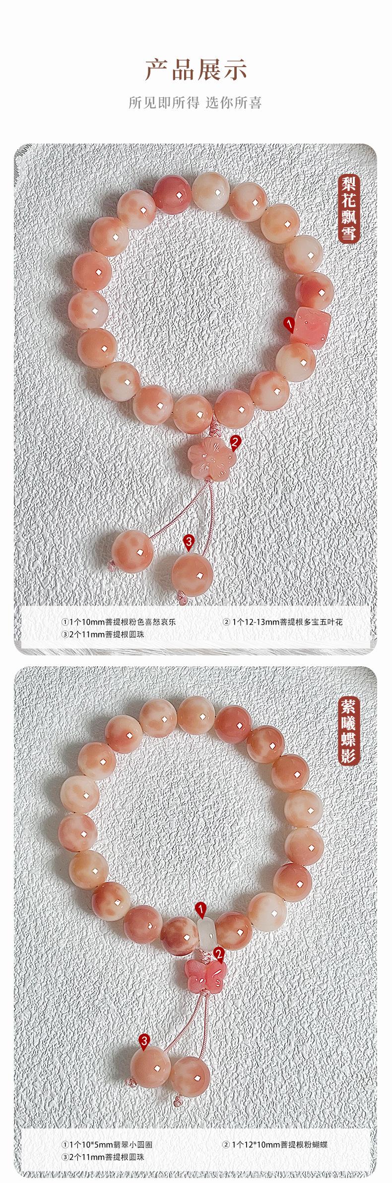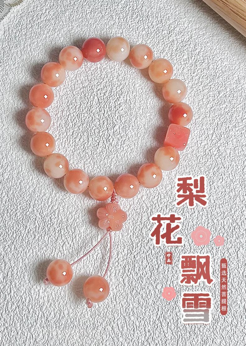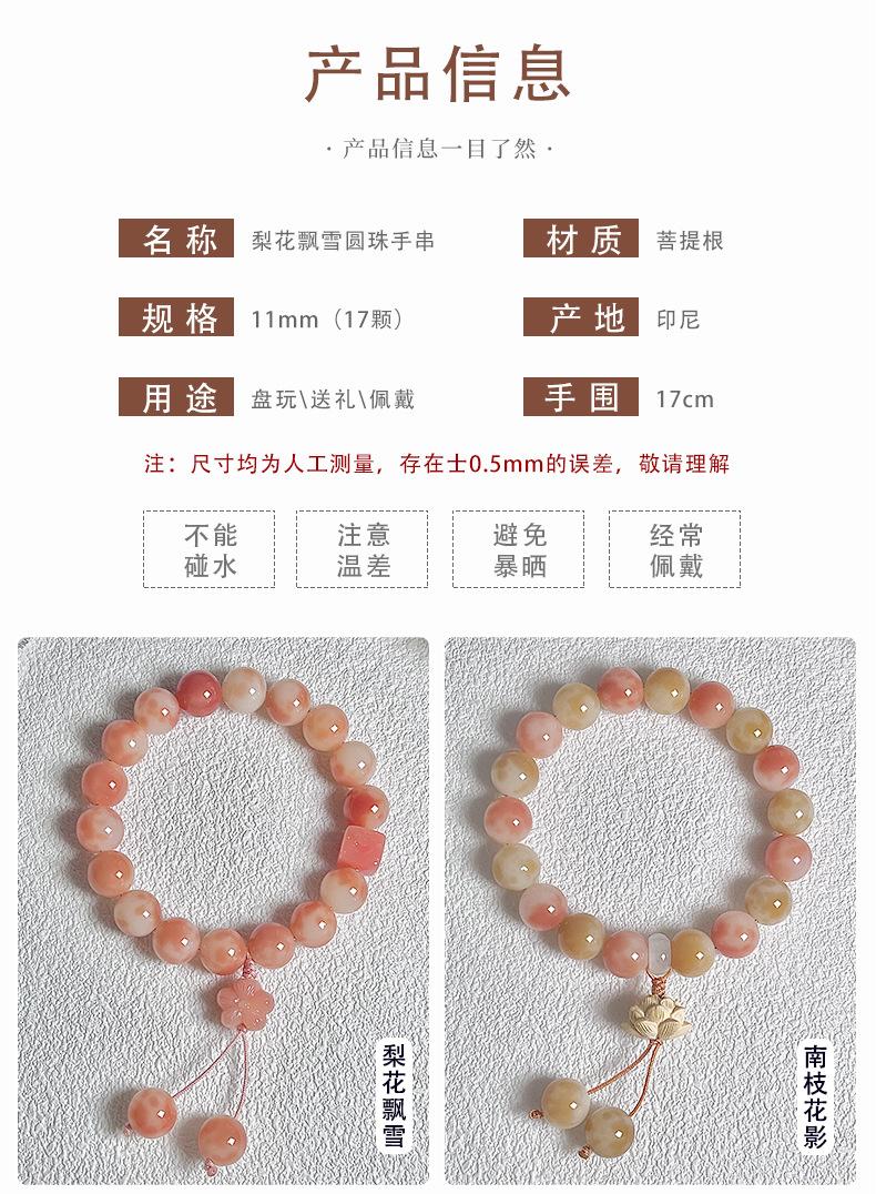 [Flor de Pera Nieve] Pulsera de Cuentas Redondas de Raíz de Bodhi Estudiante Placa Juego Suave Dedo Cuenta de Buda Wen Juego Pulsera Suministro Directo de Fábrica