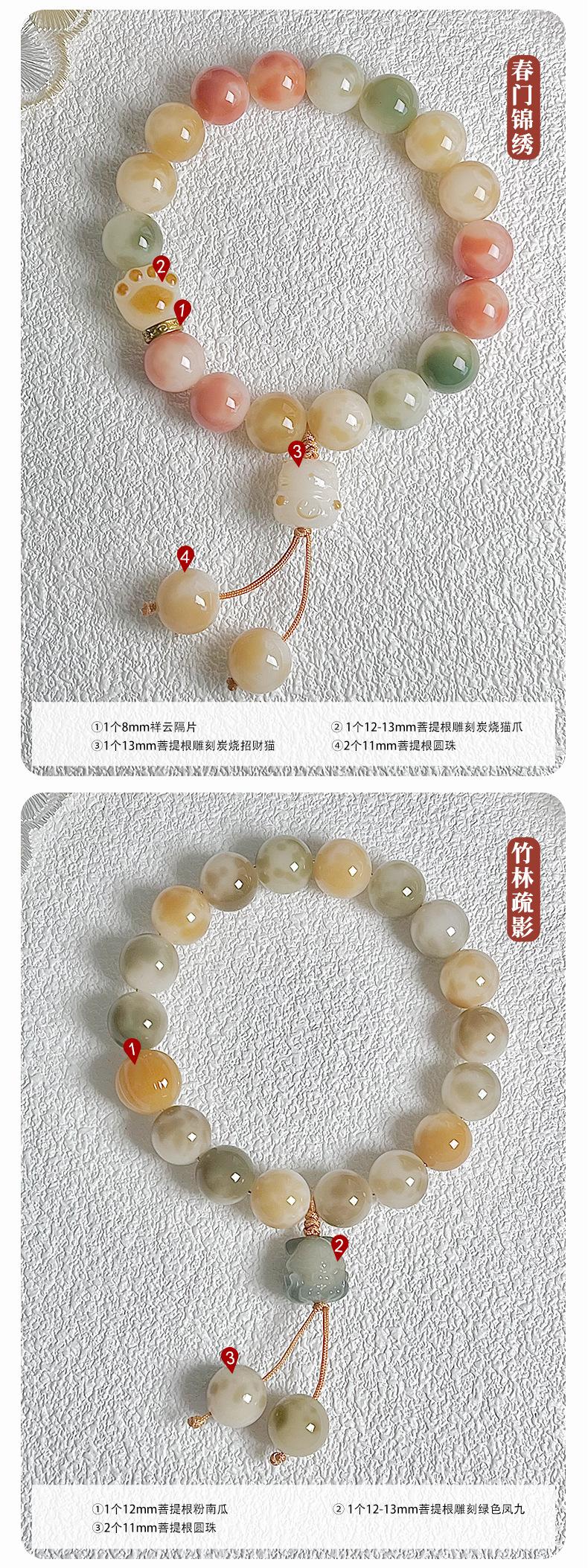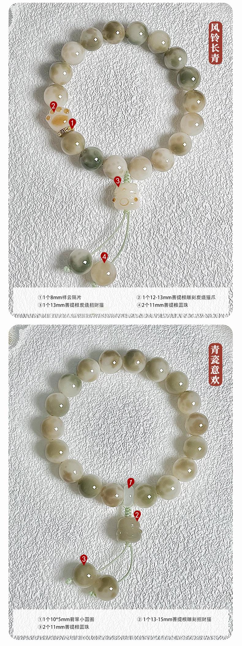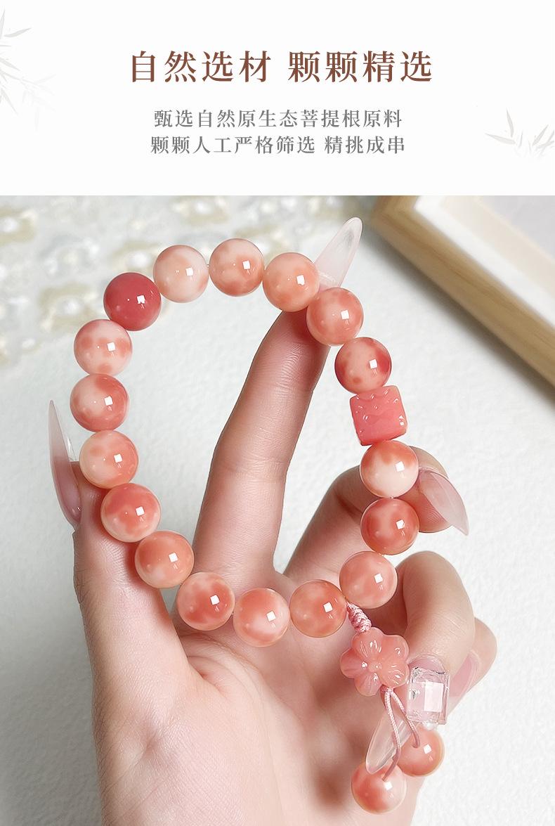 [Flor de Pera Nieve] Pulsera de Cuentas Redondas de Raíz de Bodhi Estudiante Placa Juego Suave Dedo Cuenta de Buda Wen Juego Pulsera Suministro Directo de Fábrica