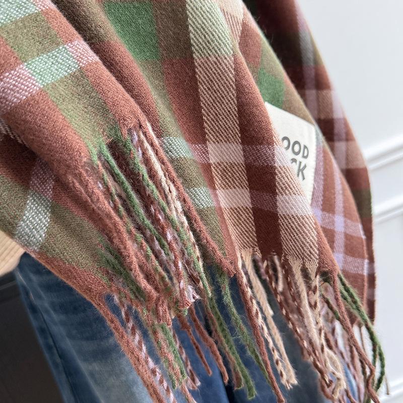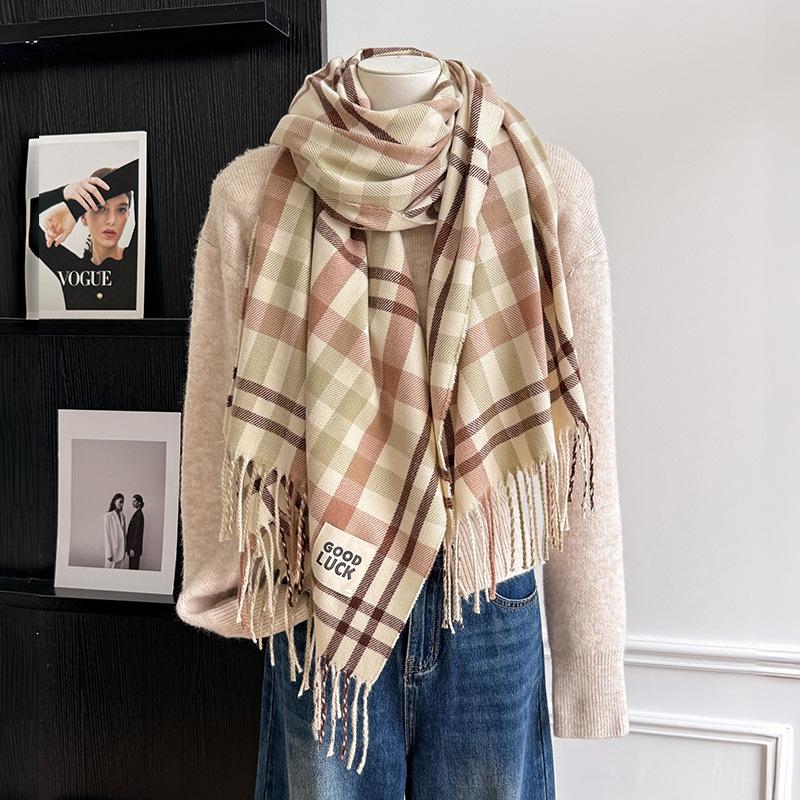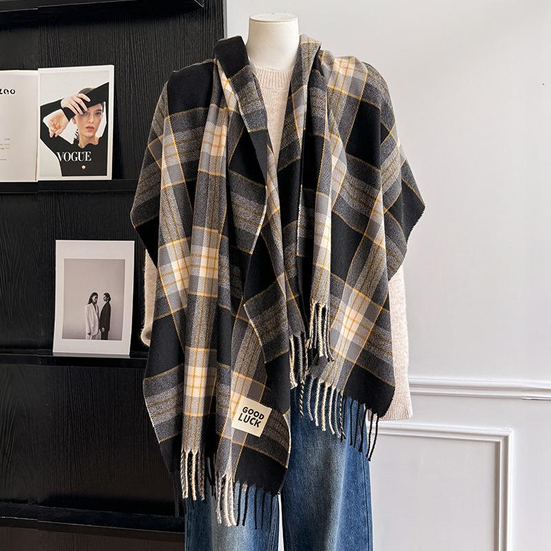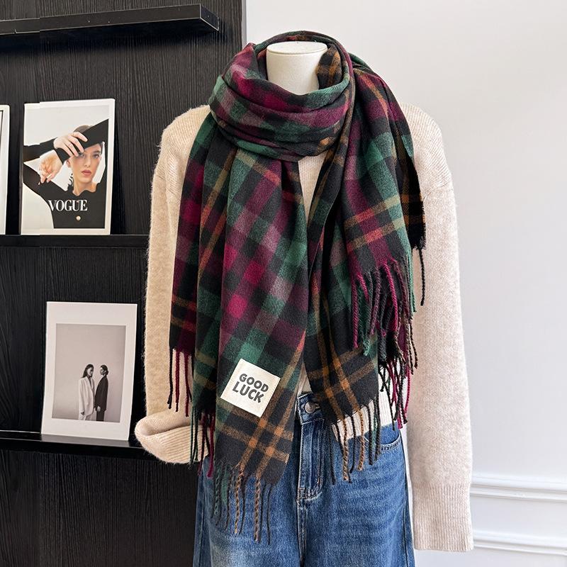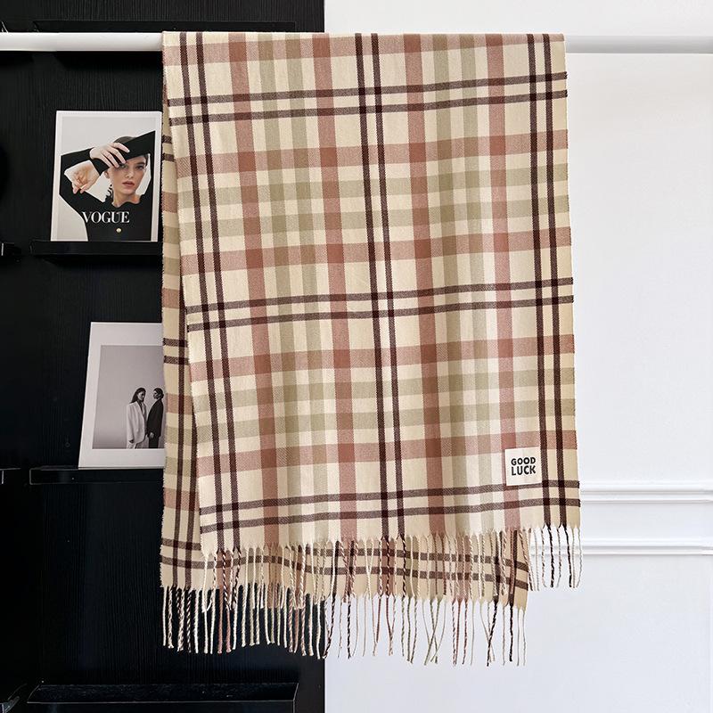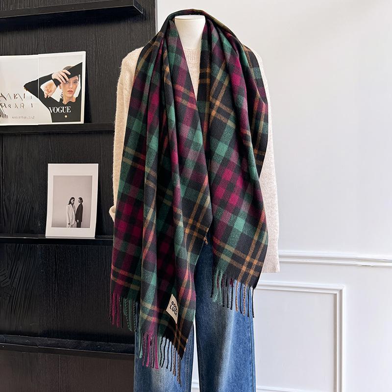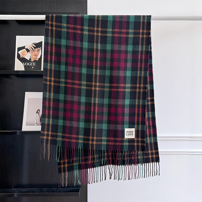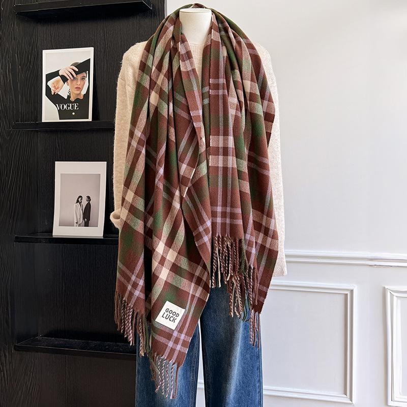 Bufanda de cachemira sintética a cuadros para mujer, estilo coreano, gruesa, cálida, para otoño e invierno, versátil y a la moda para estudiantes.