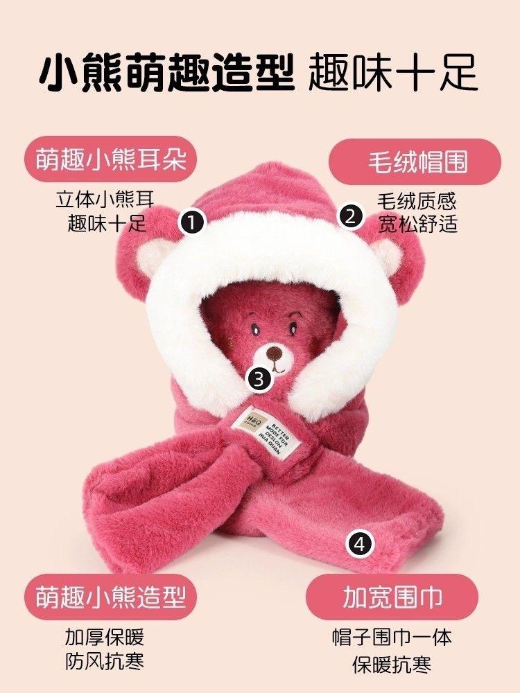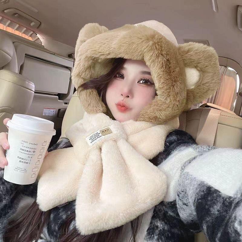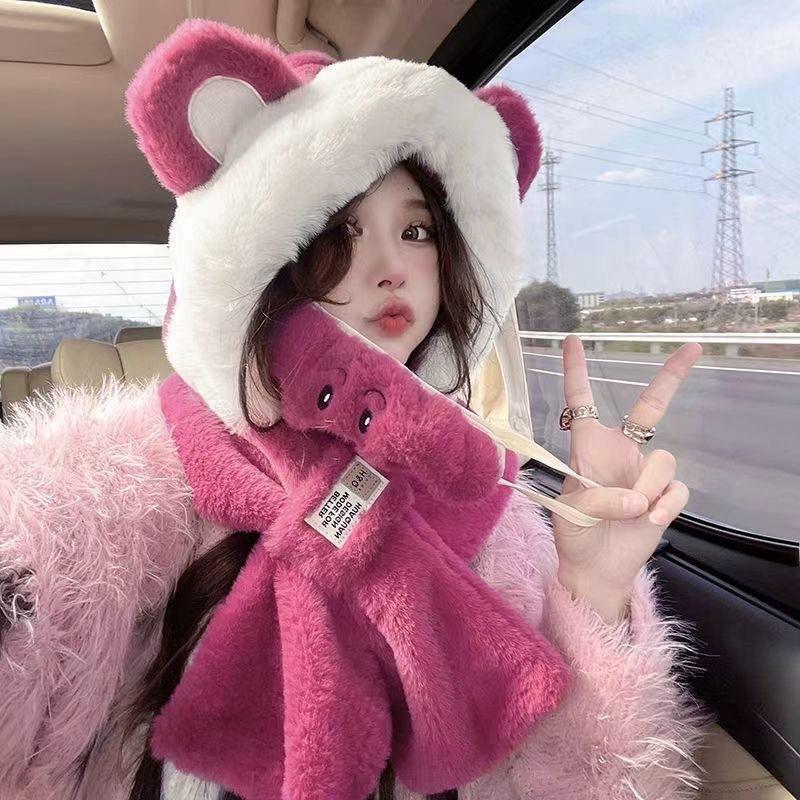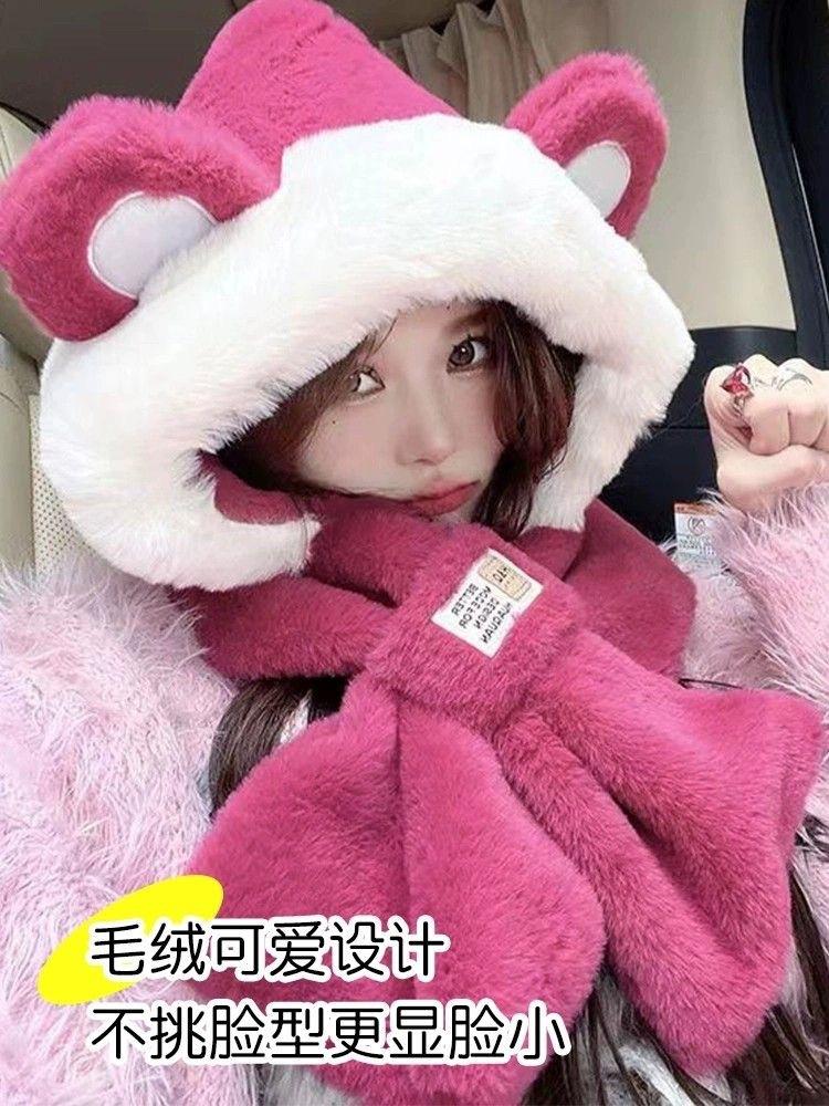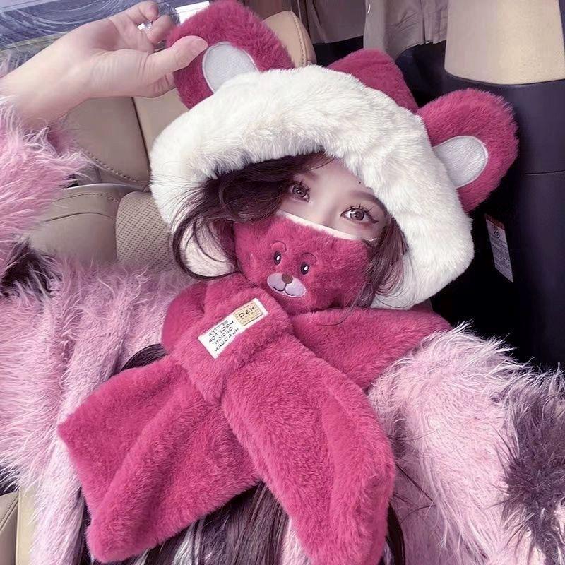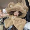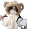 Lindo Gorro de Oso Bufanda Bufanda de Una Pieza para Mujer Invierno Protección para las Orejas Sombrero Lei Feng Chal Cálido de Felpa para Ciclismo