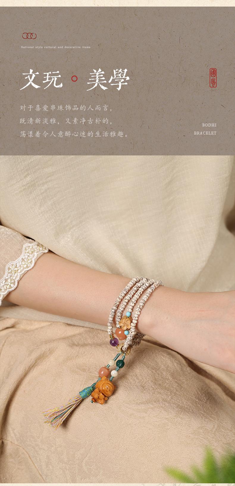 Estilo Étnico Retro Pulsera Bodhi Hainan Xingyue Bodhi Cuenta Ábaco Wen Play Pulsera Multivuelta Lote Cadena Suéter Tíbet