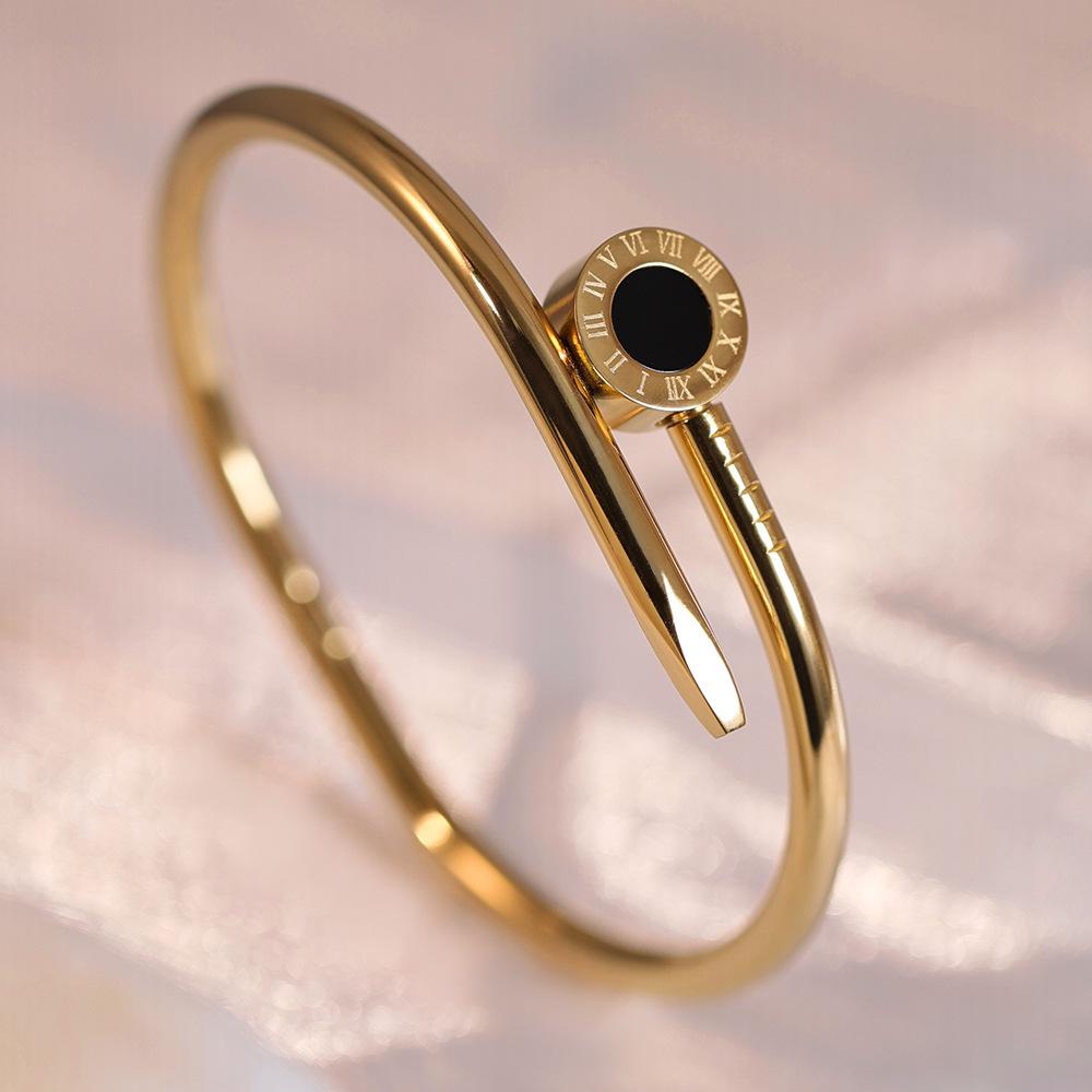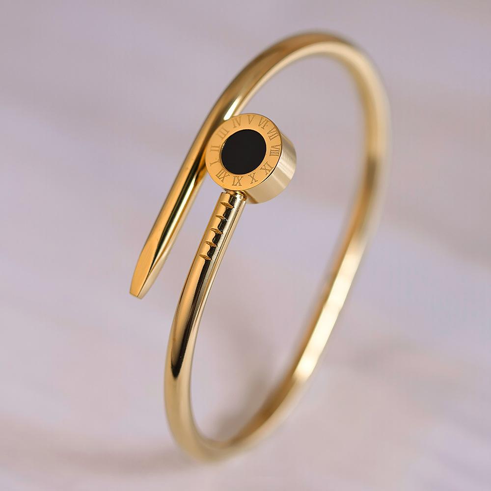 Europa y Estados Unidos fabricantes mayoristas transfronterizos de hebillas joyería de alta calidad para mujer joyería que no se desvanece pulsera de acero de titanio con clavo dorado