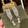 Pendientes de perla de imitación retro francesa con aguja de plata, estilo cortesano, elegantes, elegantes, elegantes, con diseño de nicho, combinables para mujer.