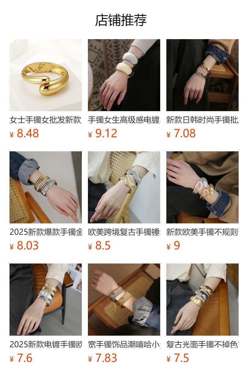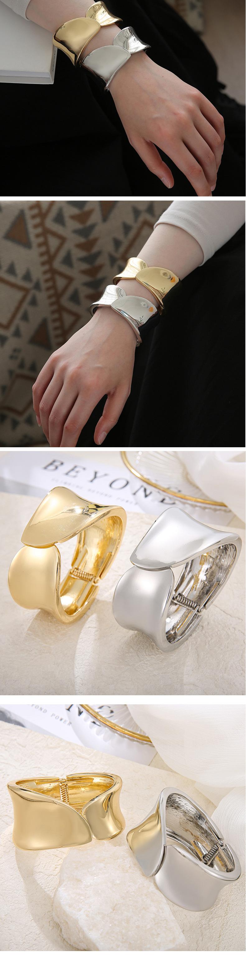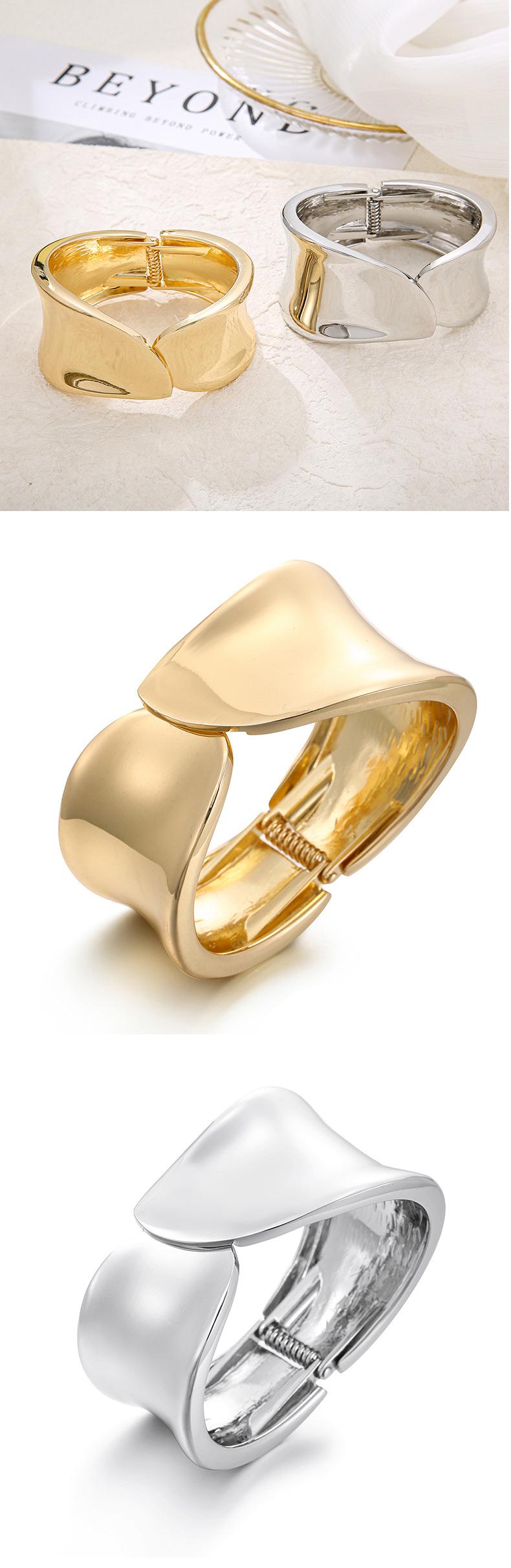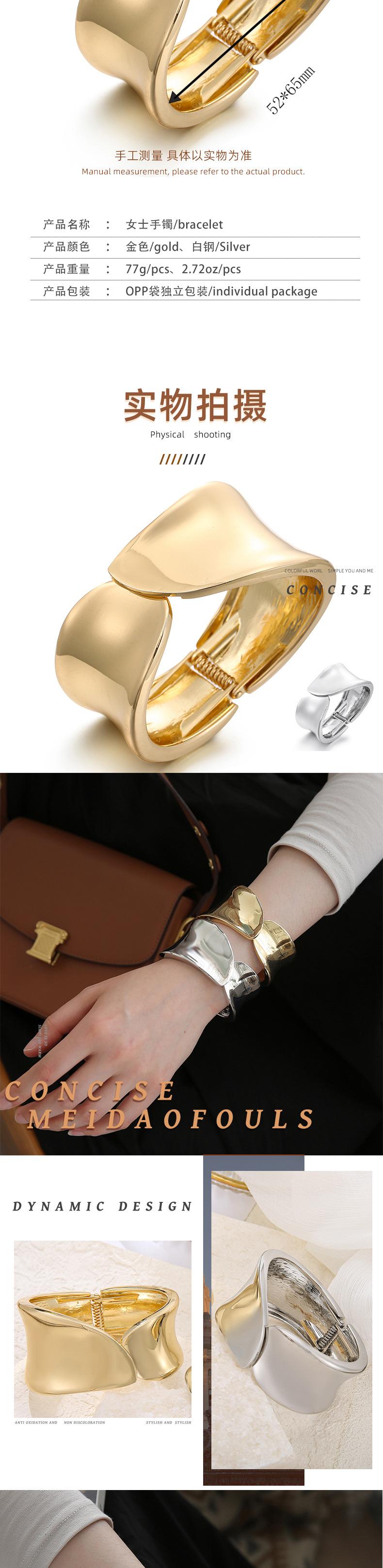 Pulsera Dorada Apertura Verano Europea y Americana Exagerada de Alta Gama Personalidad Pulsera Color Libre Electrochapada Brillo Aleación Joyería de Mano