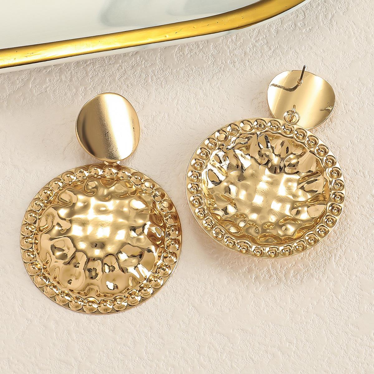 Aretes de Moda Europea y Americana OL de Lujo Ligero Nicho de Alta Gama Diseño Redondo Plisado Aretes para Mujer Aretes Simples que Combinan con Todo