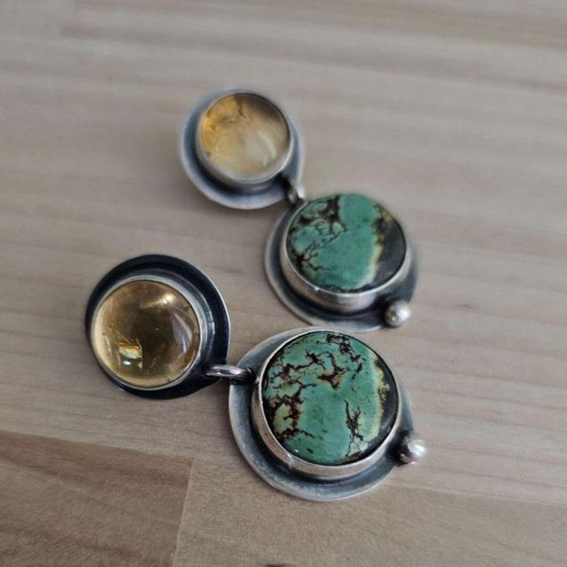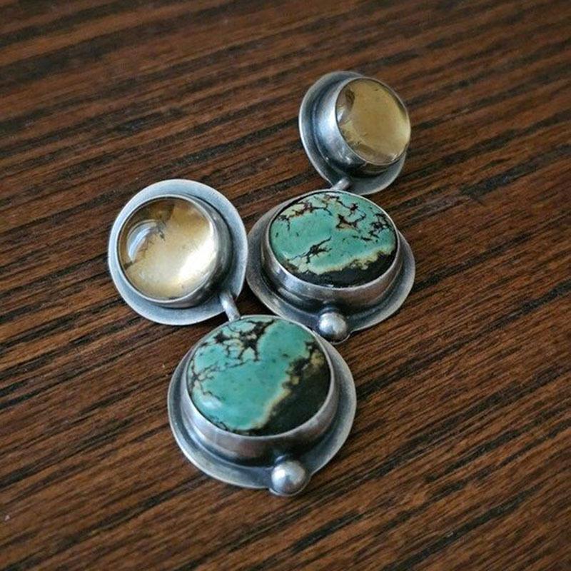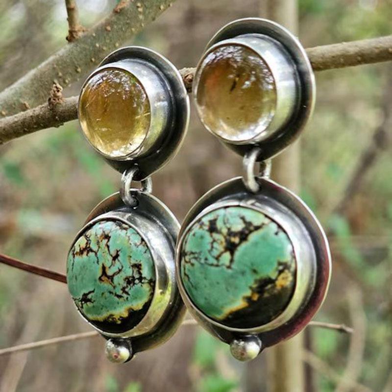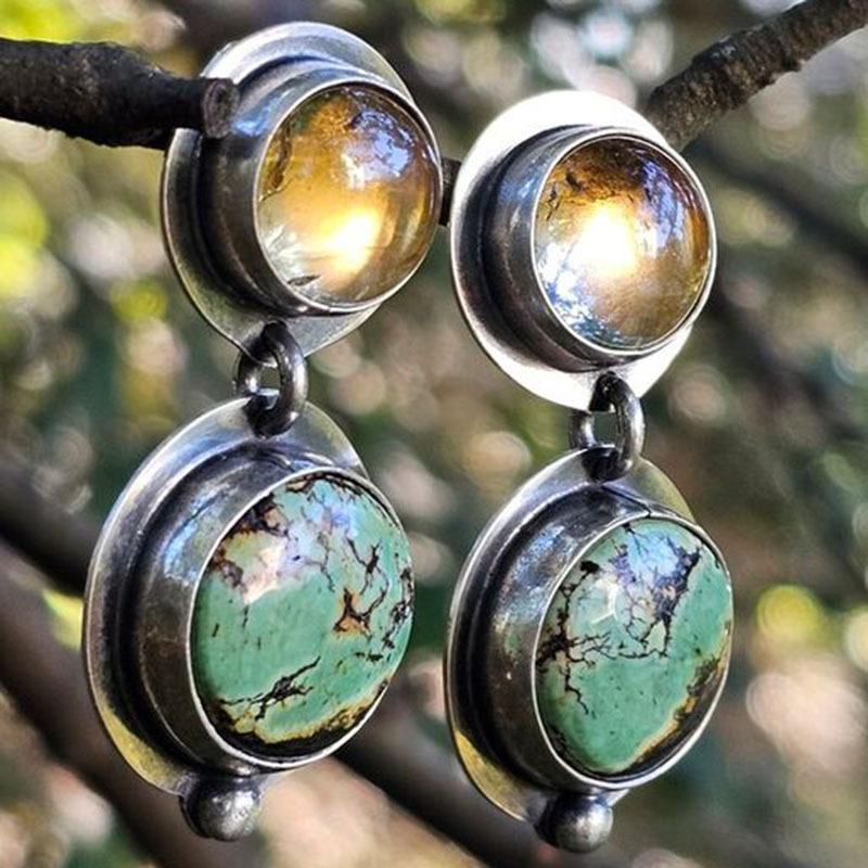 Pendientes colgantes redondos geométricos retro europeos y americanos, pendientes de aleación hechos a mano étnicos creativos, joyería para damas