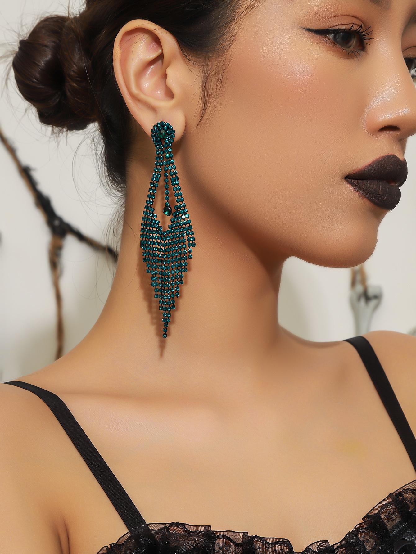 Aretes Clásicos Retro Verdes con Borlas Largas Transfronterizos Europeos y Americanos, Aretes Joker de Moda para Mujer, Joyería para la Oreja Precio al por Mayor