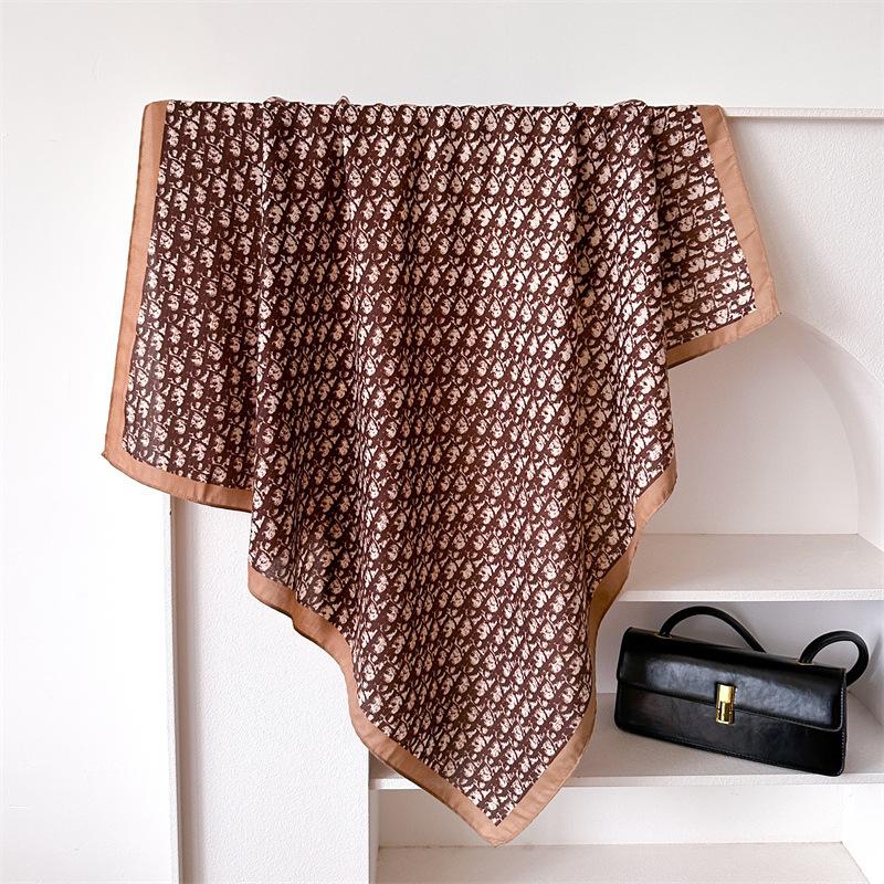 Letra Coreana Combinable Profesional 90cm Pañuelo Cuadrado Grande de Seda Chal Estampado Retro Pañuelo de Espiguilla para Mujer