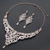 Nuevo conjunto de dos piezas de collar y pendientes de oro rosa para traje europeo y americano, joyas de diamantes, accesorios para vestido de cena de boda, disponible en stock