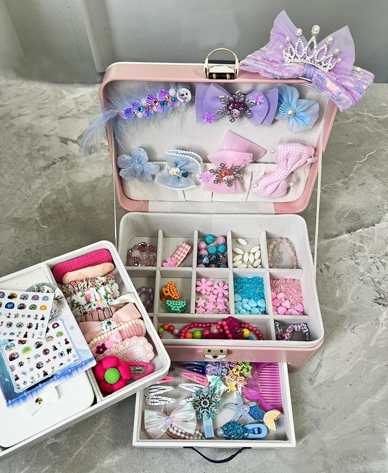 Set de Accesorios para el Cabello para Niñas Caja de Regalo Regalo de Cumpleaños Adornos para la Cabeza para Niñas Horquilla para el Cabello de Princesa Liga Anillo Pulsera Caja de Joyería