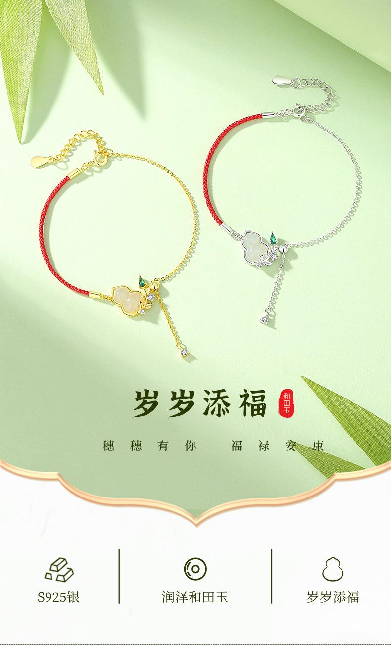 Nueva pulsera de jade Suisui Tianfu Hetian de estilo chino para mujer, pulsera de plata de ley S925, pulsera de calabaza Fulu de alta calidad, estilo nacional