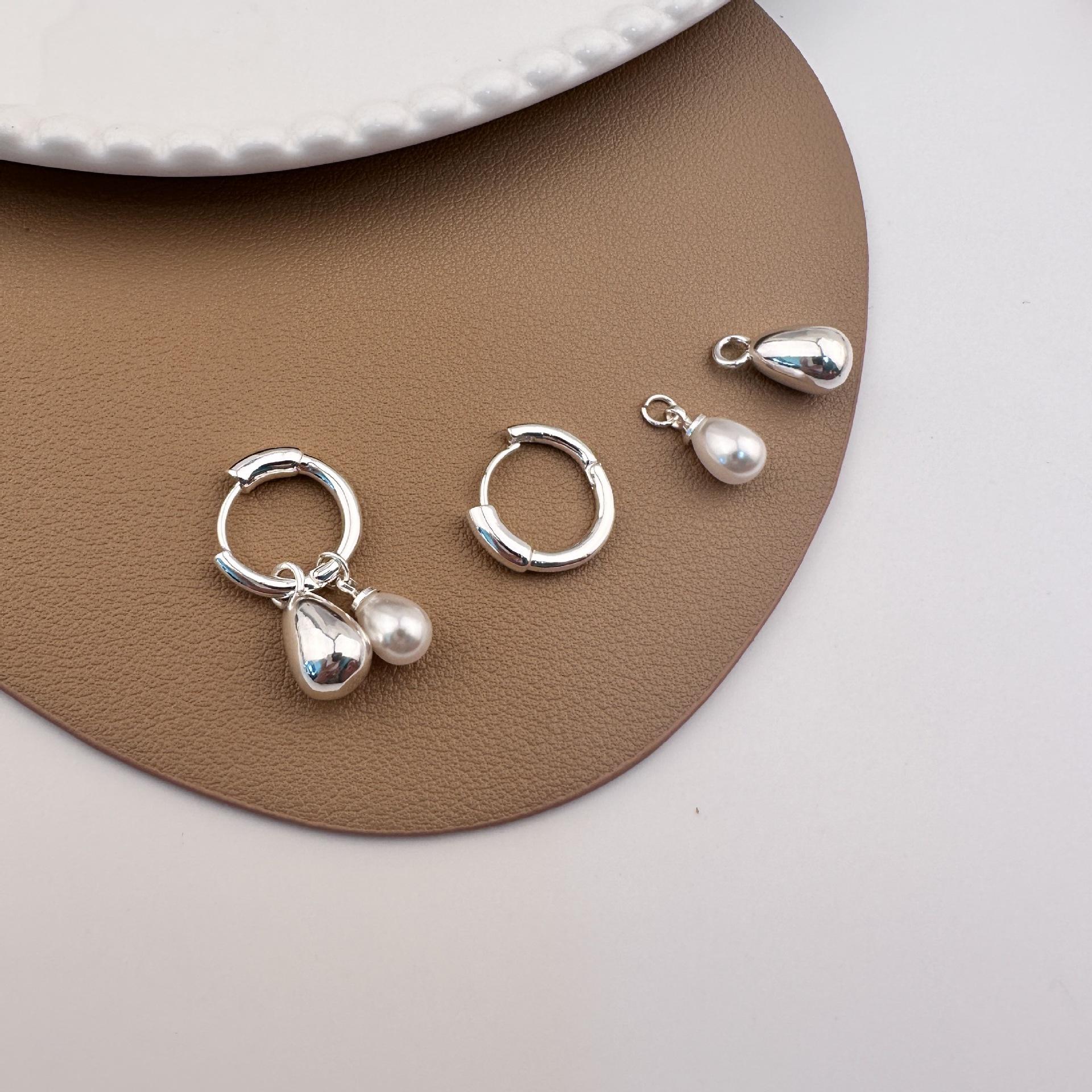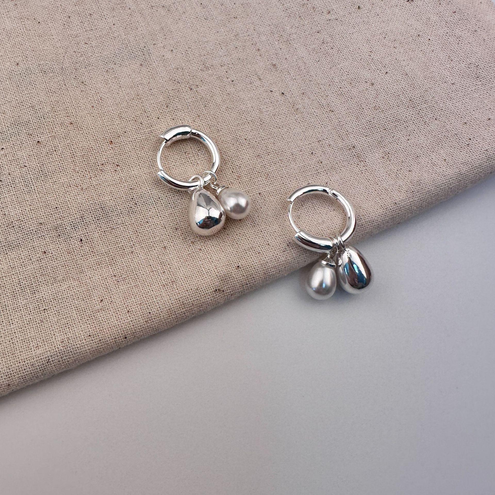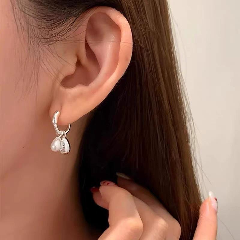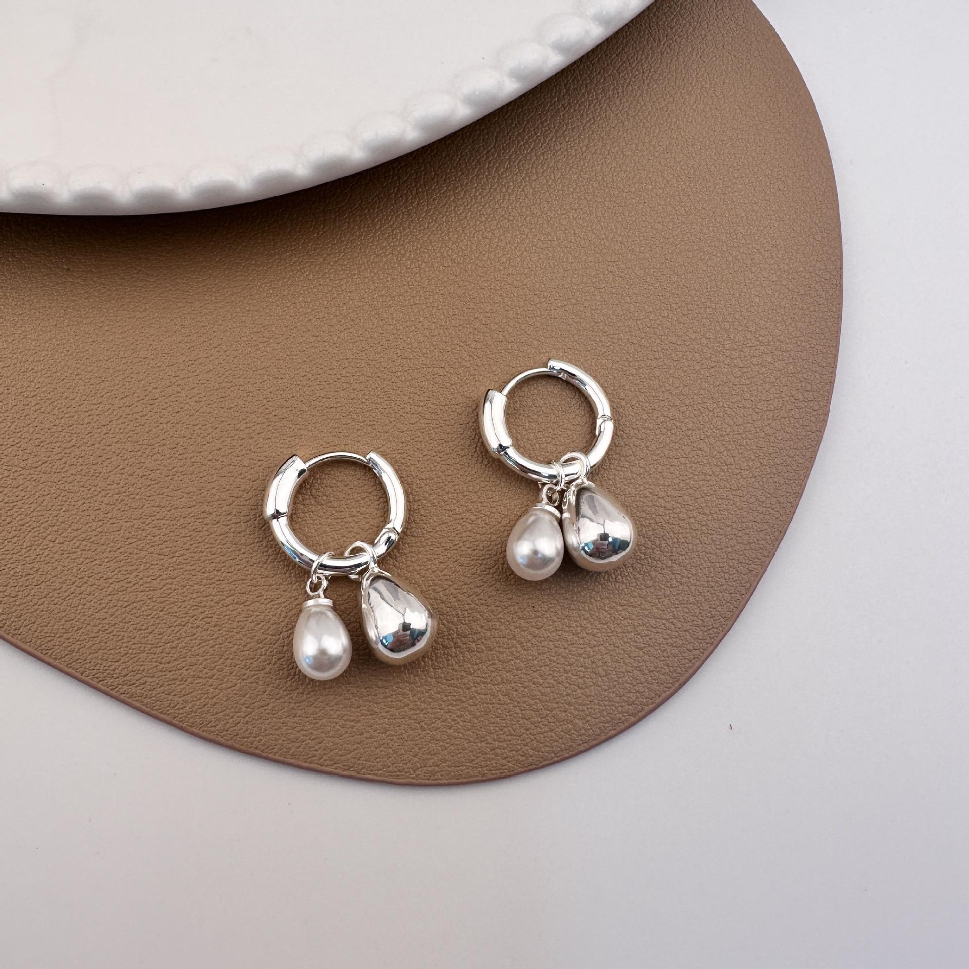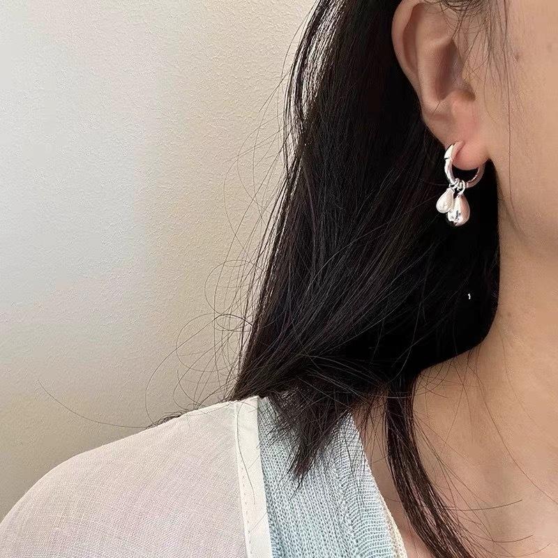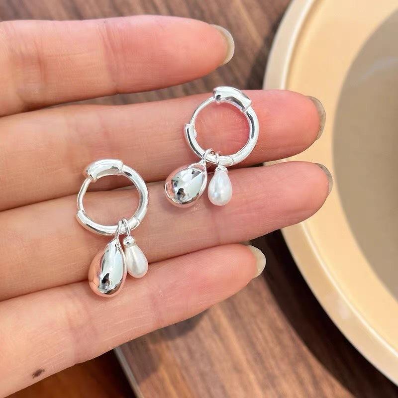 Silver water drop pearl pendant earrings