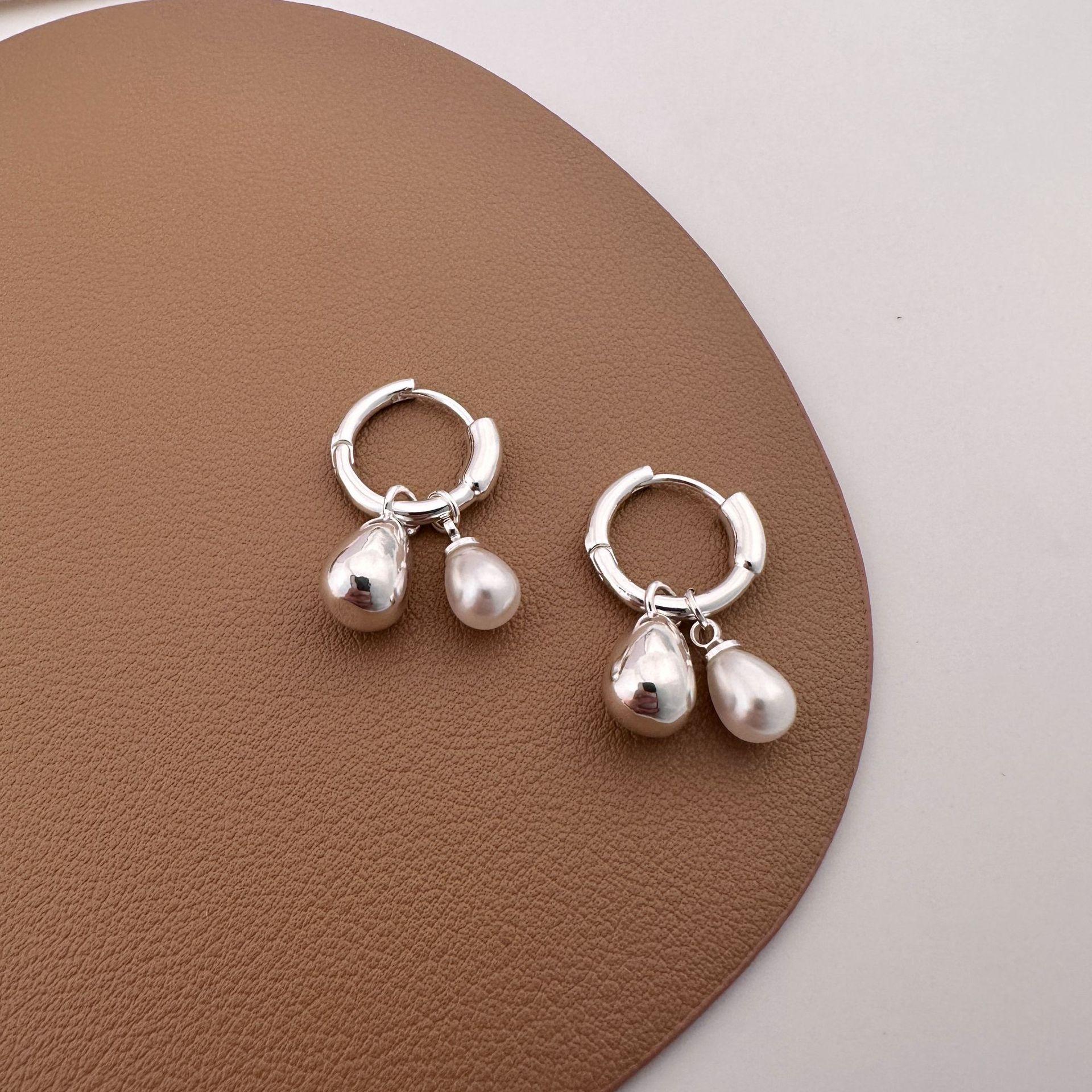 Pendientes de metal con forma de gota de agua y perla, diseño de nicho, para mujer, sencillos, ligeros, de lujo, elegantes, a la moda, elegantes, combinables con todo.