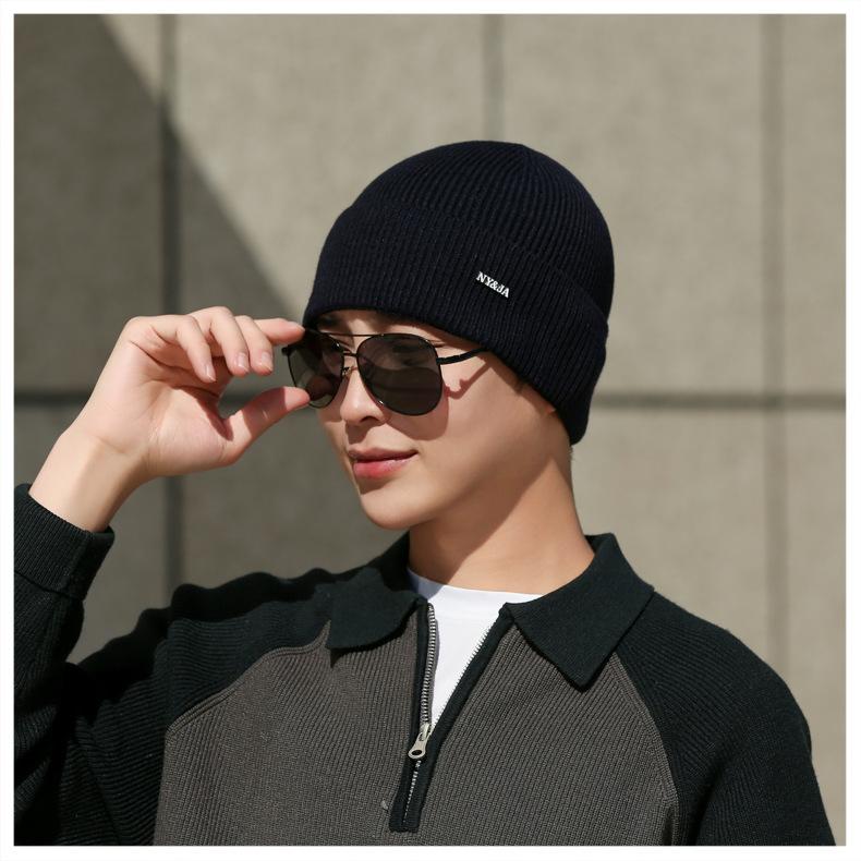 Sombrero de Moda para Hombre Otoño e Invierno Nuevo Versátil Cálido Cortavientos Sombrero de Lana Ciclismo al Aire Libre Protección para los Oídos Sombrero de Punto Engrosado