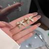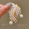 Exquisitos pendientes de micro perla con forma de aguja de plata, elegantes pendientes de celebridades de Internet, personalizados, atmosféricos, exagerados y con un sentido avanzado.
