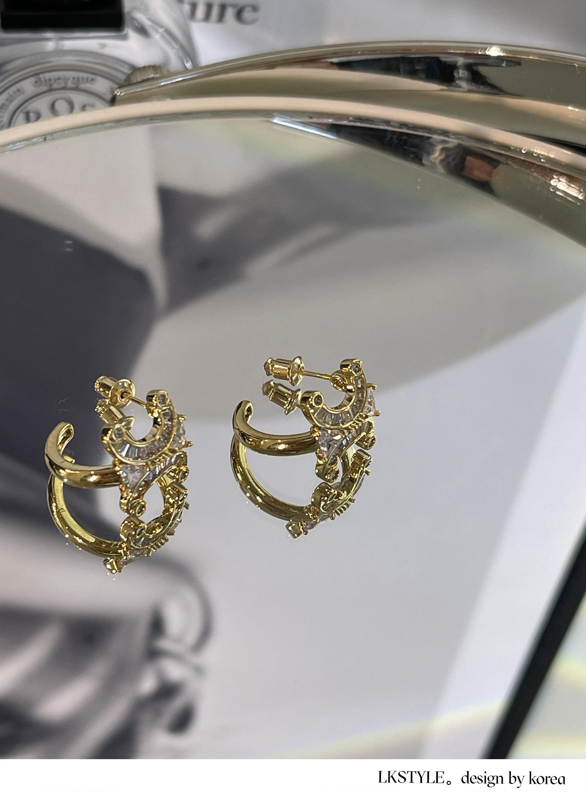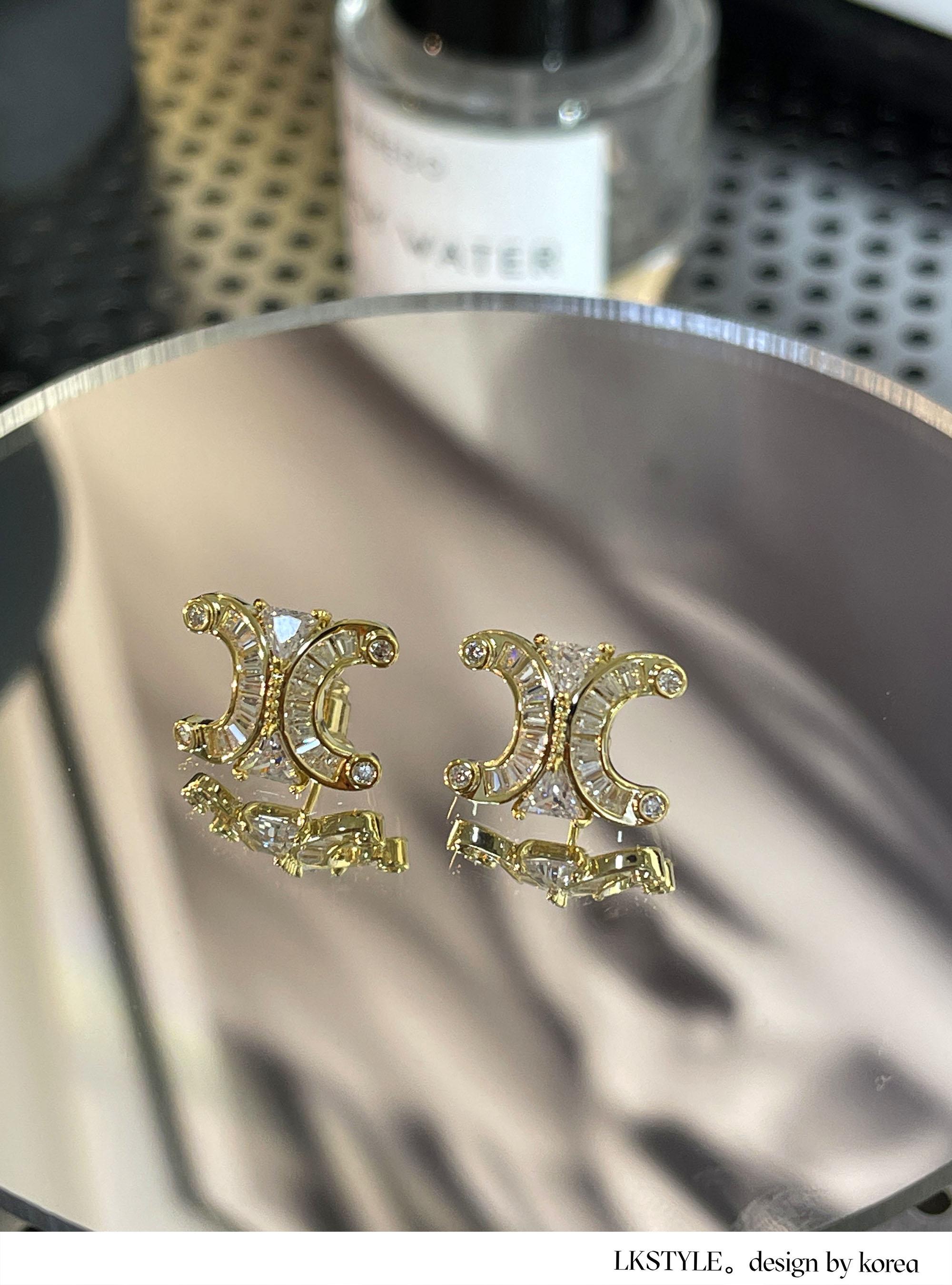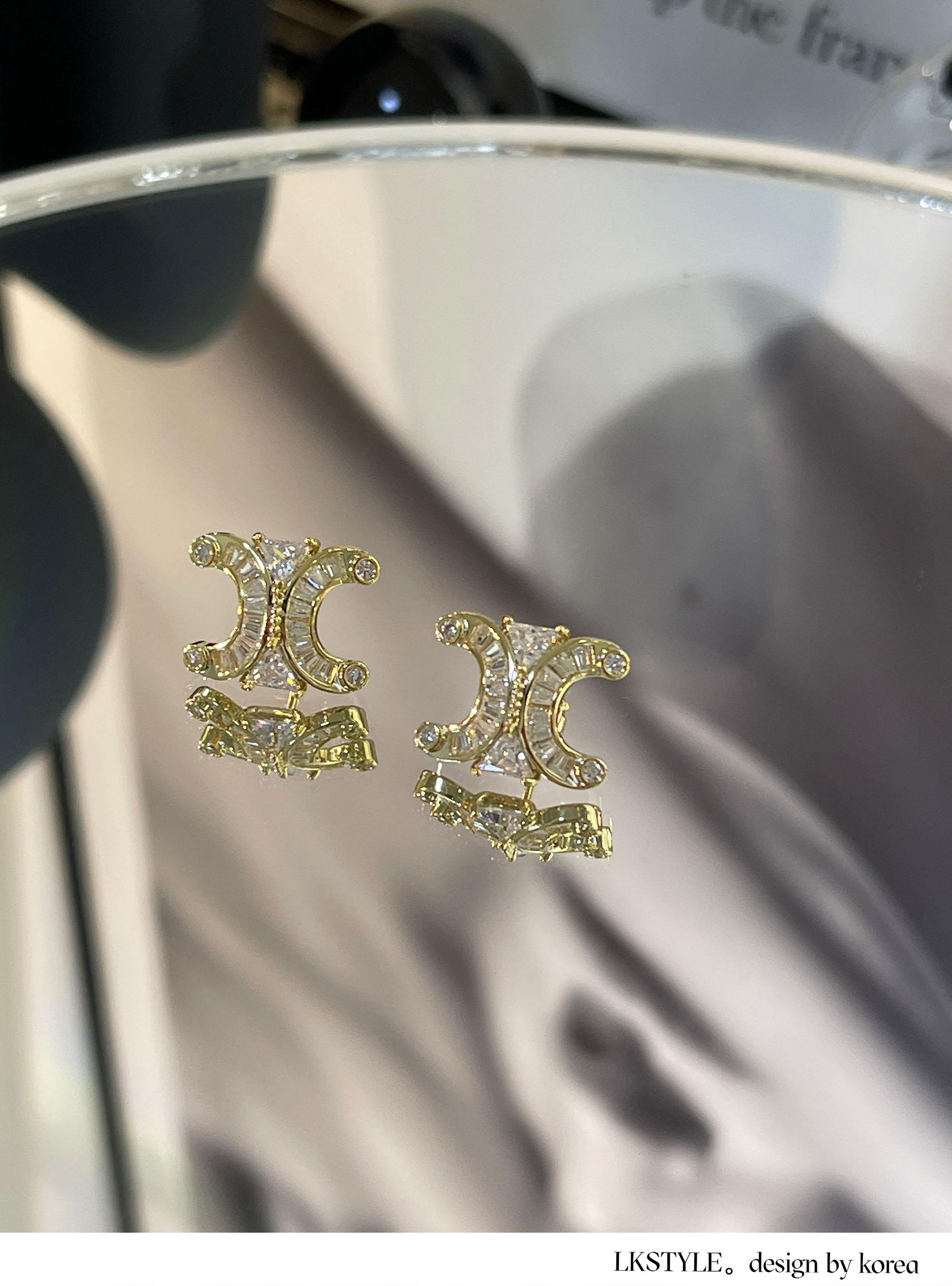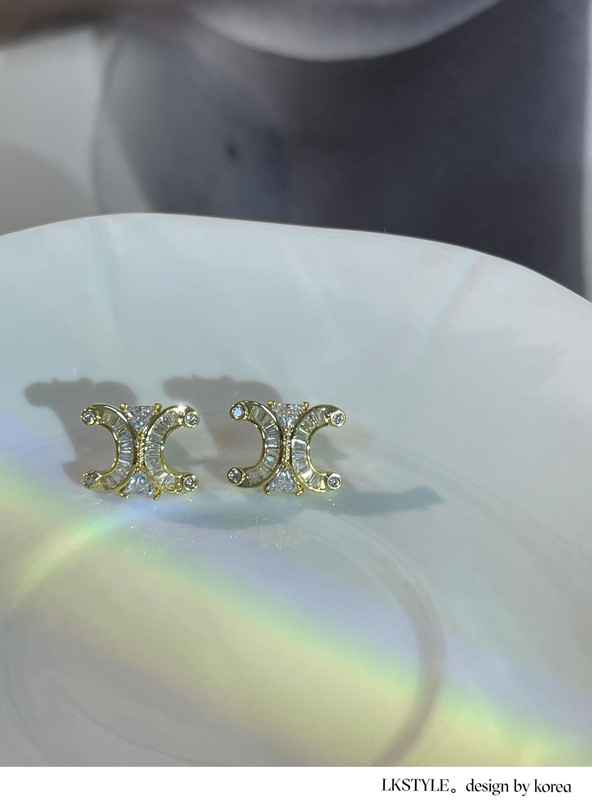 Gold Zircon stud earrings G11-43, Silver zircon ear studs G11-44