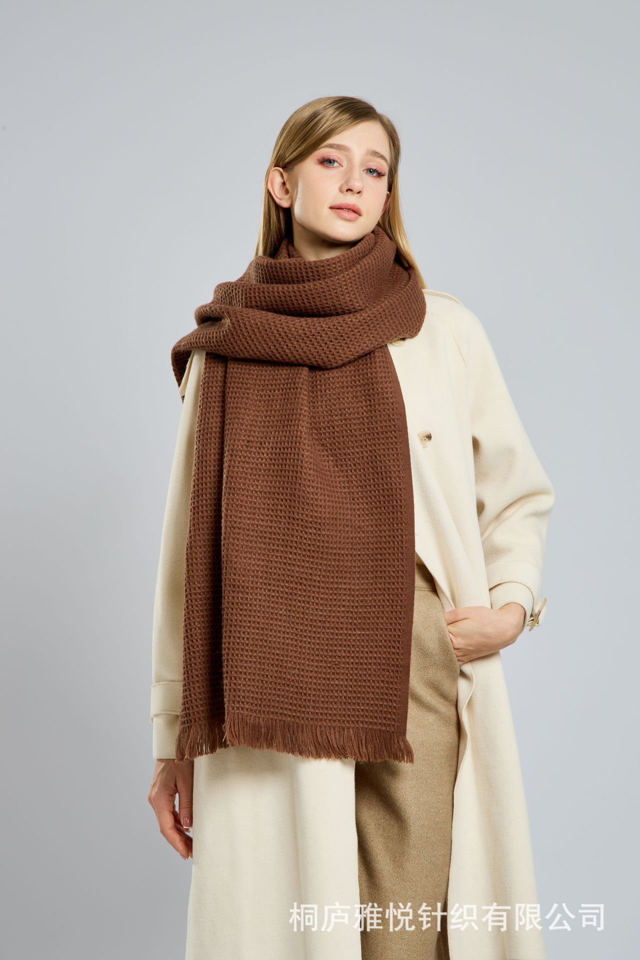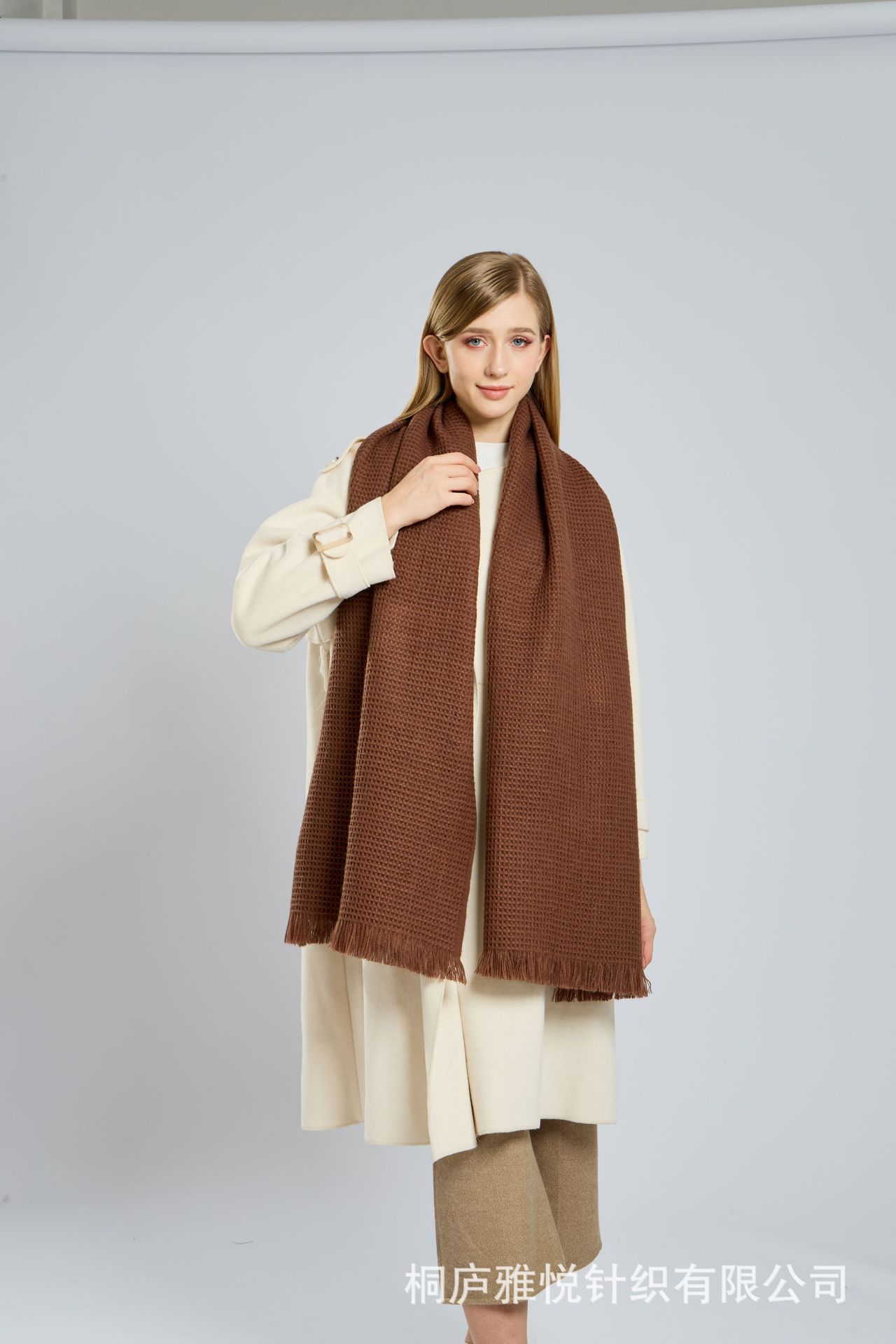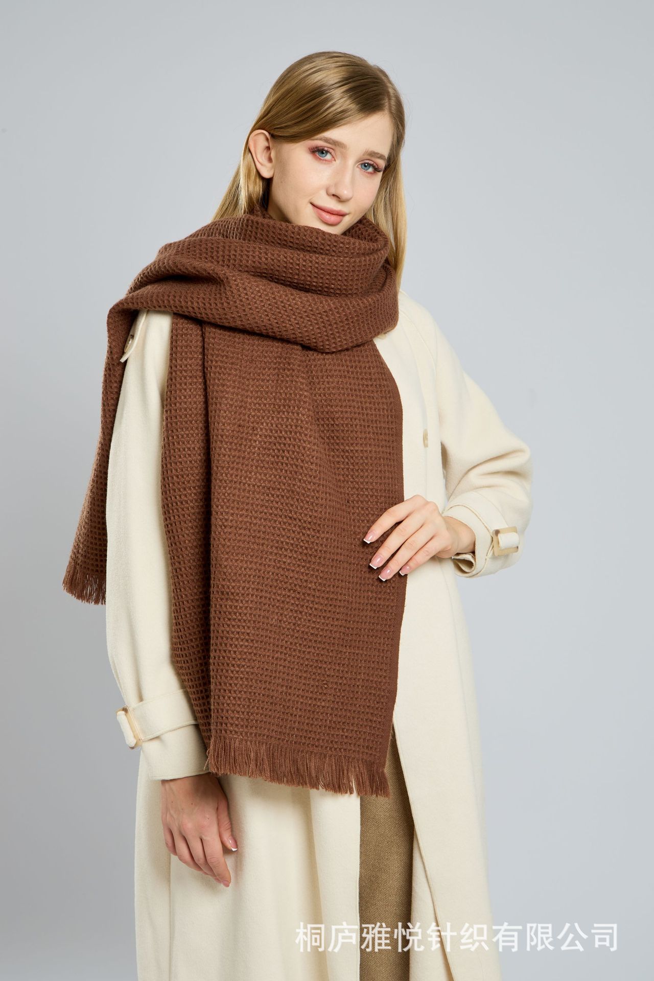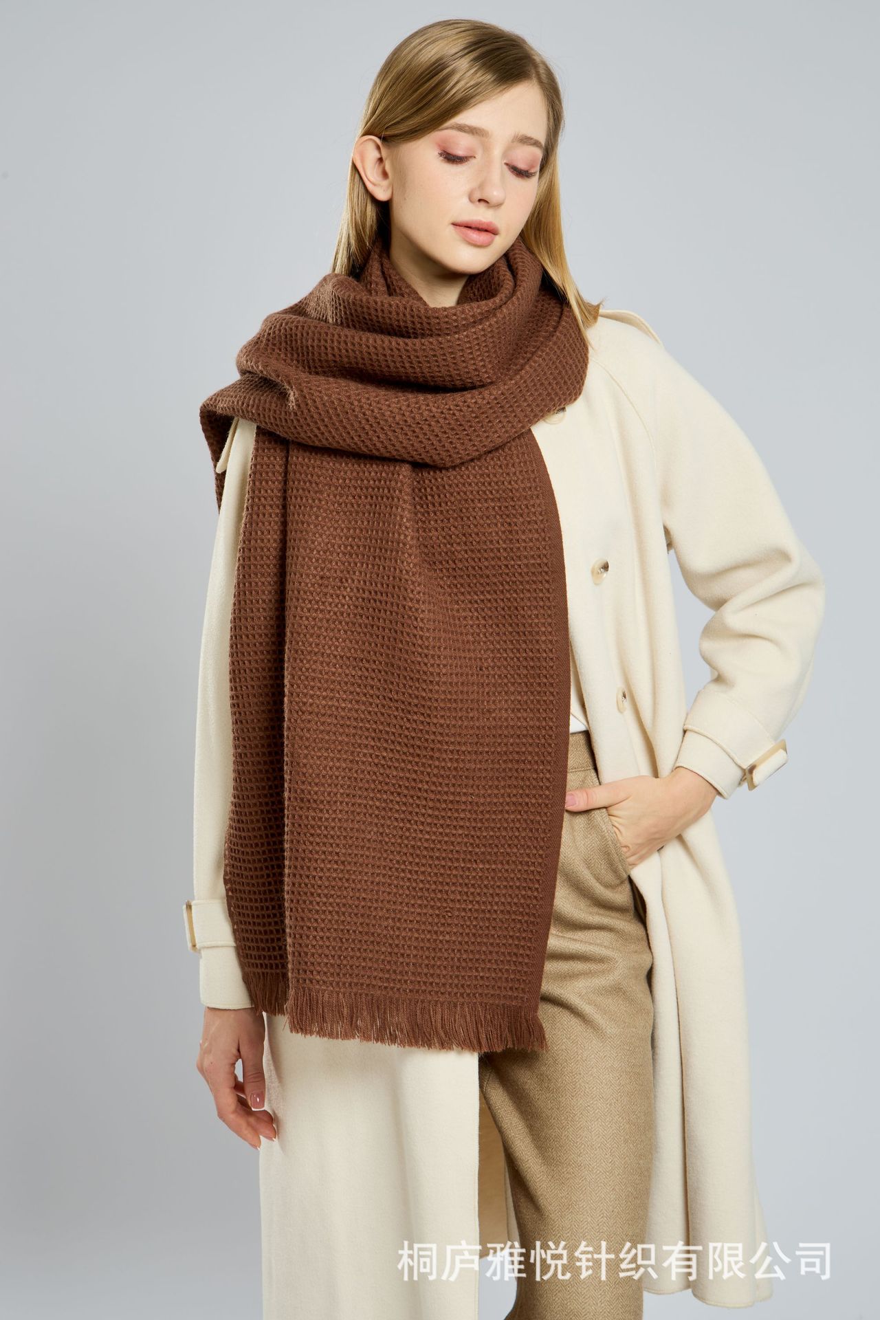 Bufanda de Color Sólido Waffle de Otoño e Invierno para Mujer, Simple, Combinable con Todo, Cómoda, Cálida, Chal, Temperamento de Alta Gama, Bufanda Exterior