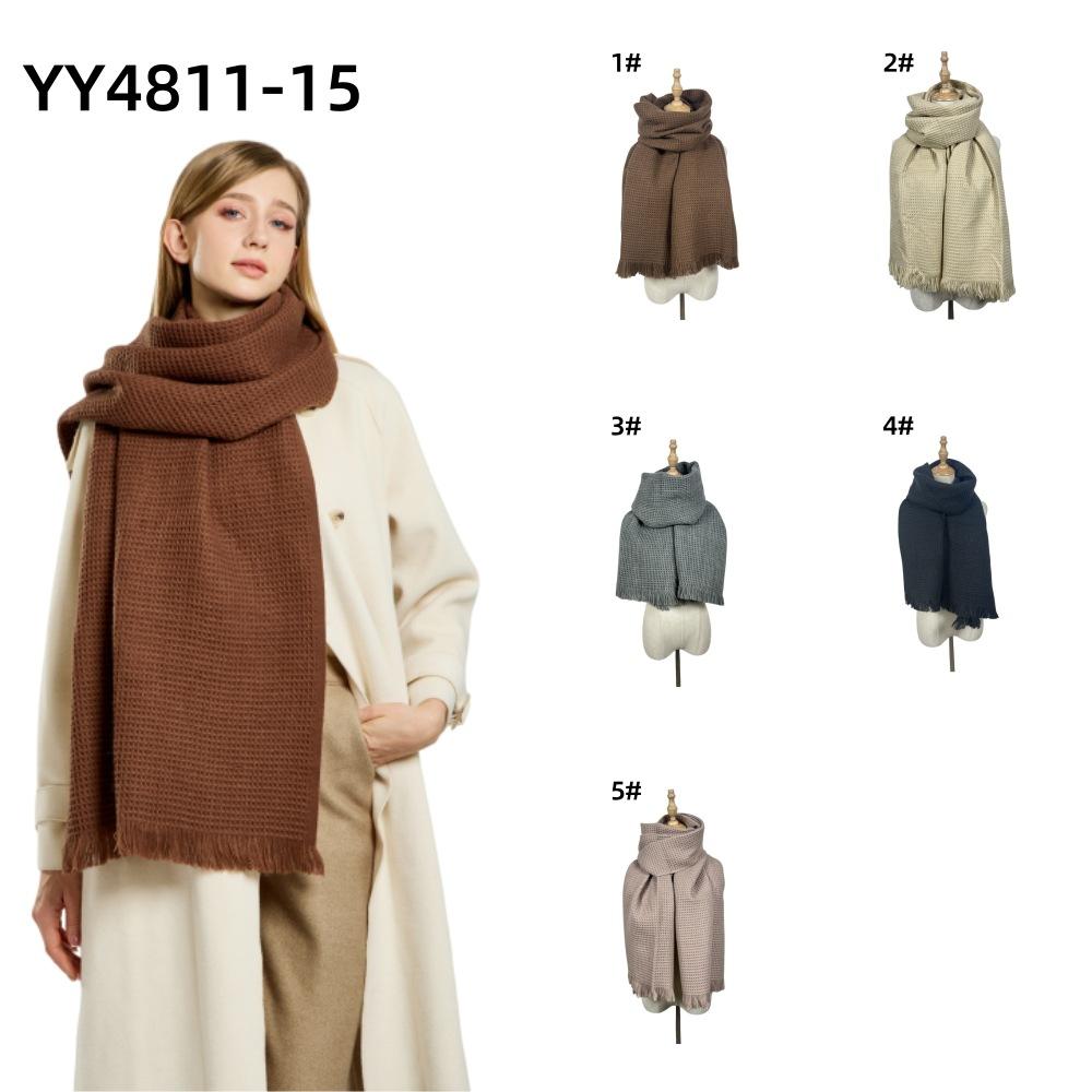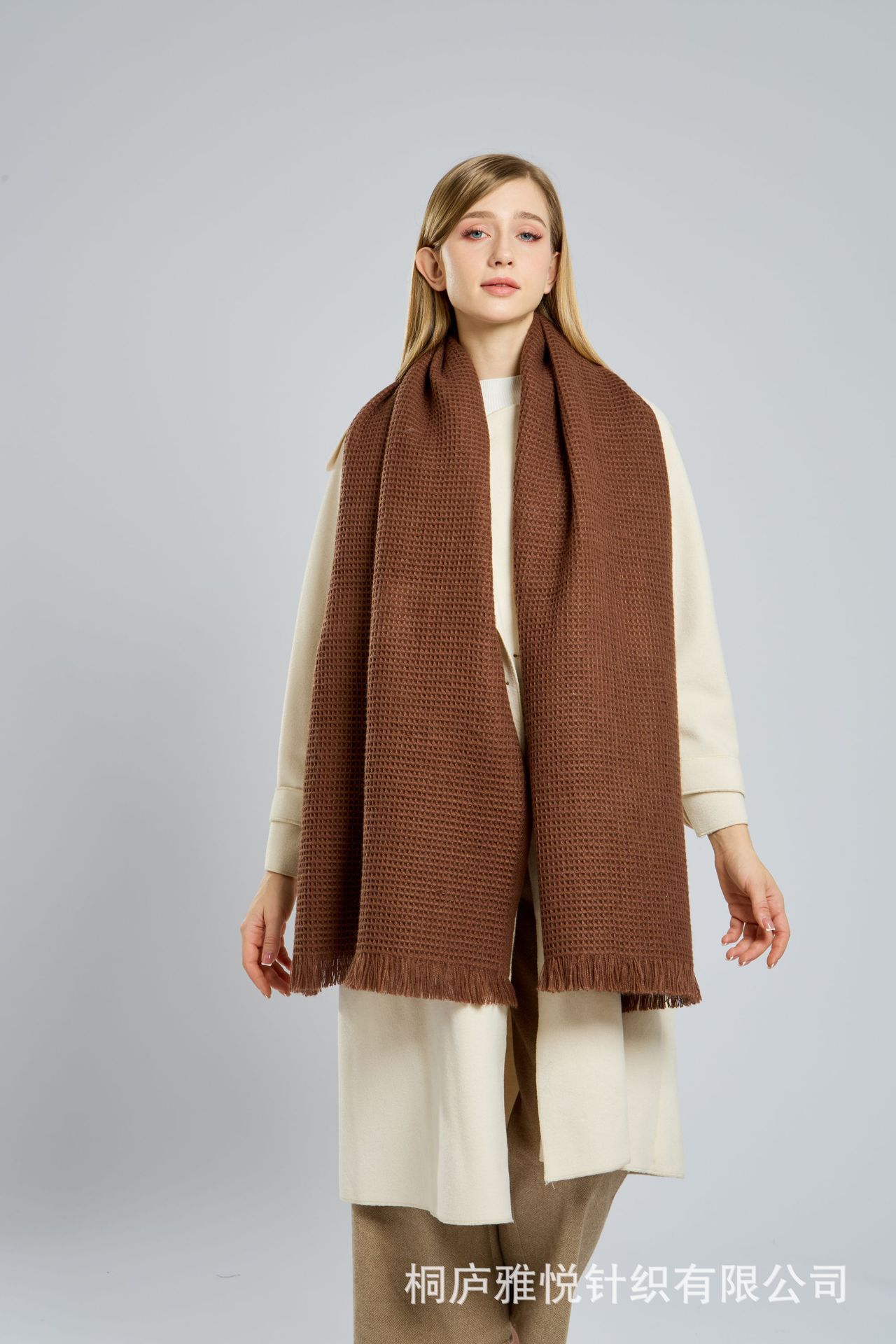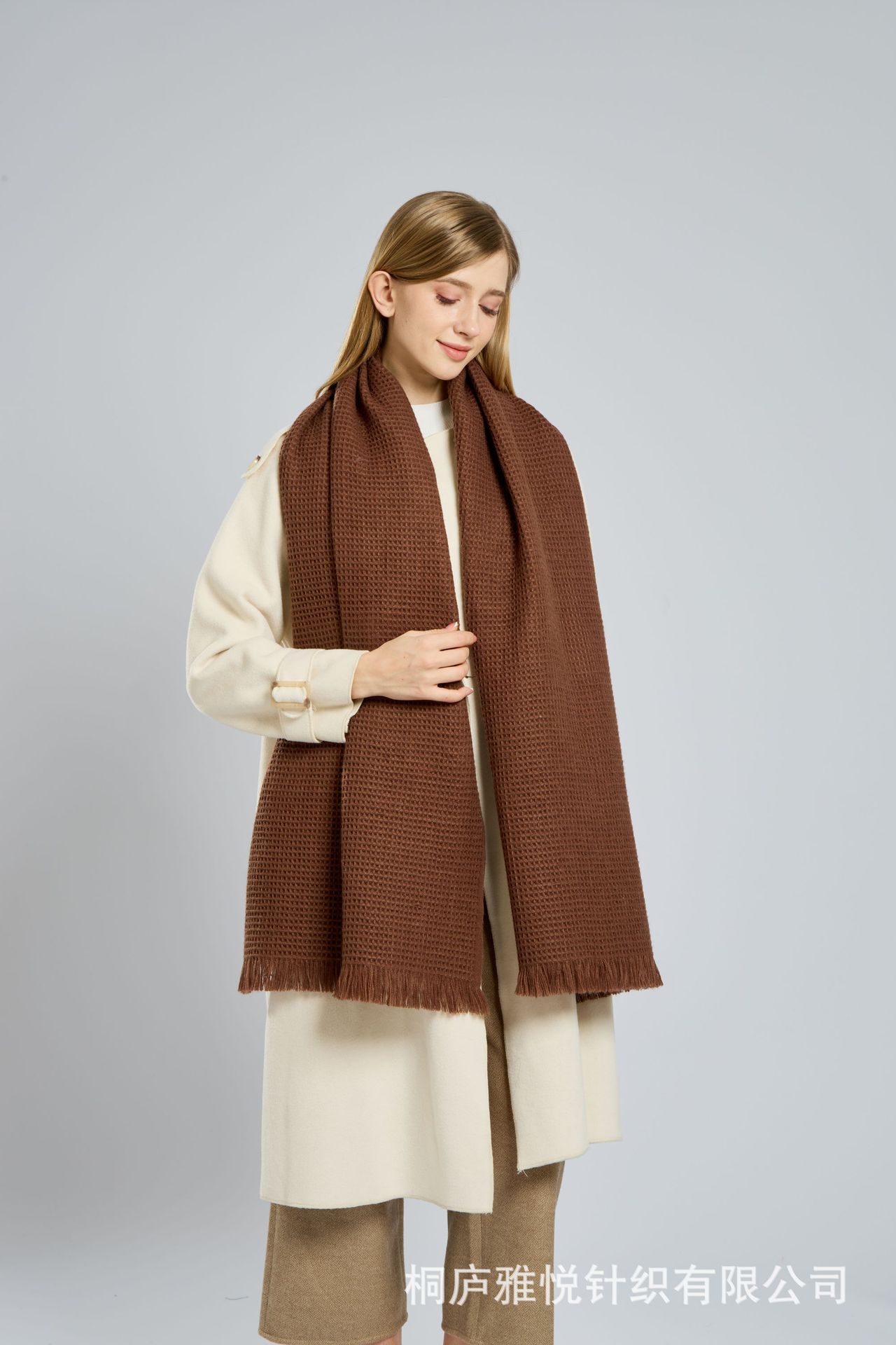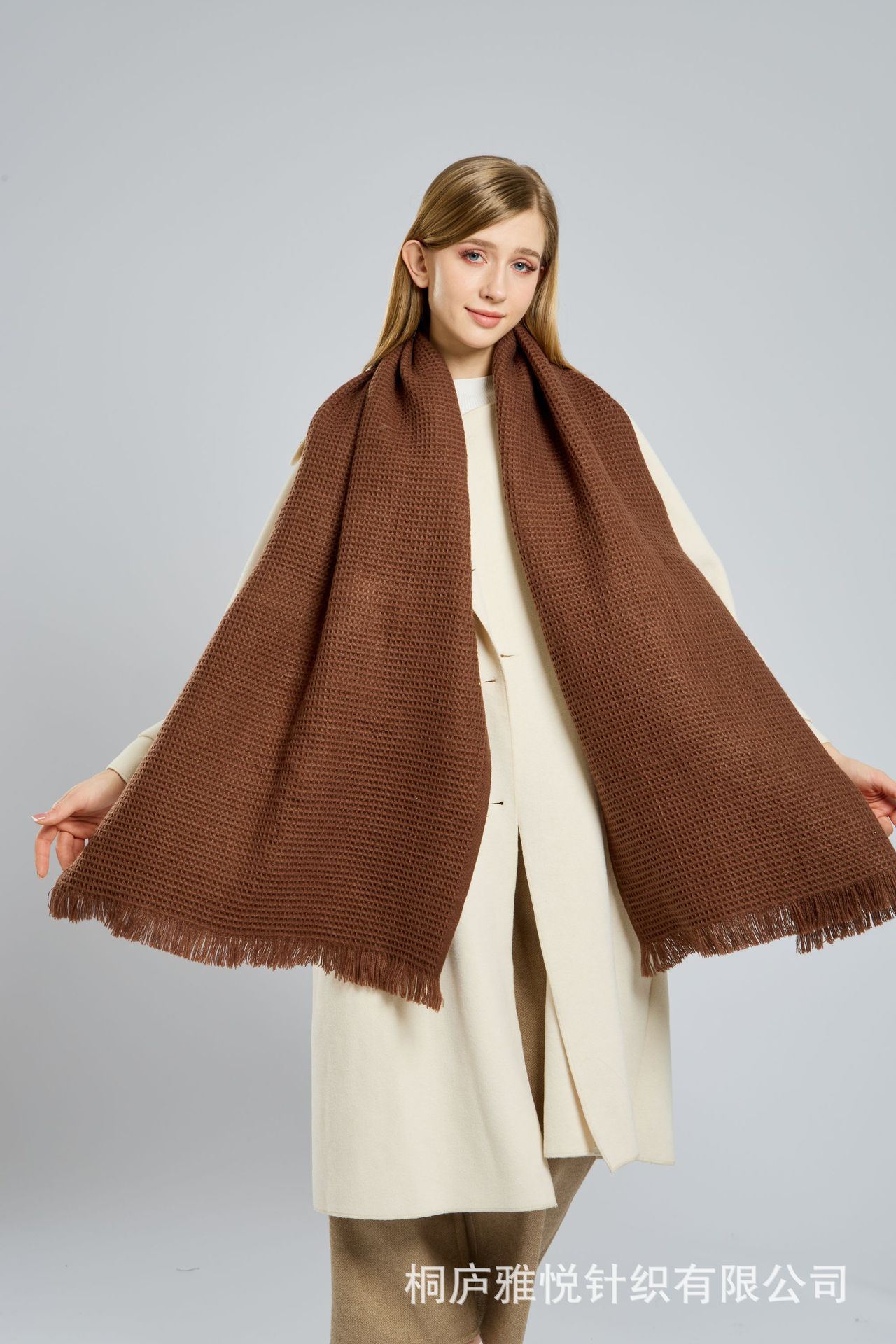 Bufanda de Color Sólido Waffle de Otoño e Invierno para Mujer, Simple, Combinable con Todo, Cómoda, Cálida, Chal, Temperamento de Alta Gama, Bufanda Exterior