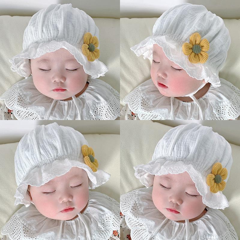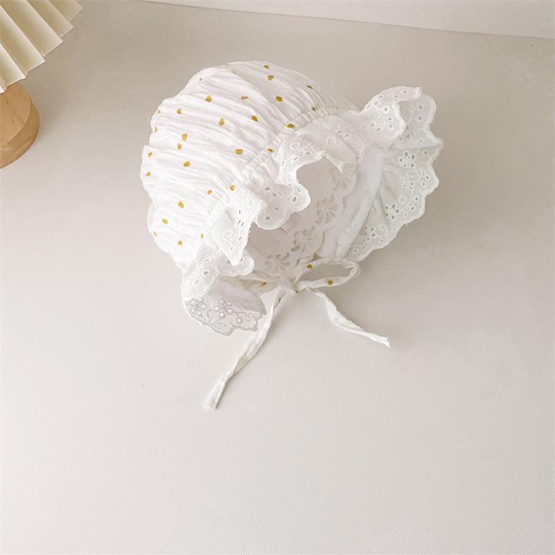 Small Flower Palace wind White -1-7 months 38-44cm head circumference double Cotton