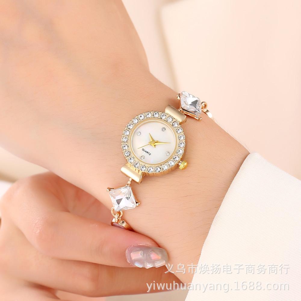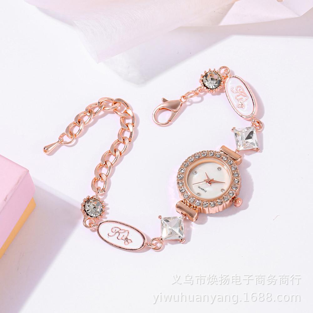 Reloj de pulsera con letras de diamantes transfronterizos, hebilla de langosta, ajuste libre, reloj de cuarzo para mujer, reloj de moda para mujer, alto valor de color