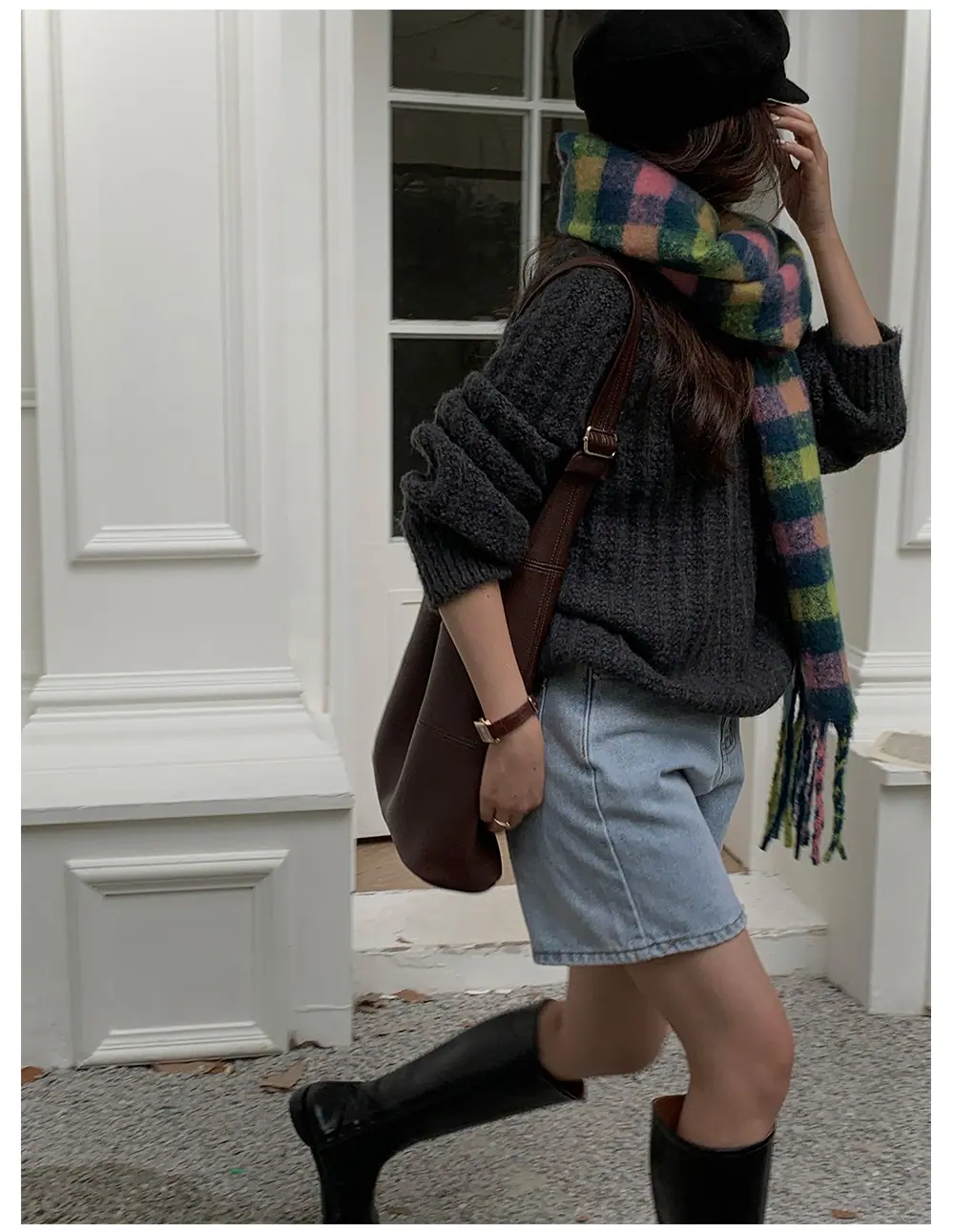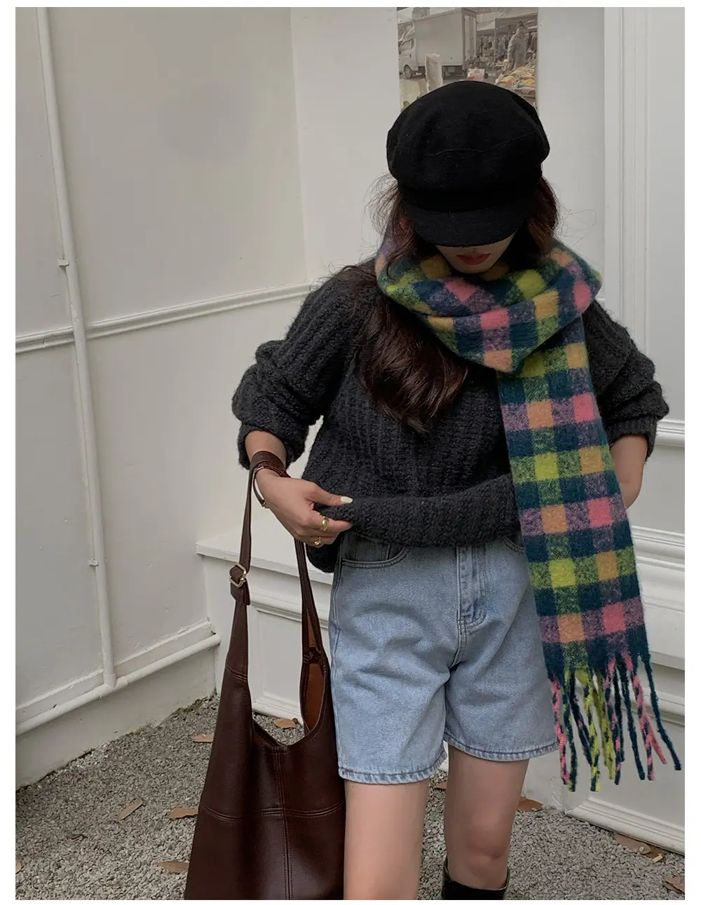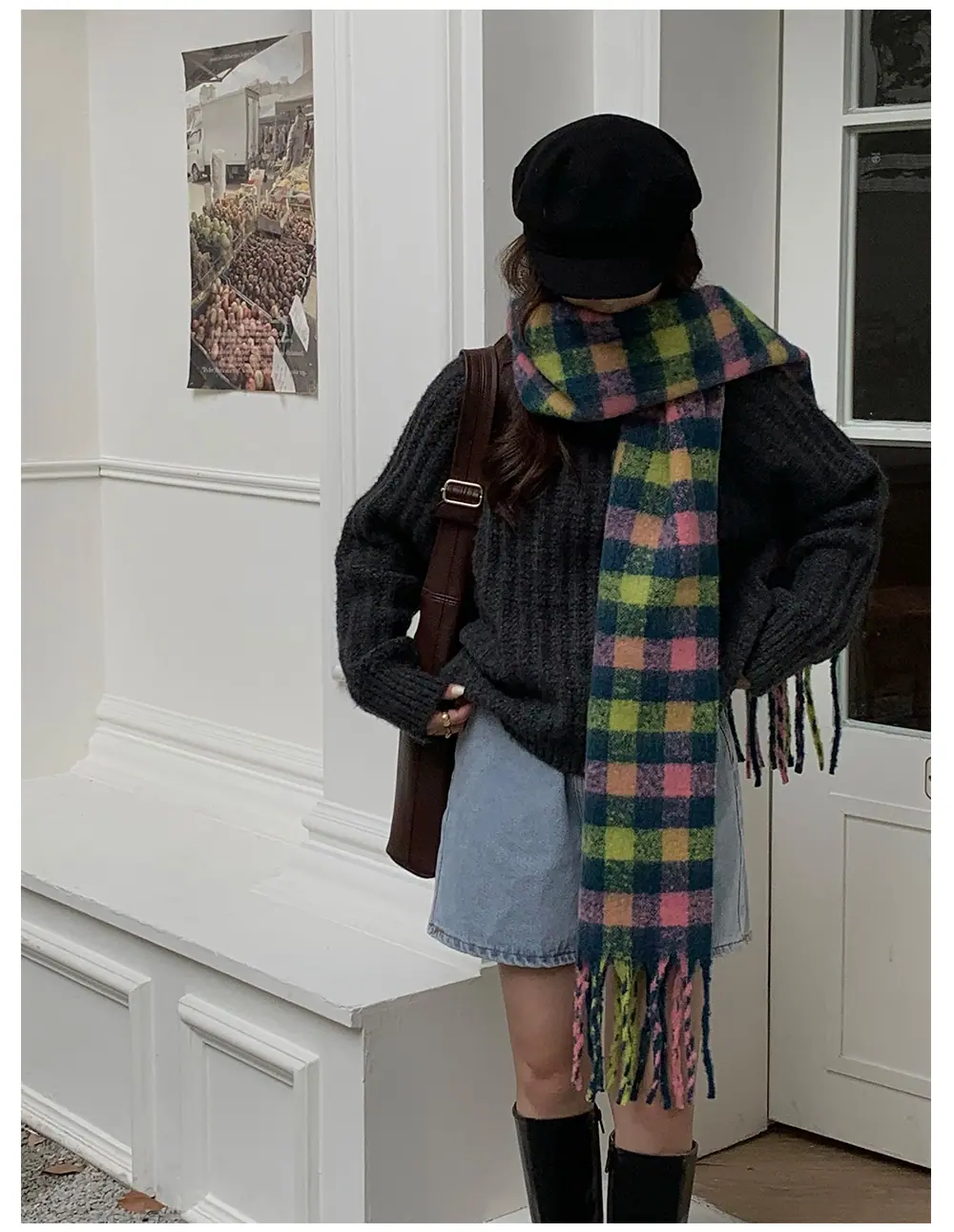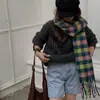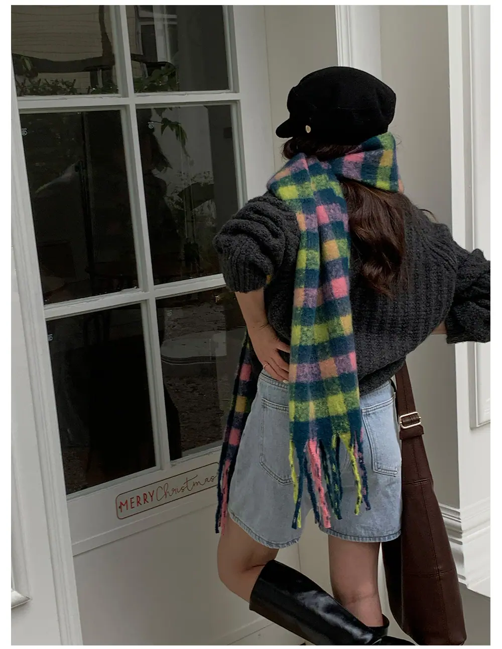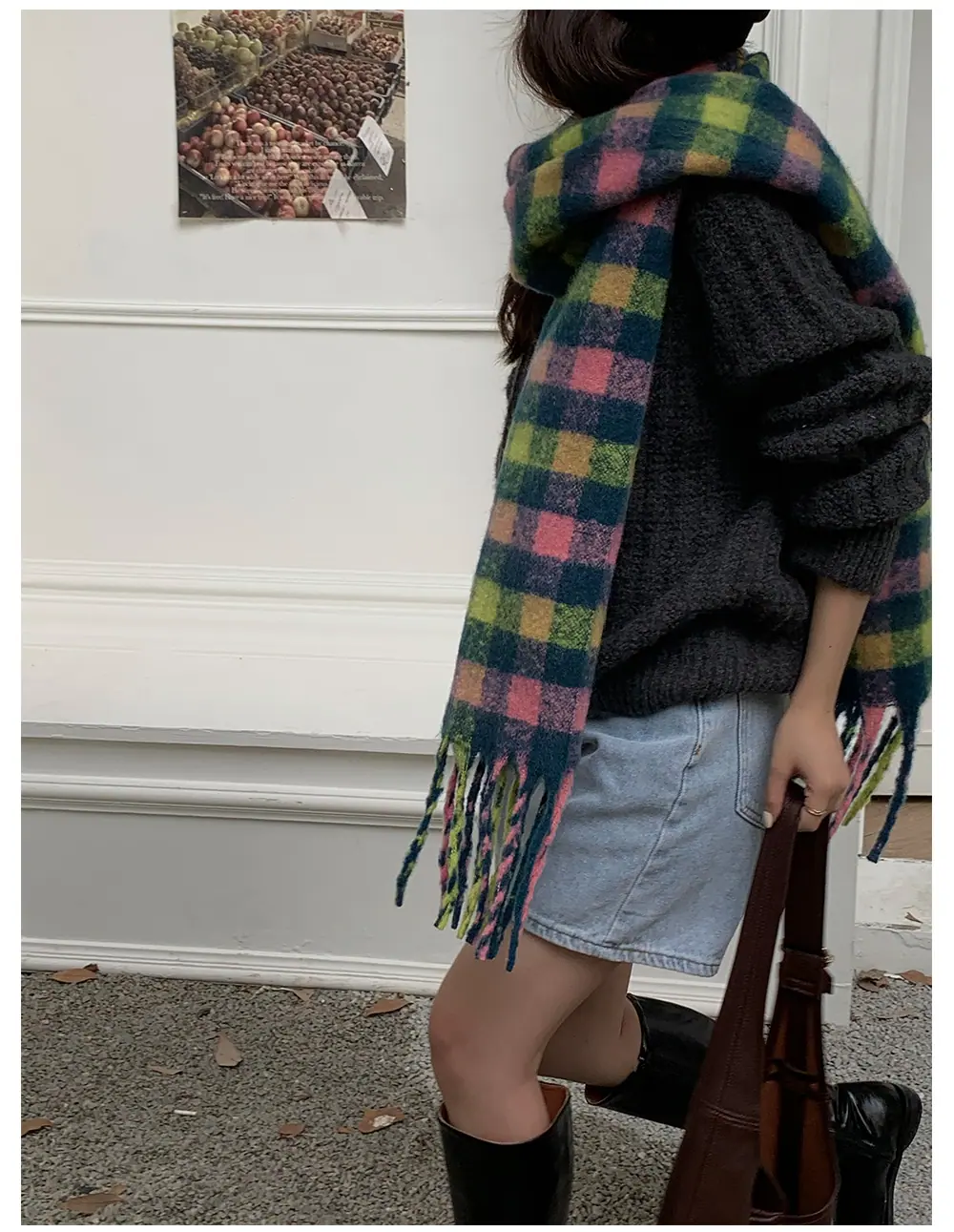 Bufanda Cuadros Pequeños Coloridos Estilo Coreano Otoño e Invierno Gruesa Cálida Chal con Flecos