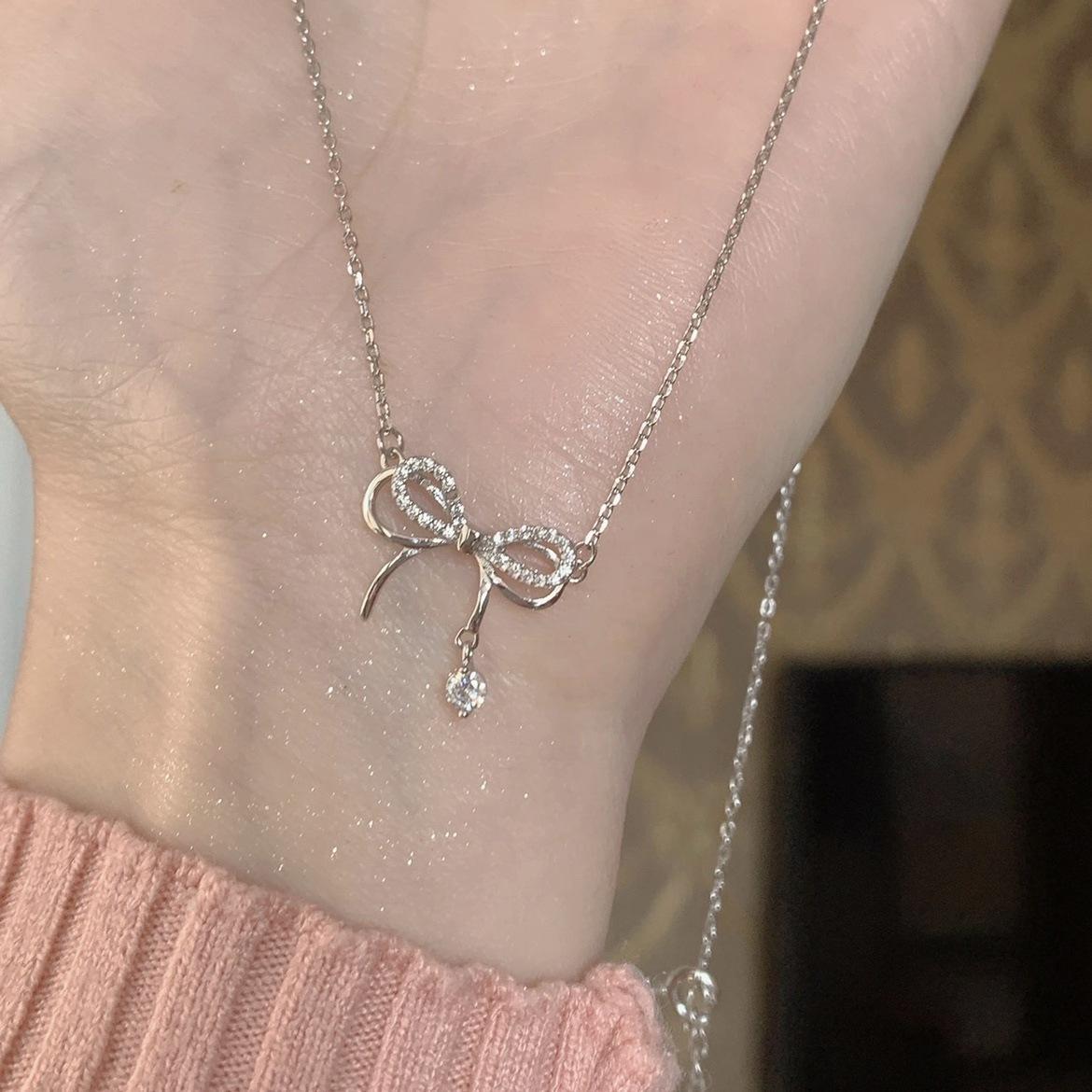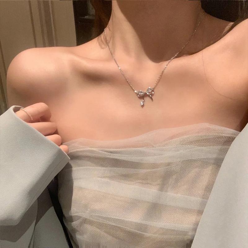 Exquisito collar de circonita con lazo para mujer, de verano, ligero, de lujo, de nicho, de alta calidad, en línea, elegante, con cadena de clavícula, collar sencillo.