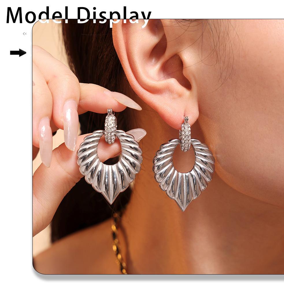 Joyería misteriosa patrón romano gran amor collar de pedrería adhesiva aretes traje acero titanio chapado oro 18k en stock